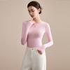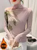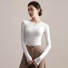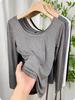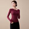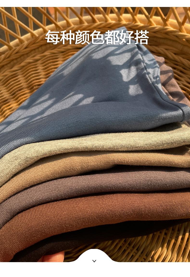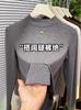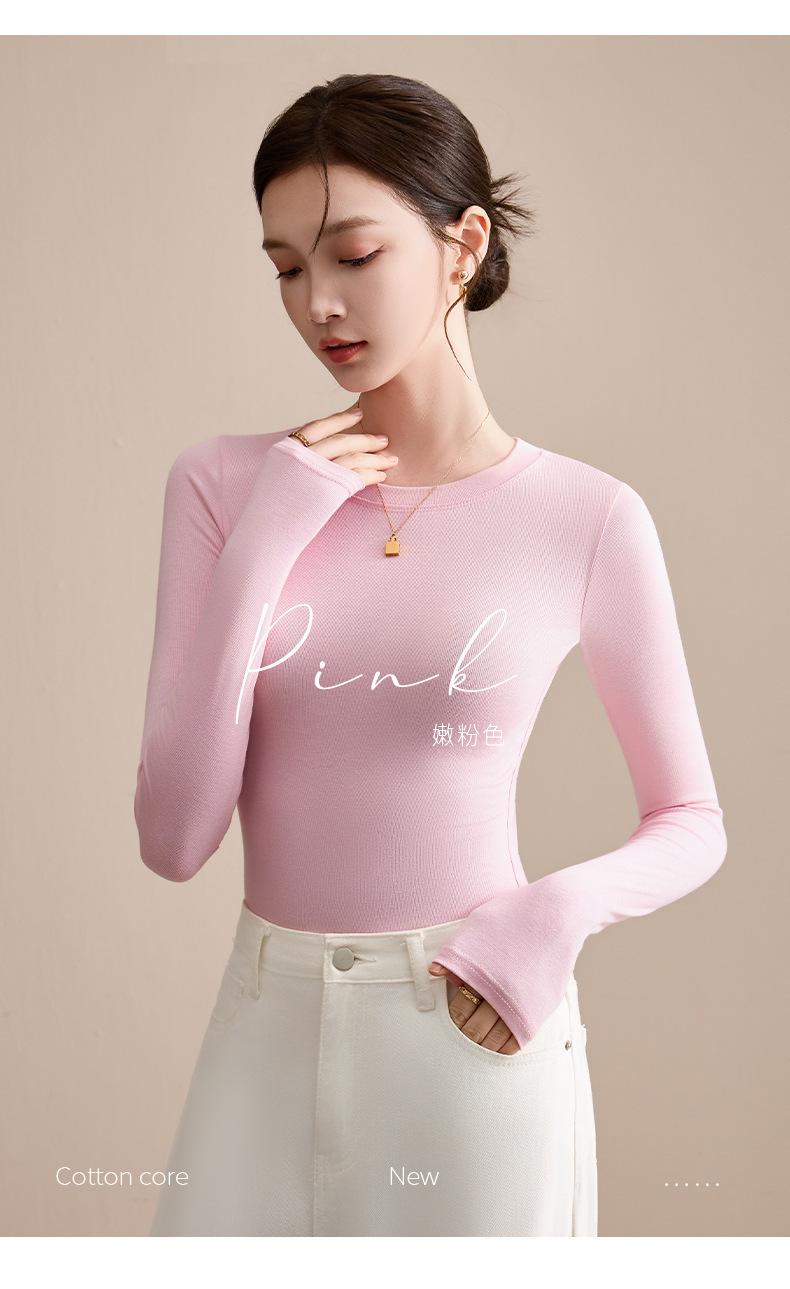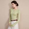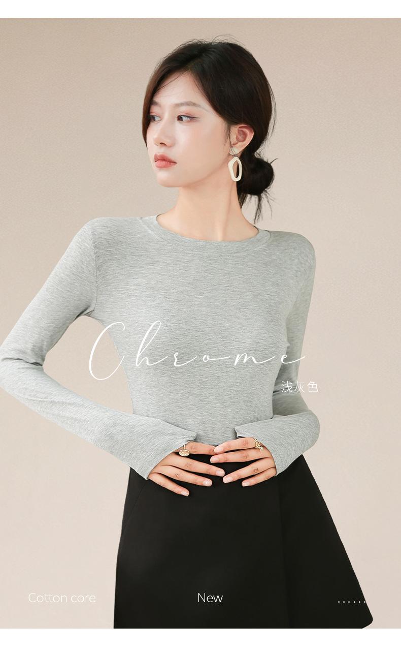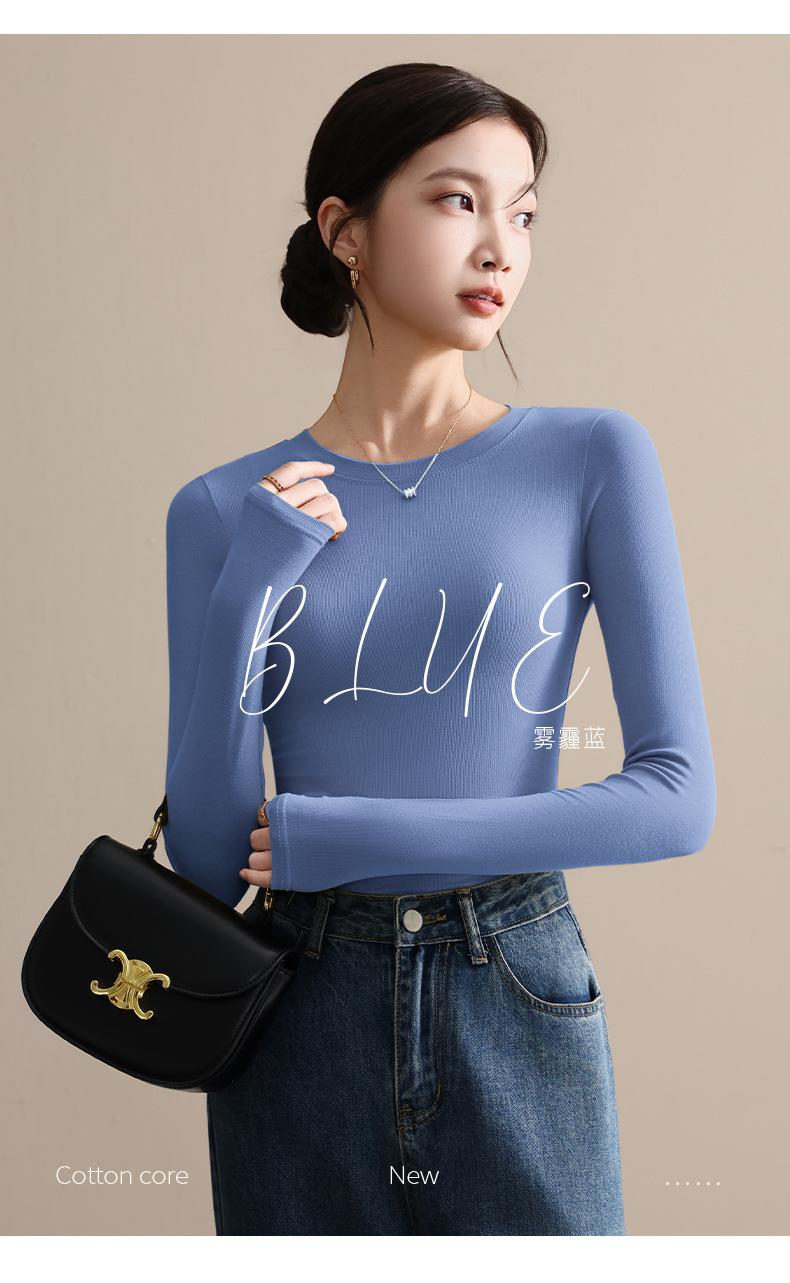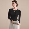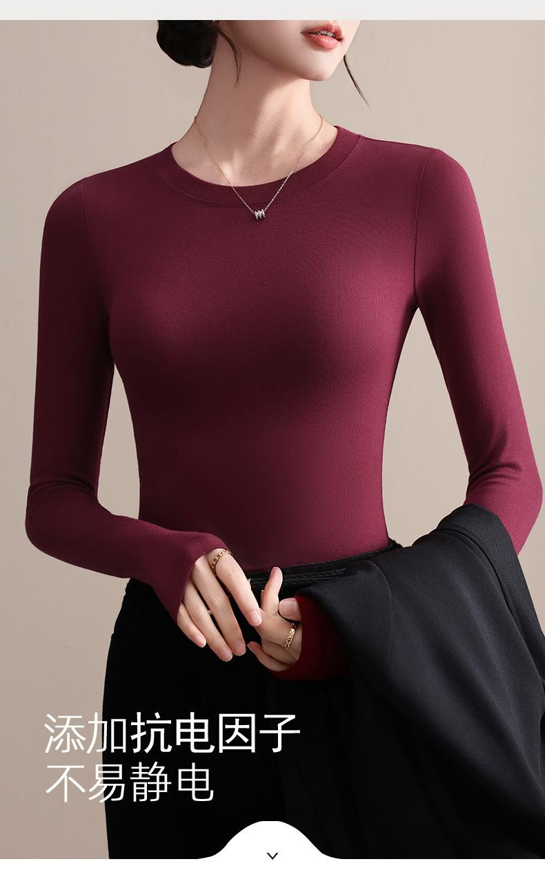 Playera de Cuello Redondo Hombro Recto Manga Larga Mujer Otoño 2025 Nueva Adelgazante Cuello Medio Alto Capa Base Ropa Interior Top Color Café