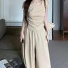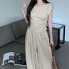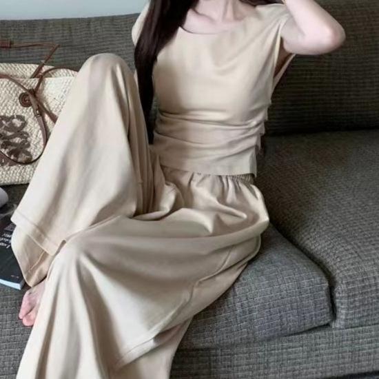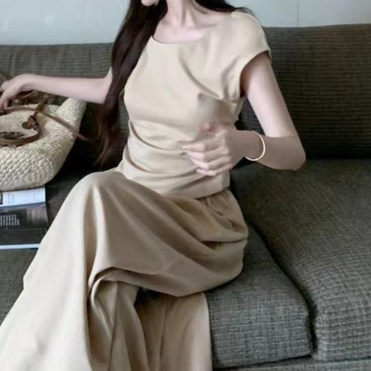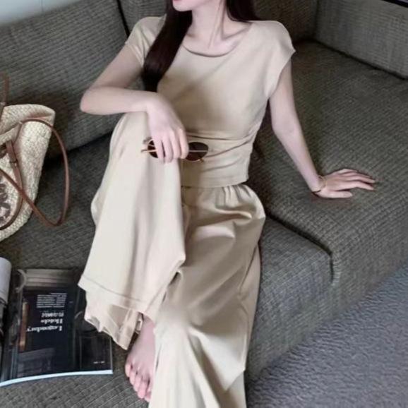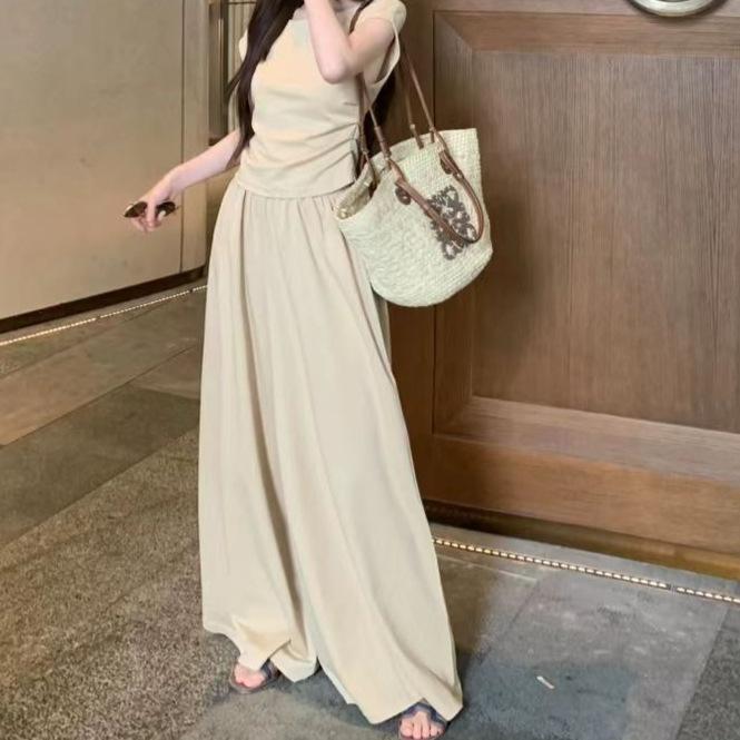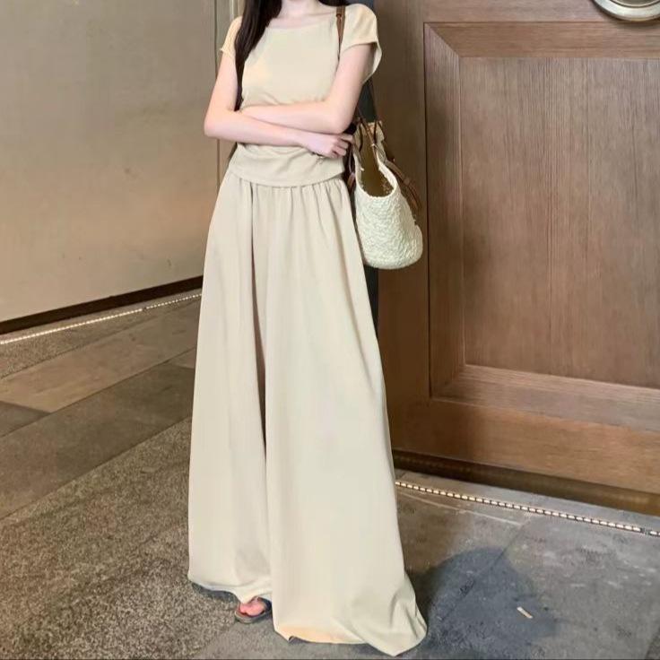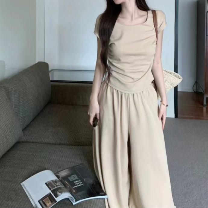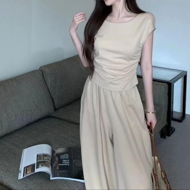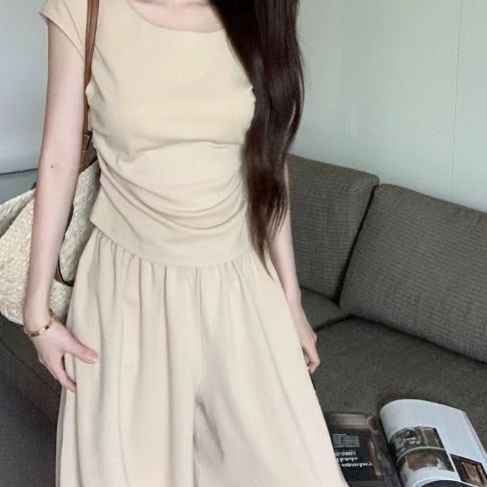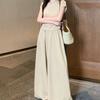 Top de verano estilo coreano falda pantalón color sólido plisado moderno que reduce la edad conjunto para ir al trabajo mujeres 2025 corte ajustado y adelgazante estilo dulce