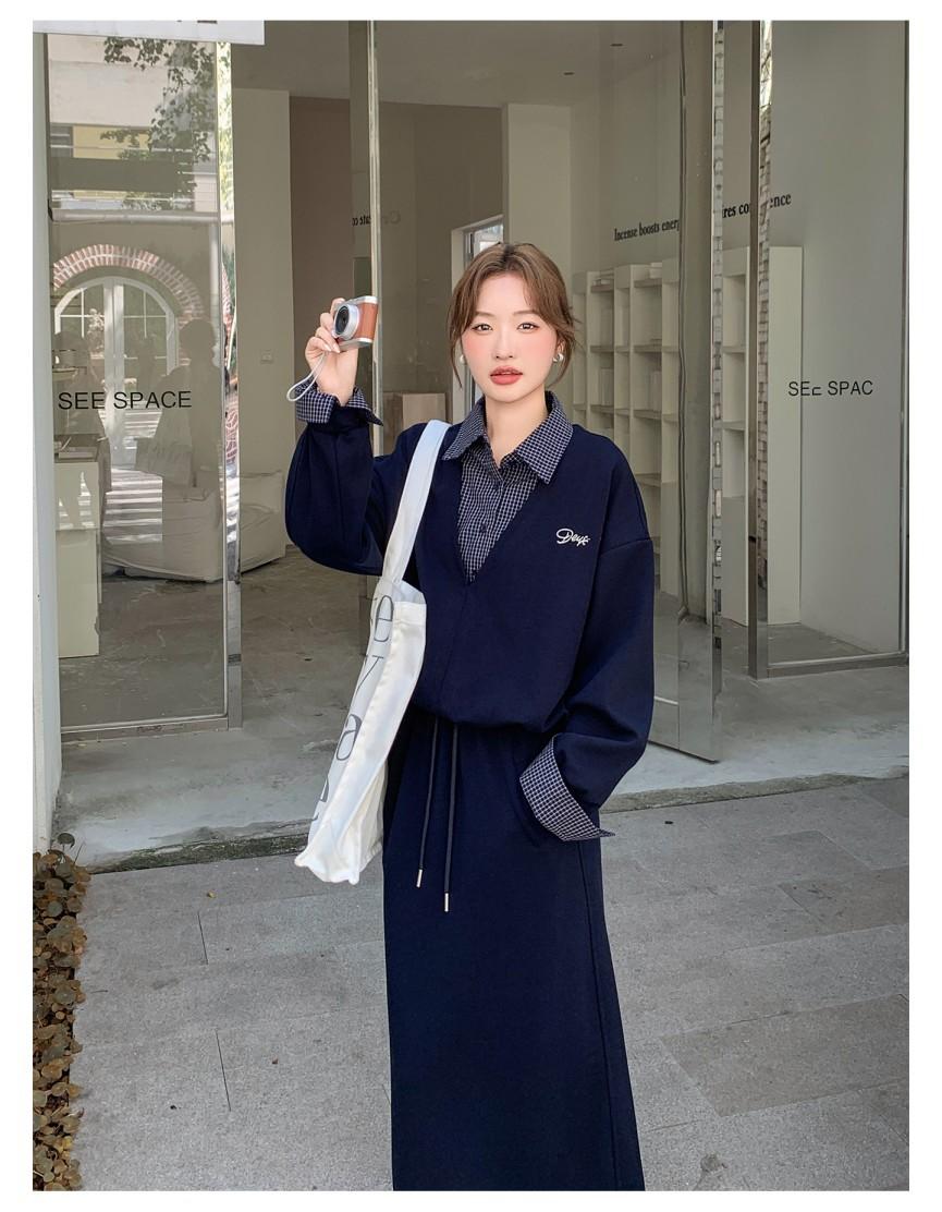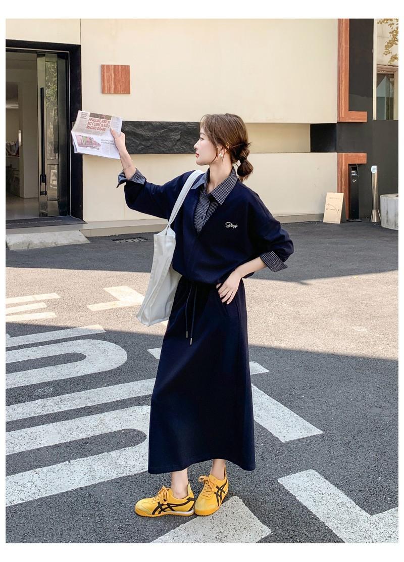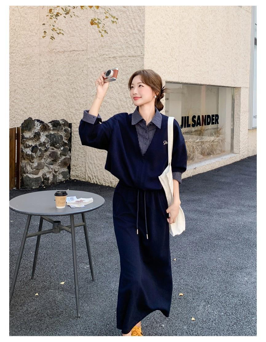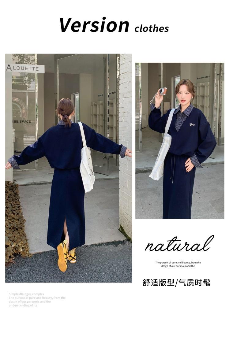 Traje de Primavera y Otoño para Mujer 2025 Nuevo Reductor de Edad Versátil Cómodo Moda Falso Top de Dos Piezas + Conjunto de Falda Midi