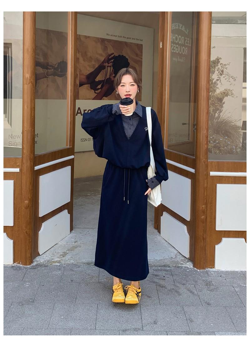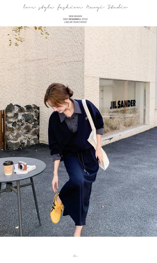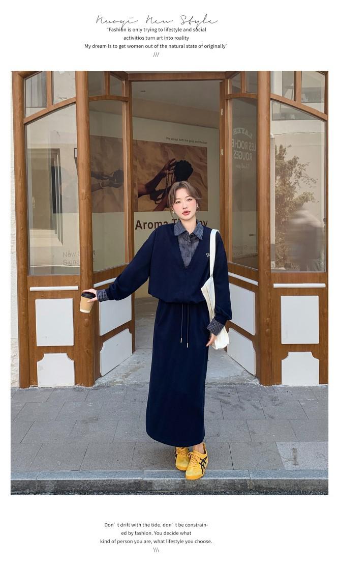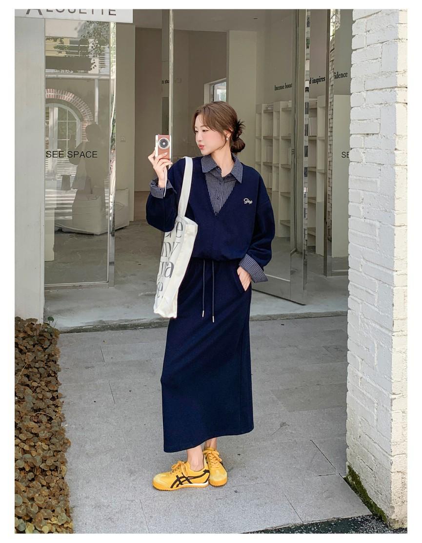 Traje de Primavera y Otoño para Mujer 2025 Nuevo Reductor de Edad Versátil Cómodo Moda Falso Top de Dos Piezas + Conjunto de Falda Midi