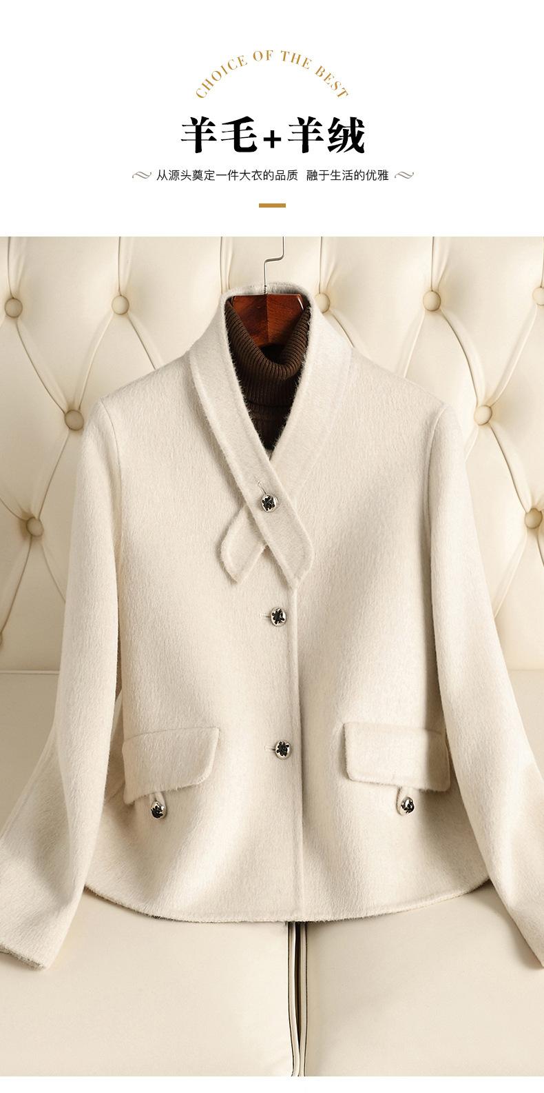 2025 Otoño/Invierno Nuevo Abrigo de Cachemira Doble Faz Abrigo de Lana Abrigo de Lana para Mujer Traje Corto Petite Casual