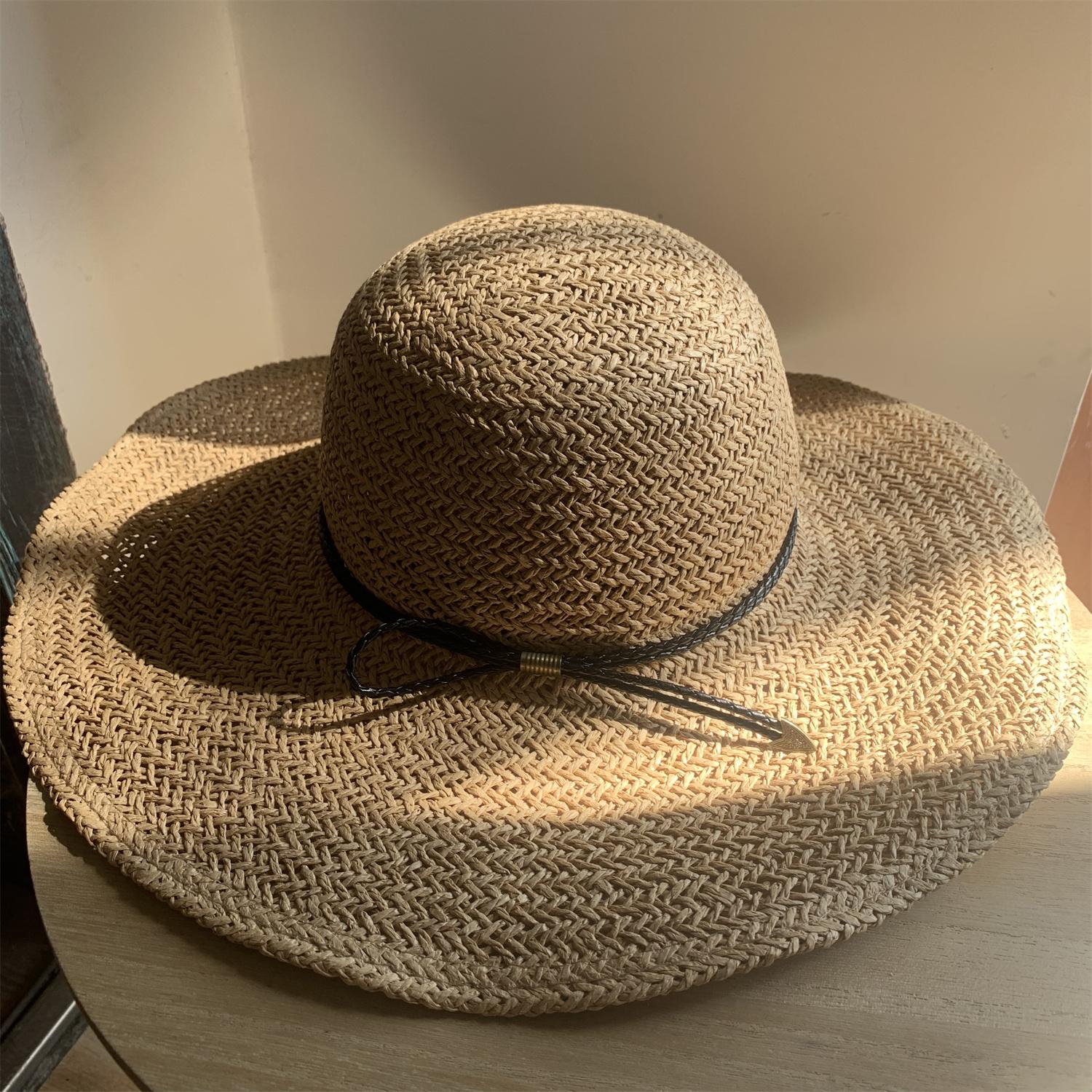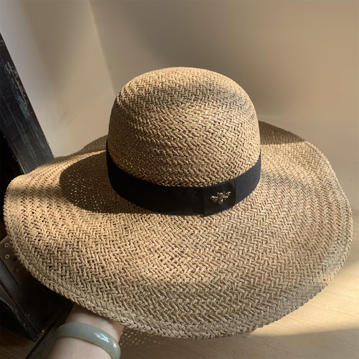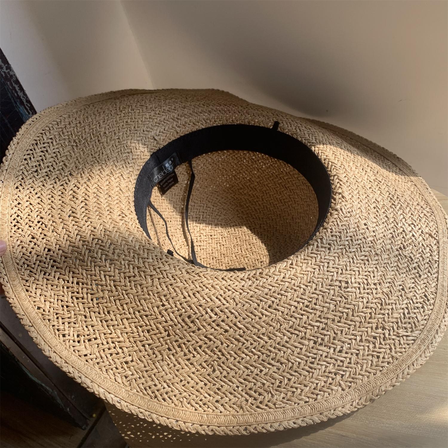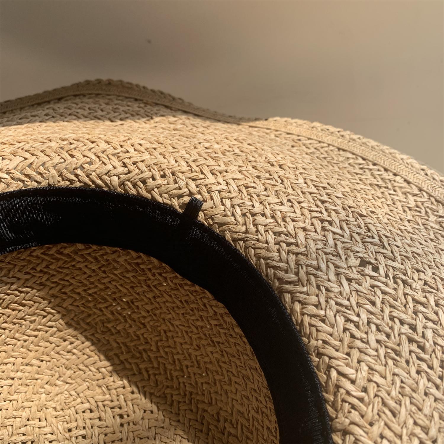 Sombrero de Paja de Ala Ancha Tejido a Mano para Protección Solar Sombrero de Paja Sombrero de Sol de Verano para Vacaciones en la Playa para Mujer Sombrero de Copa Sombrero de Sol para la Playa