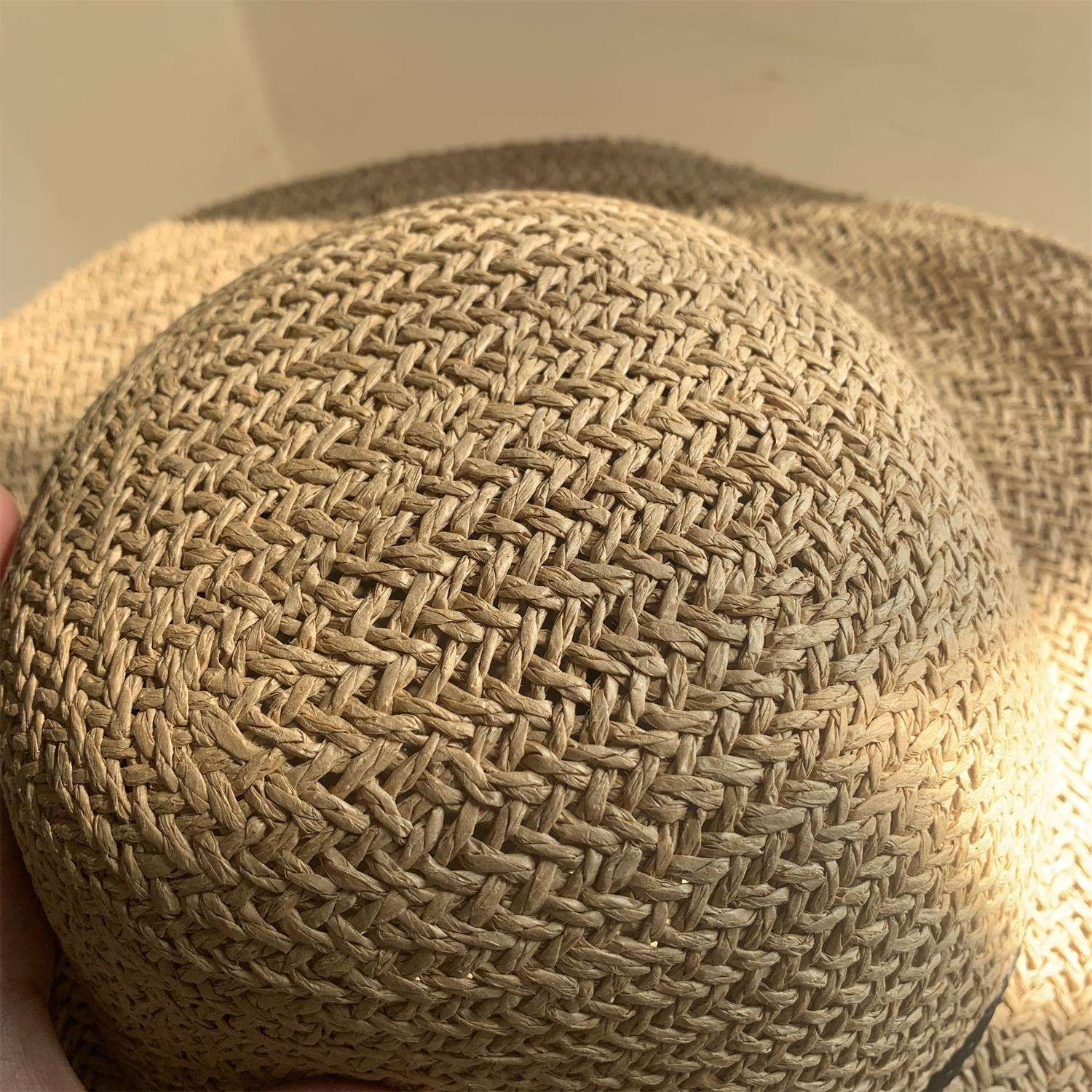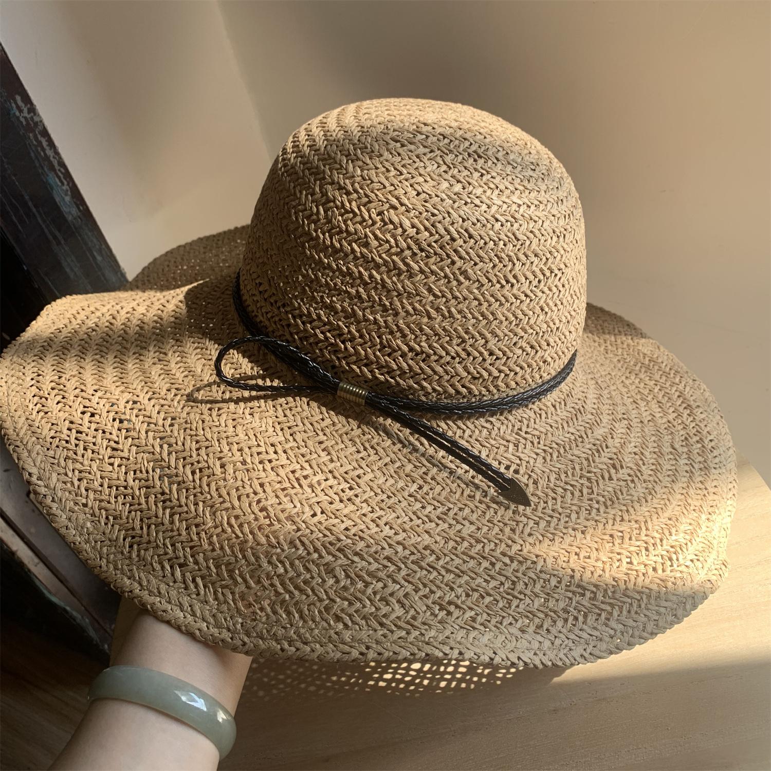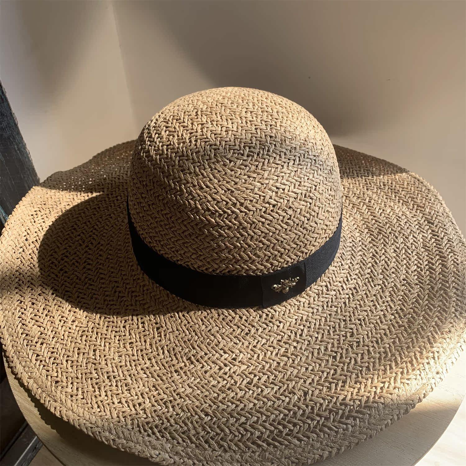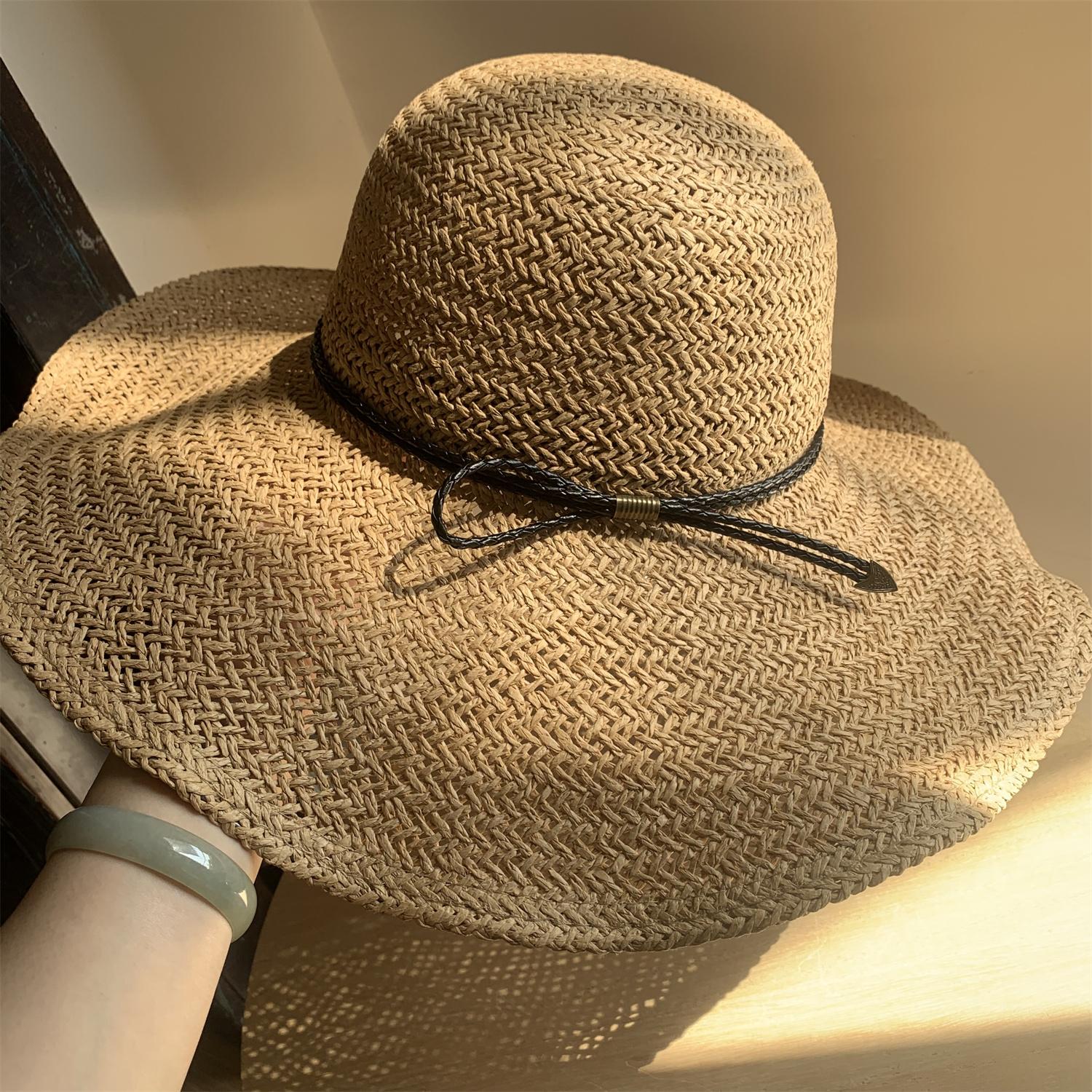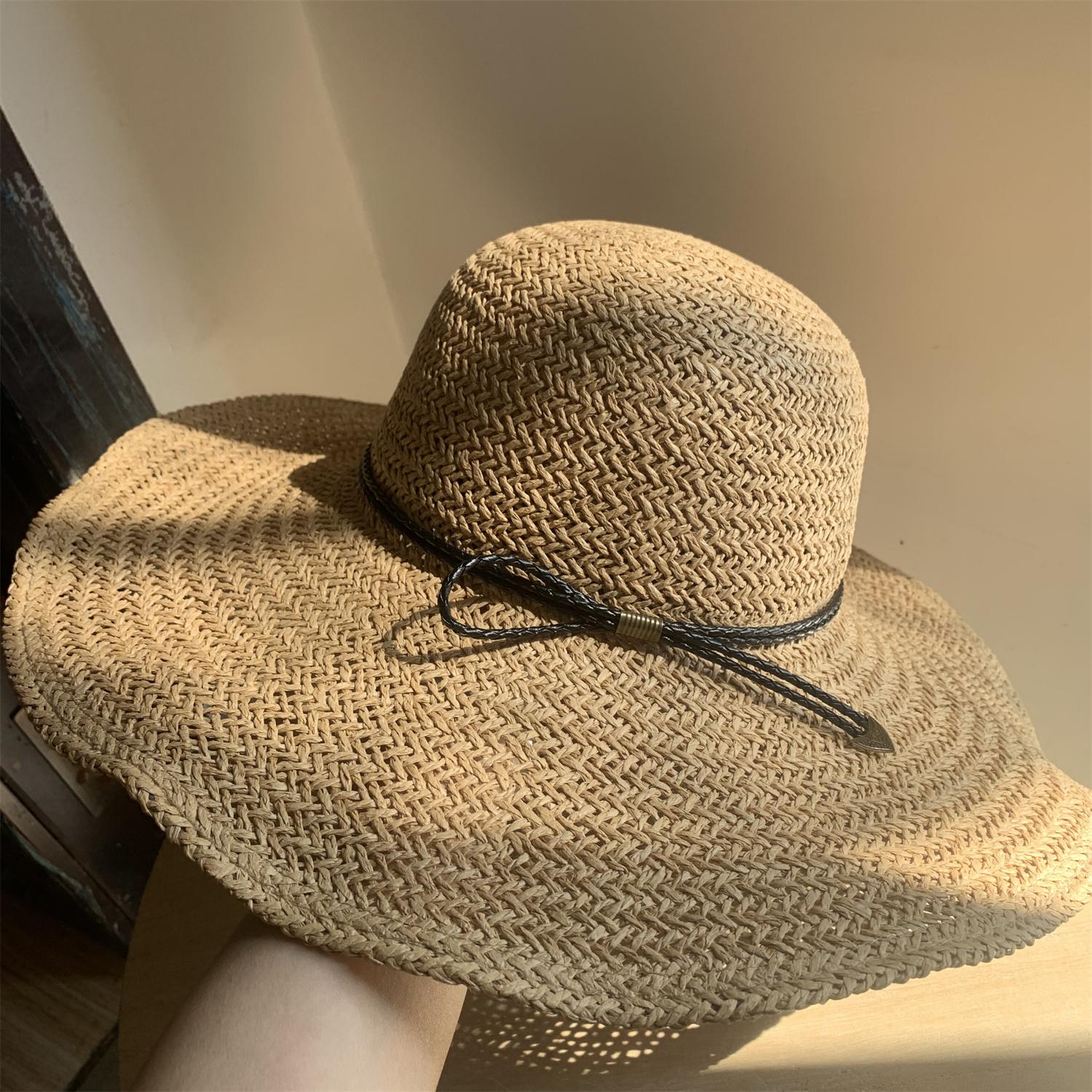 Sombrero de Paja de Ala Ancha Tejido a Mano para Protección Solar Sombrero de Paja Sombrero de Sol de Verano para Vacaciones en la Playa para Mujer Sombrero de Copa Sombrero de Sol para la Playa