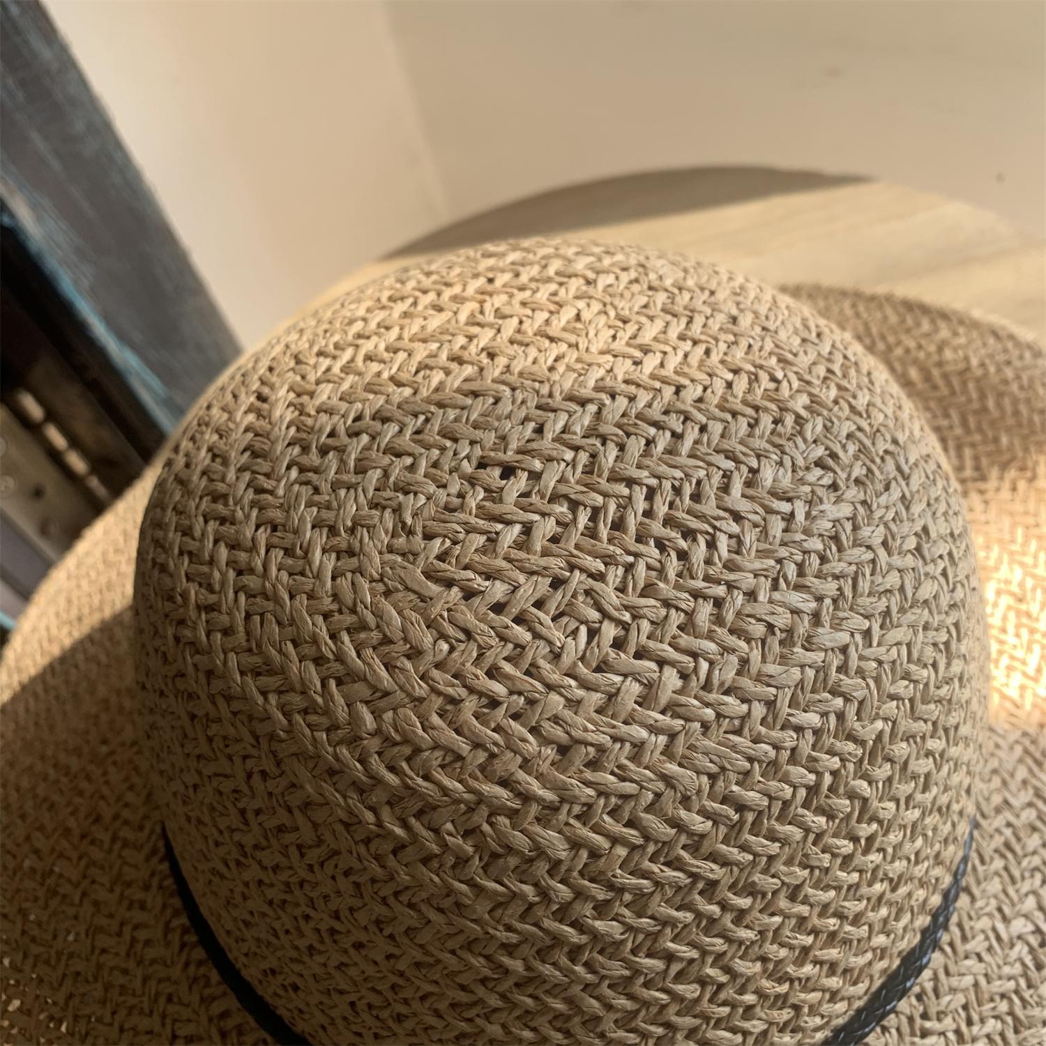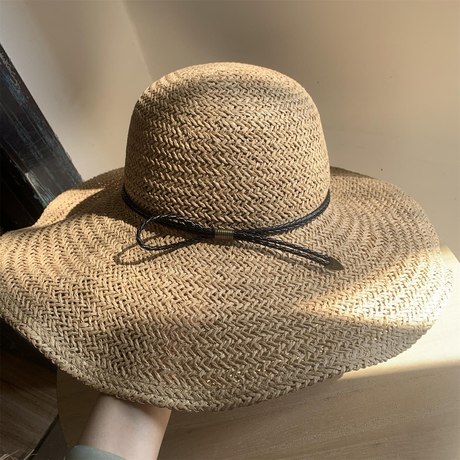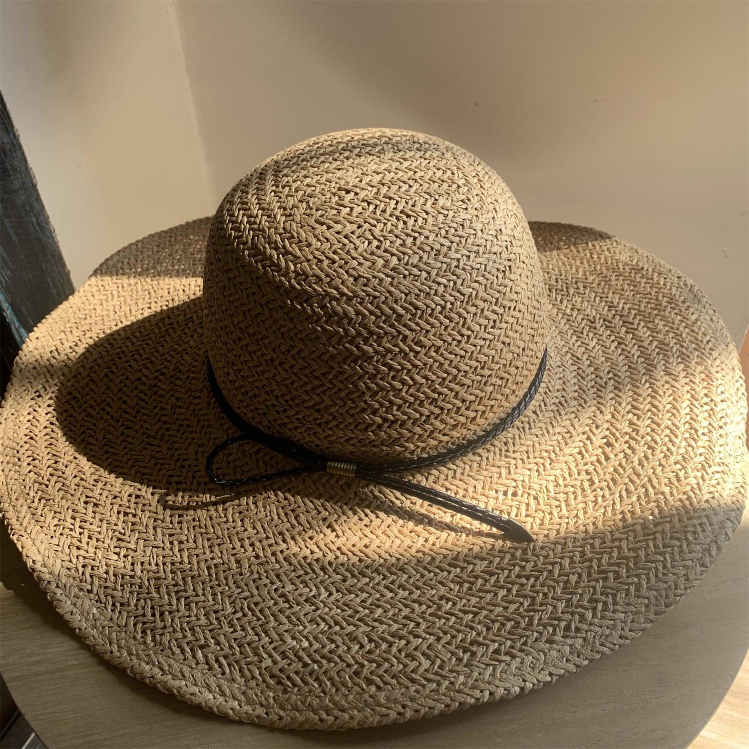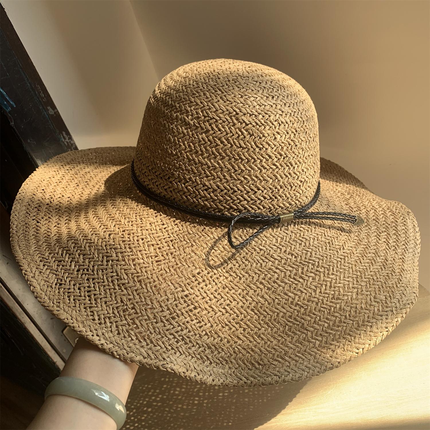 Sombrero de Paja de Ala Ancha Tejido a Mano para Protección Solar Sombrero de Paja Sombrero de Sol de Verano para Vacaciones en la Playa para Mujer Sombrero de Copa Sombrero de Sol para la Playa
