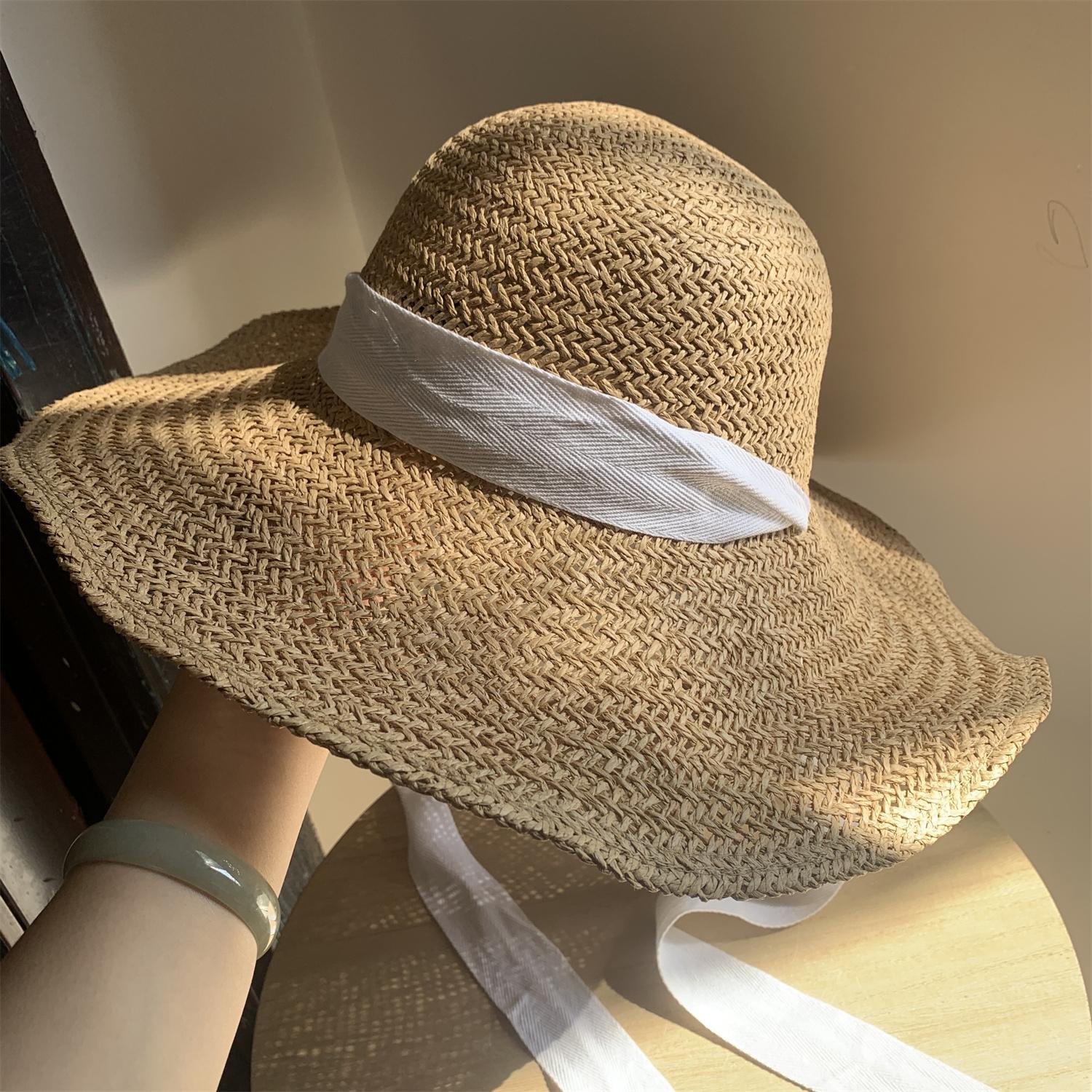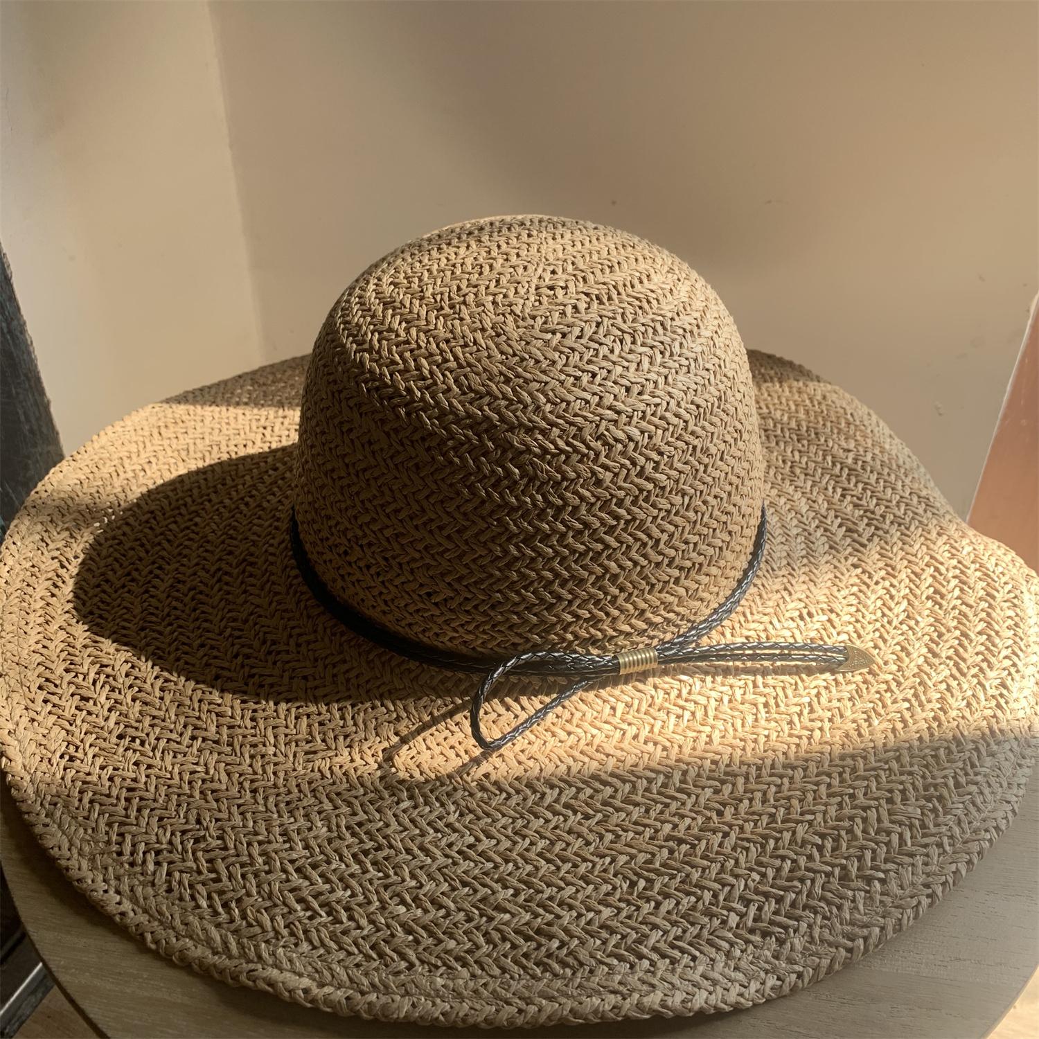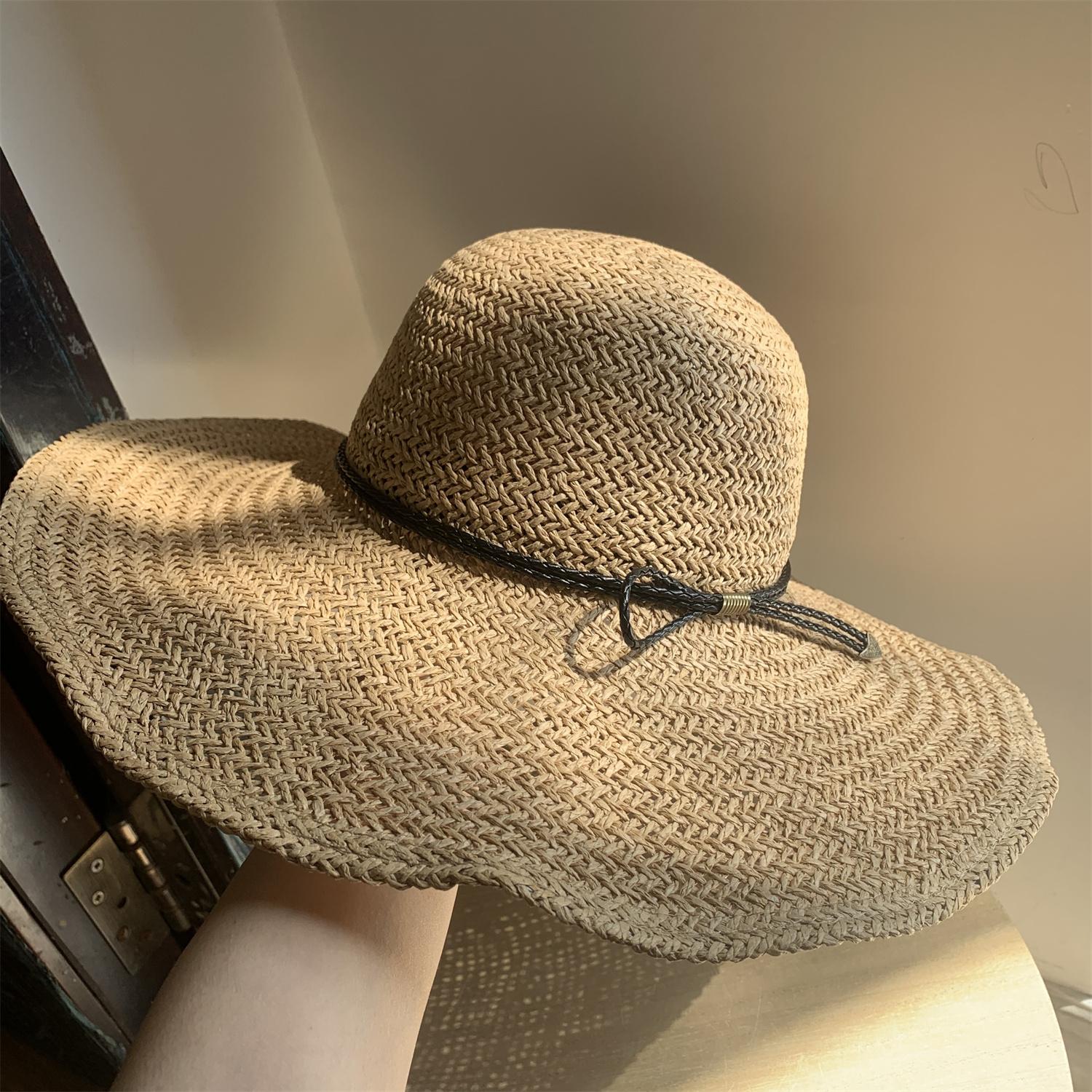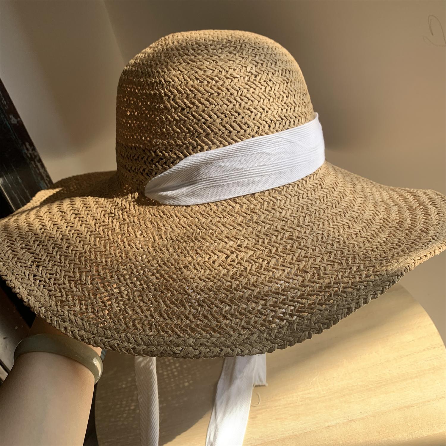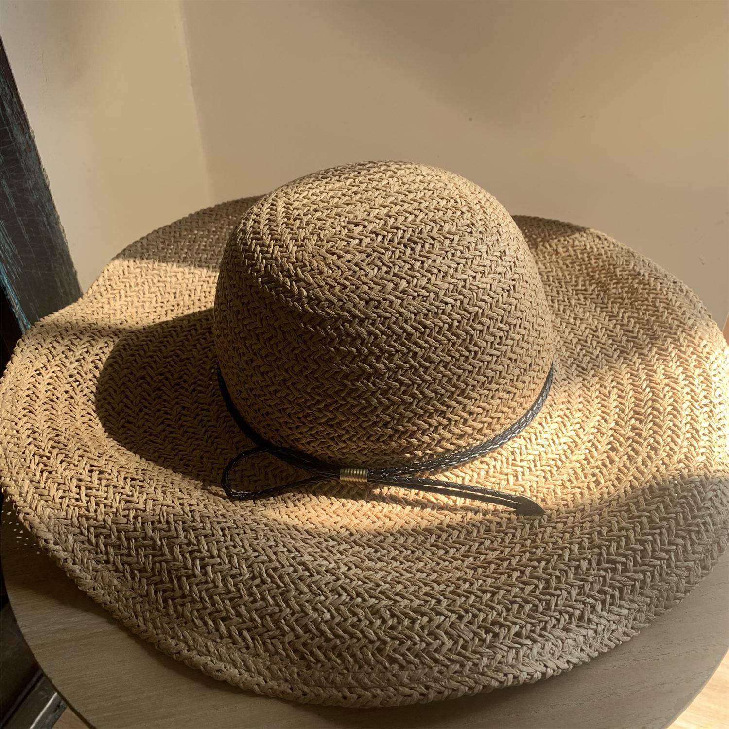 Sombrero de Paja de Ala Ancha Tejido a Mano para Protección Solar Sombrero de Paja Sombrero de Sol de Verano para Vacaciones en la Playa para Mujer Sombrero de Copa Sombrero de Sol para la Playa