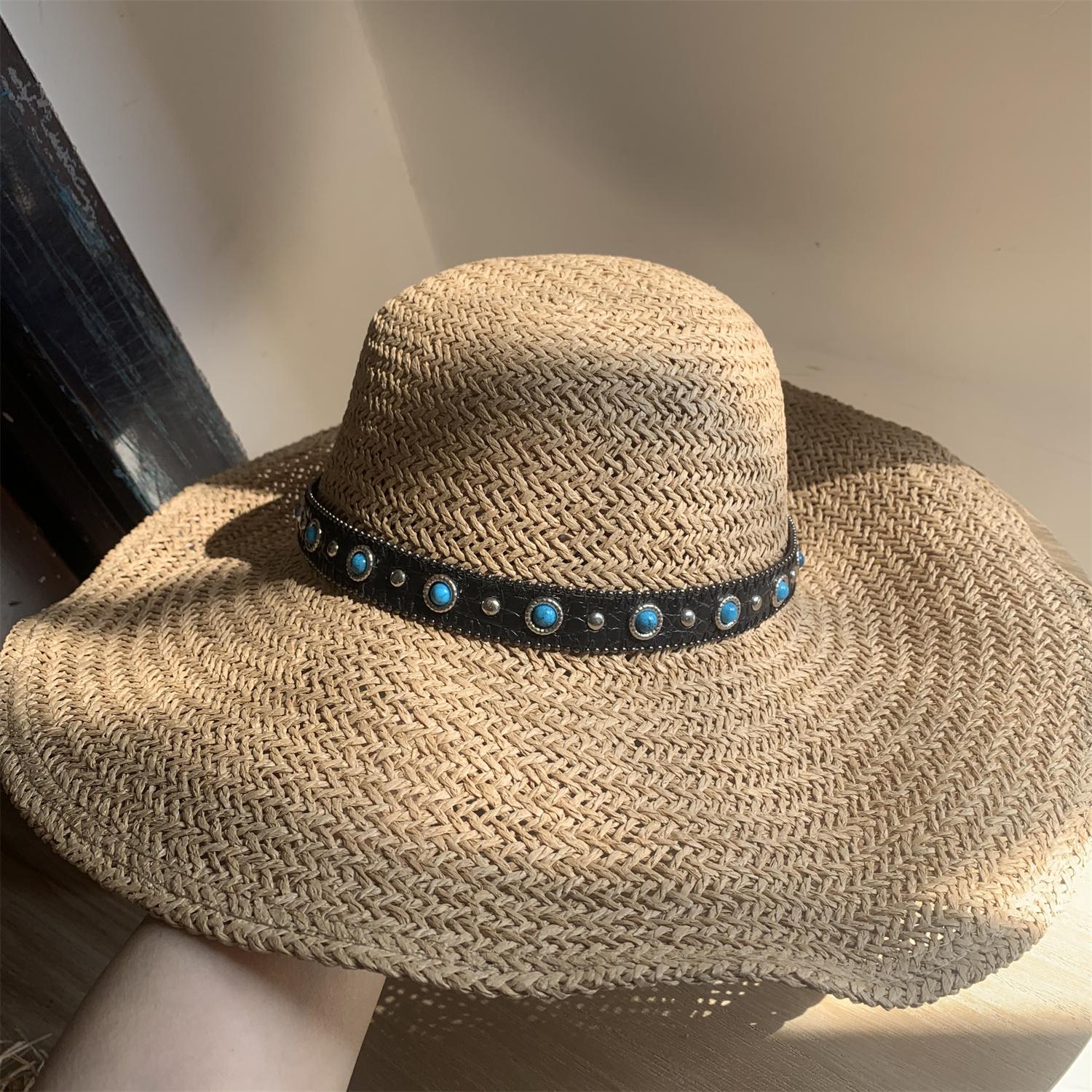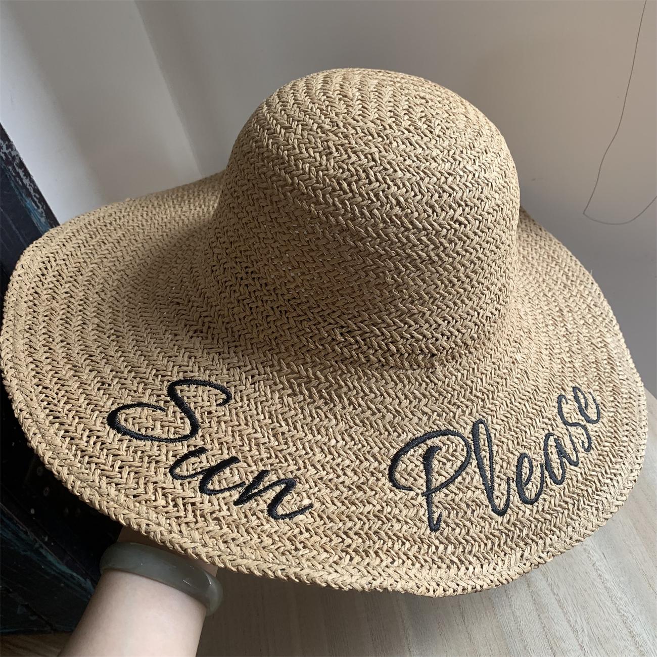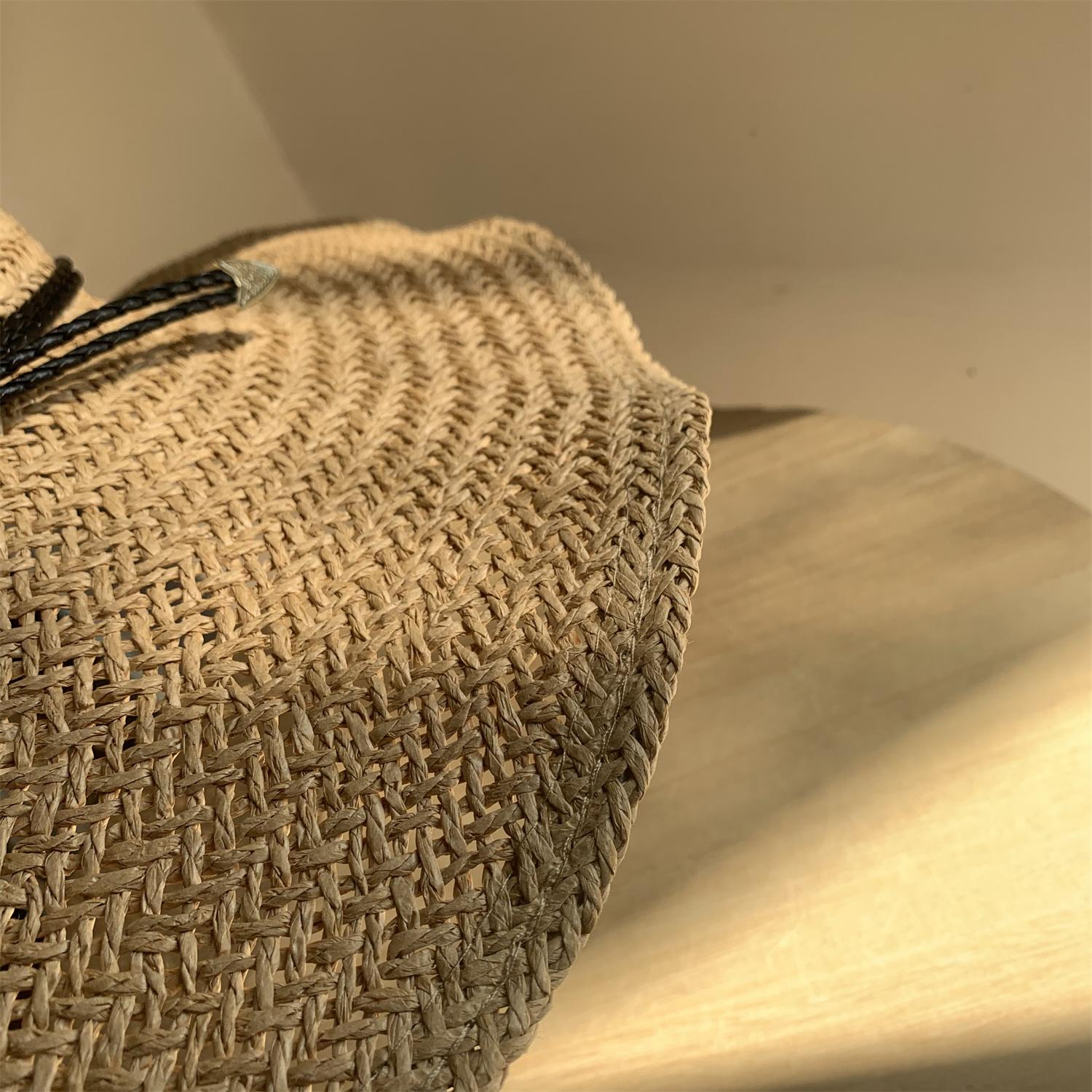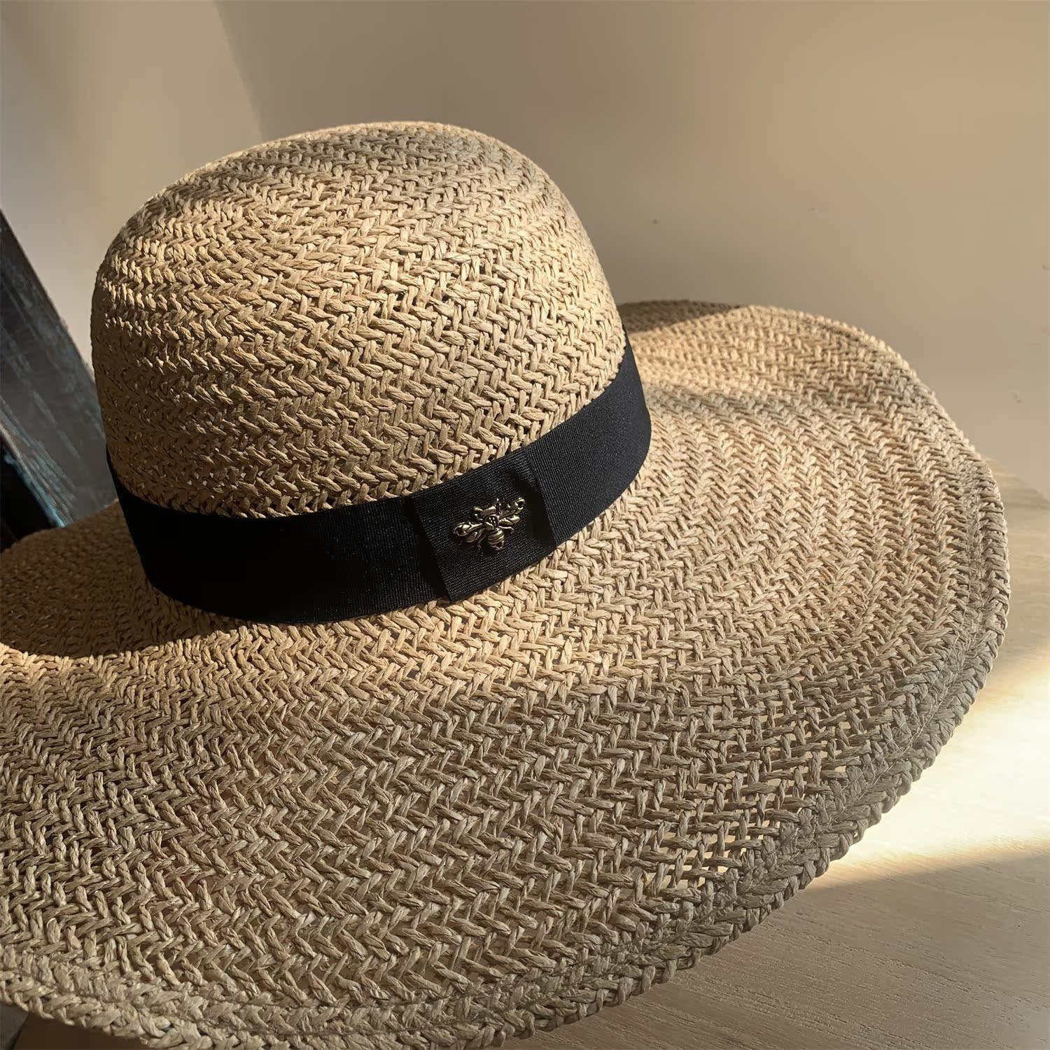 Sombrero de Paja de Ala Ancha Tejido a Mano para Protección Solar Sombrero de Paja Sombrero de Sol de Verano para Vacaciones en la Playa para Mujer Sombrero de Copa Sombrero de Sol para la Playa