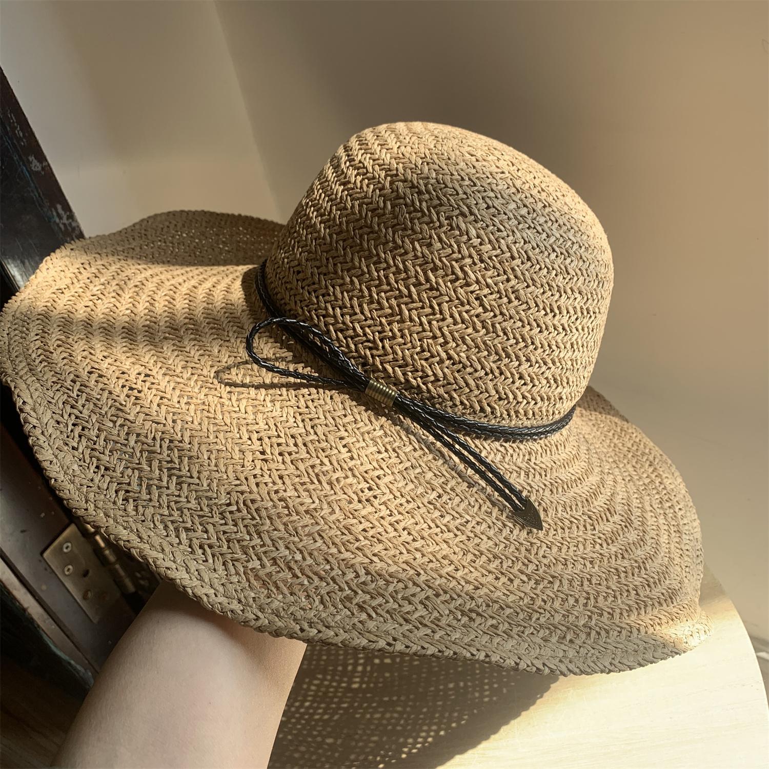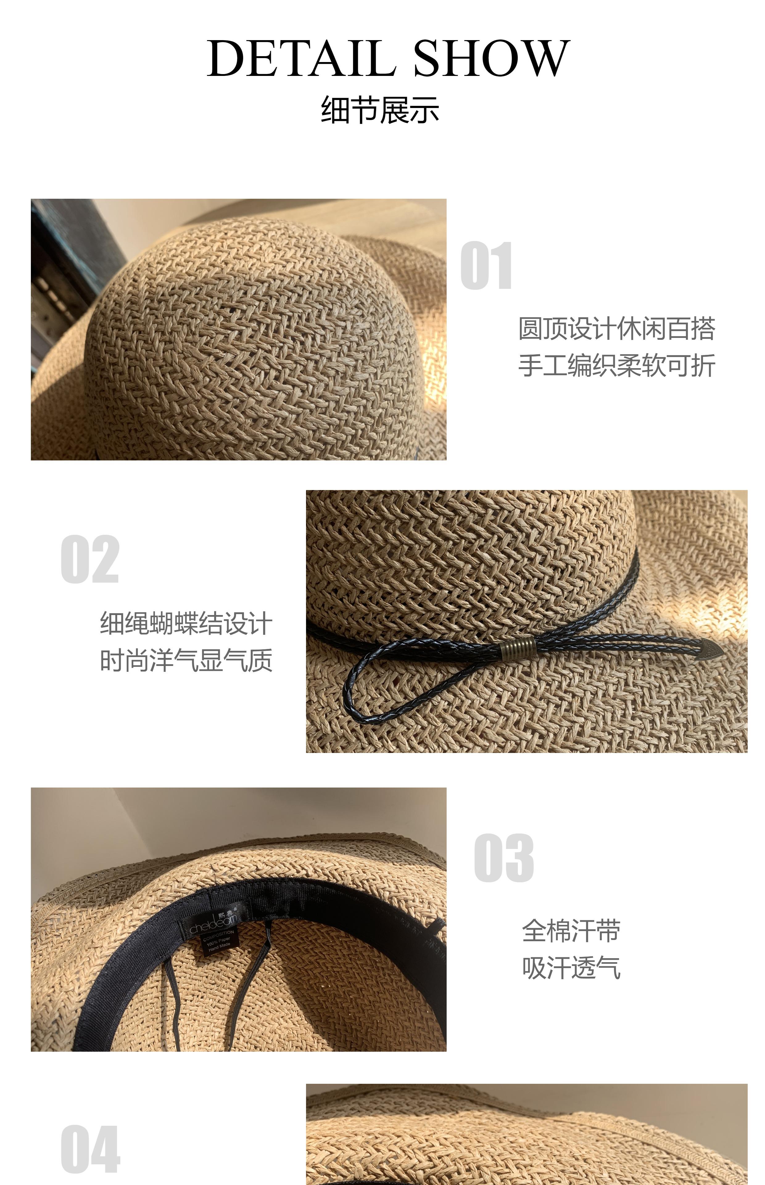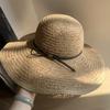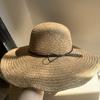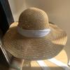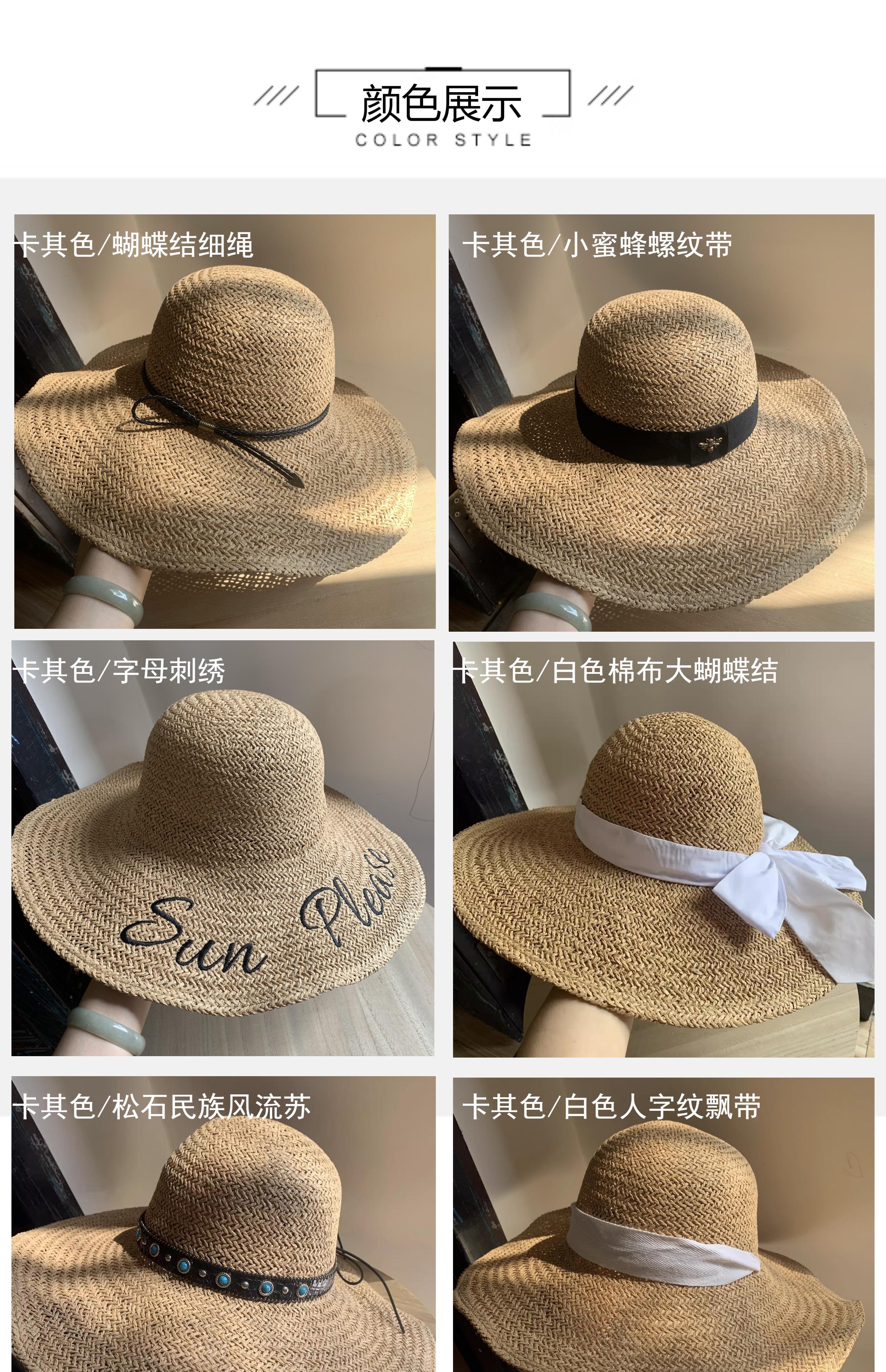 Khaki/bowstring [press 2] hand-knitted large-brimmed hat, Khaki/little bee threaded belt [press 2] hand-knitte...