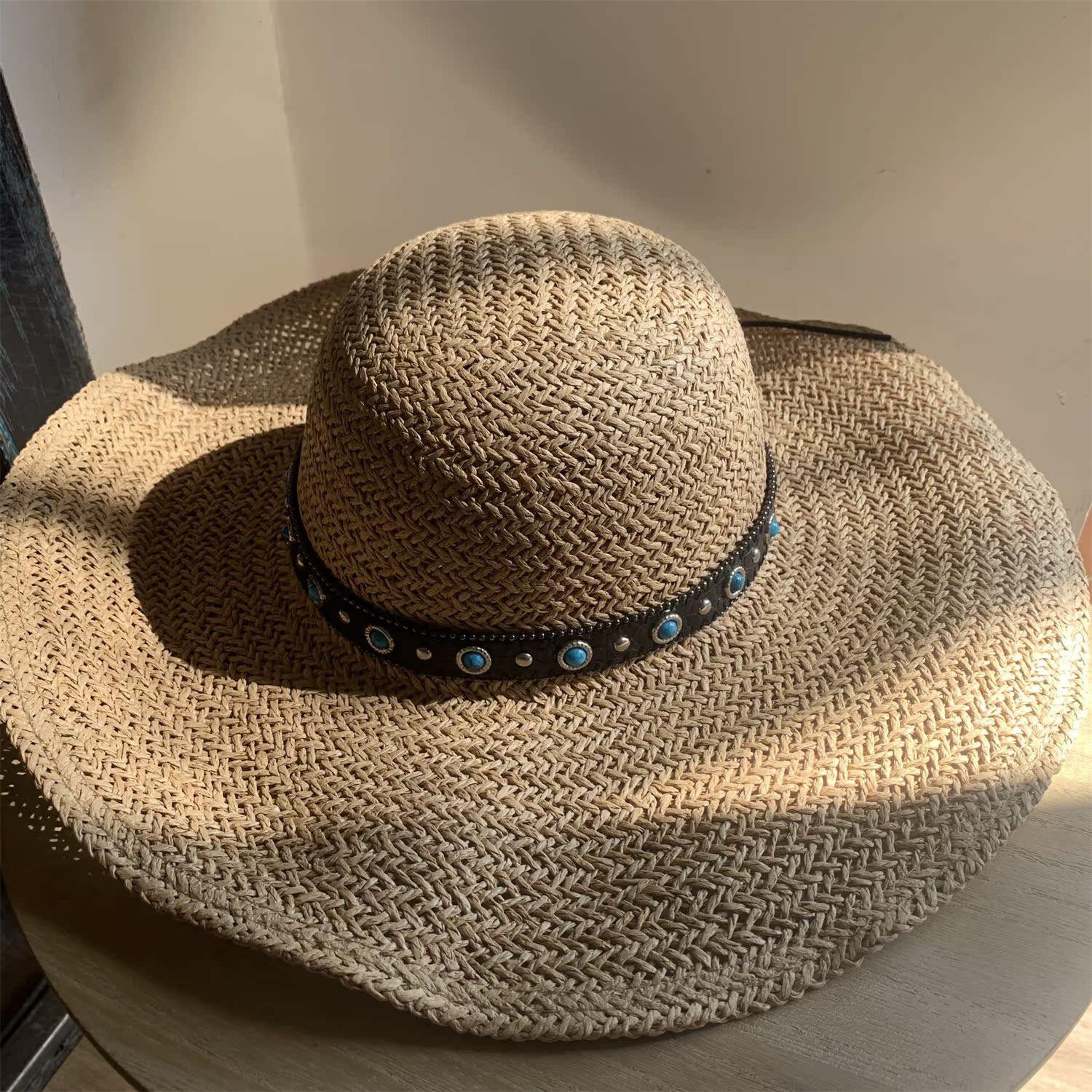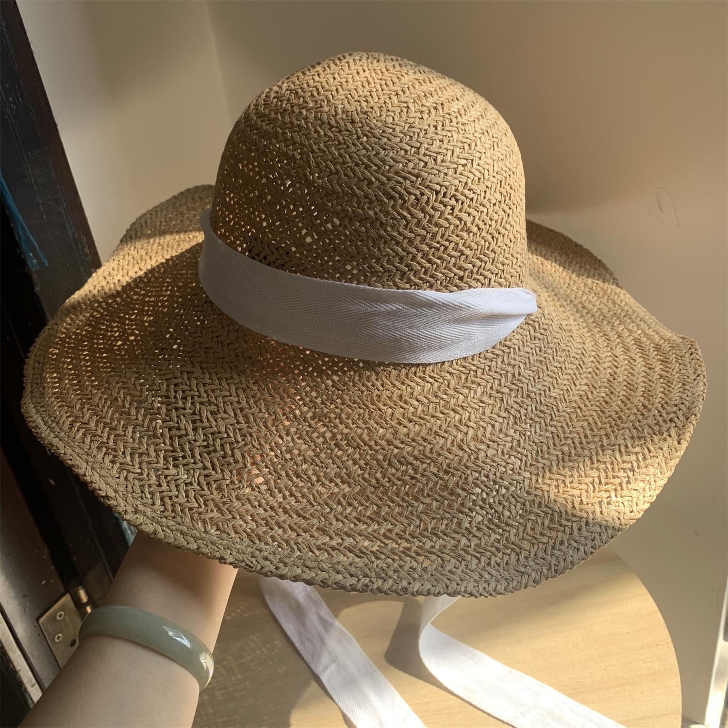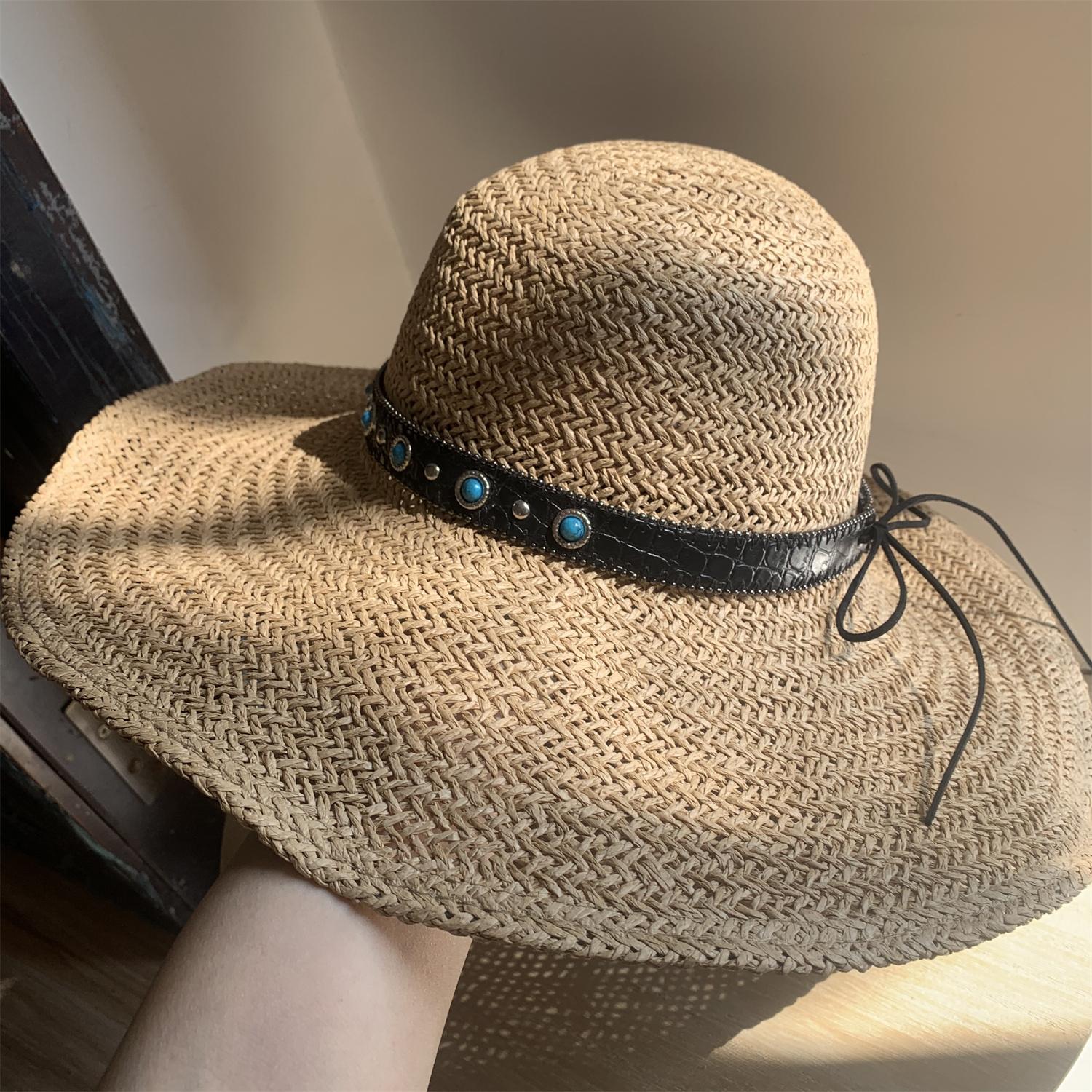 Khaki/bowstring [press 2] hand-knitted large-brimmed hat, Khaki/little bee threaded belt [press 2] hand-knitte...