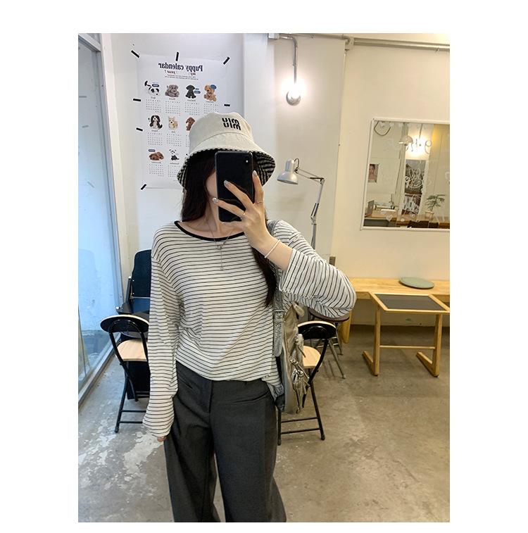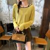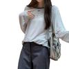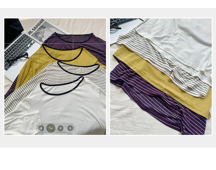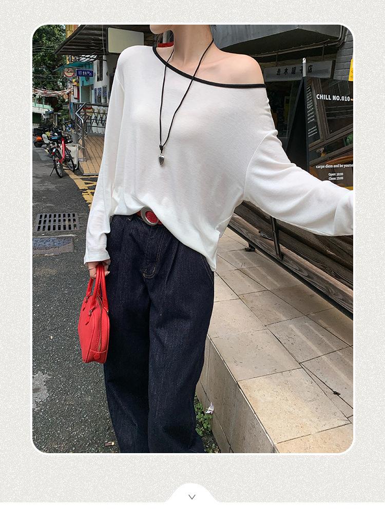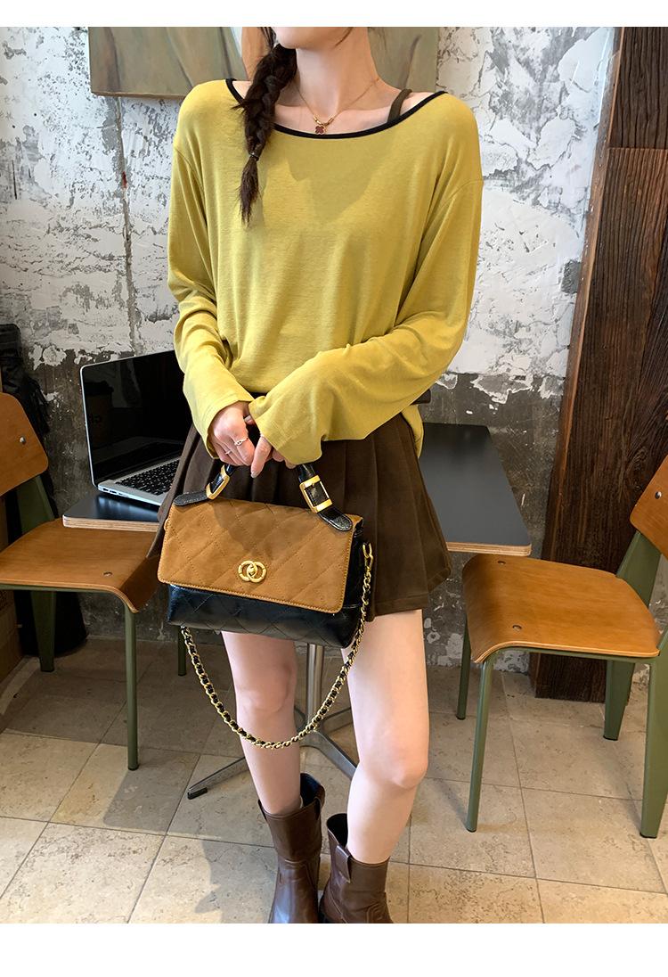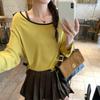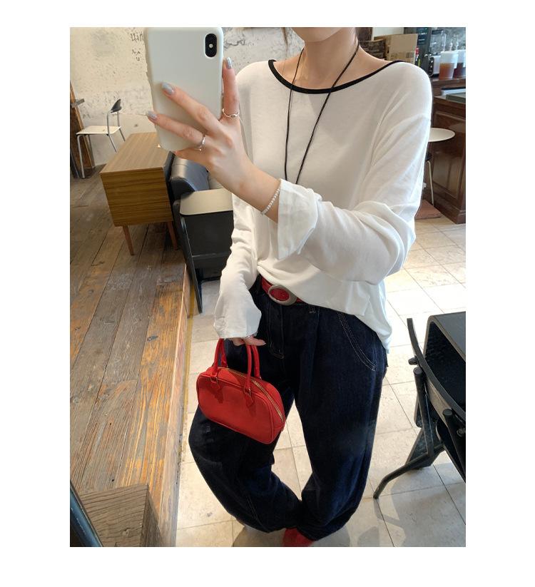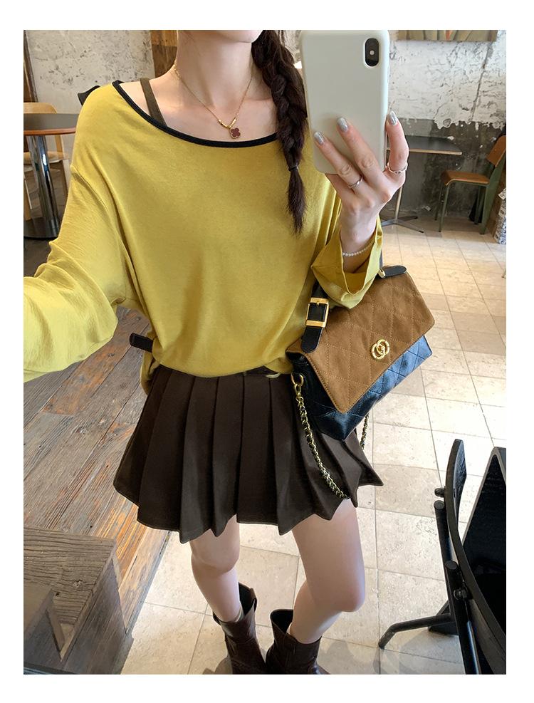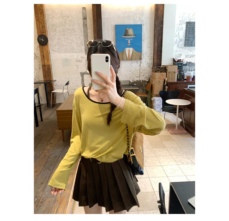 Camiseta de diseño con bloques de color patchwork de cuello redondo y manga larga para mujer, estilo coreano, otoño 2025, nueva, holgada, adelgazante, top de moda