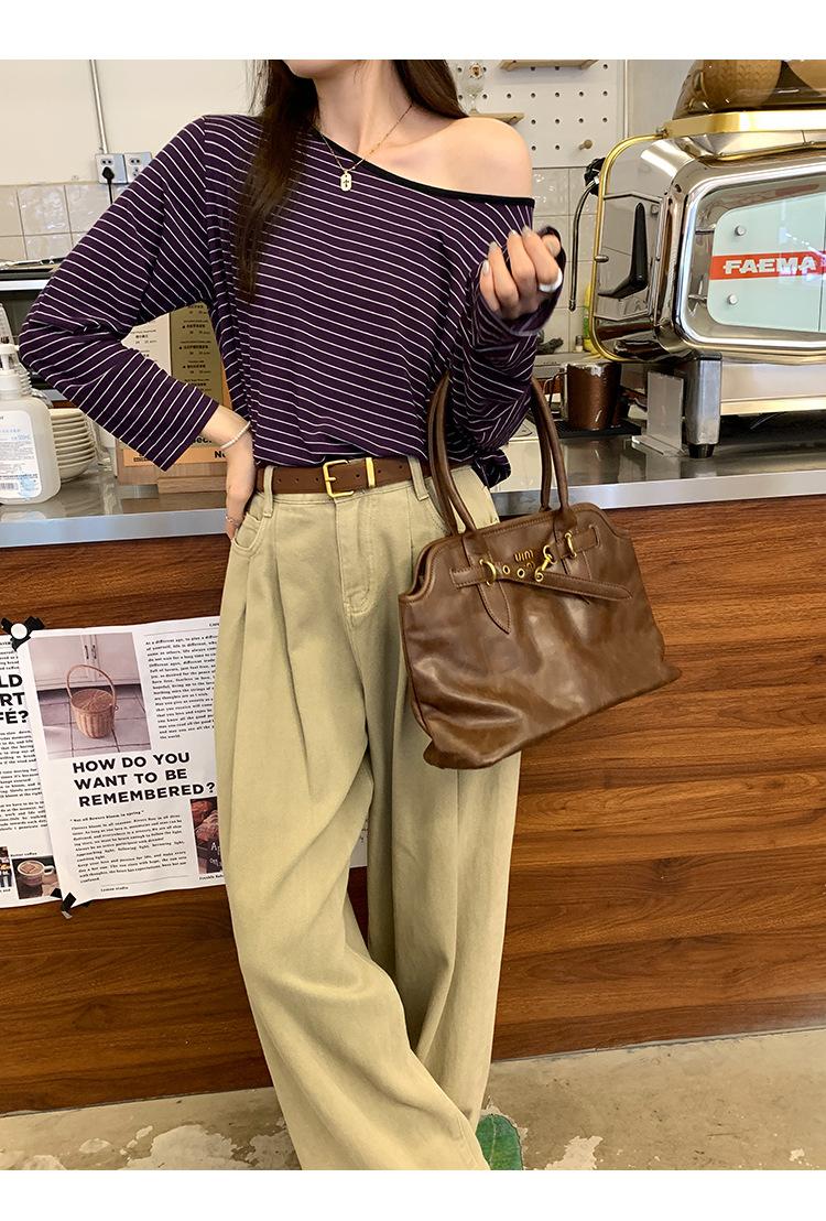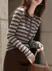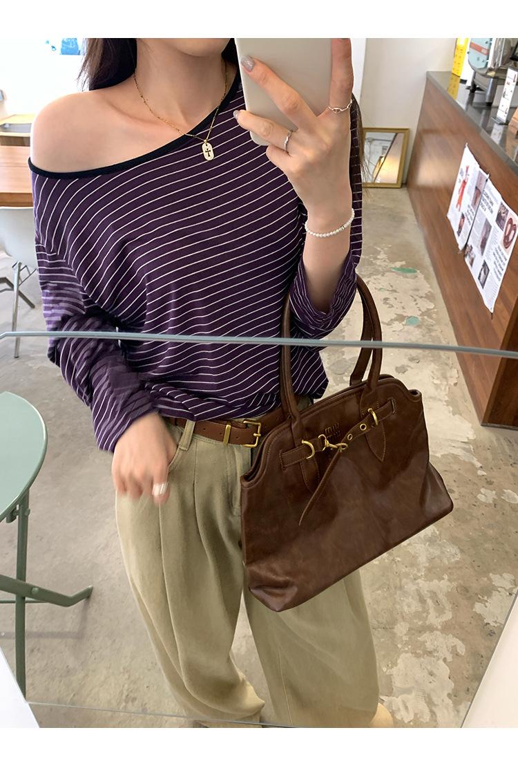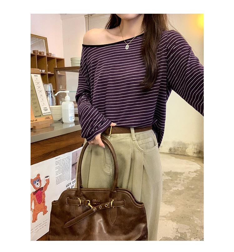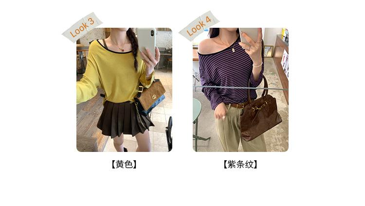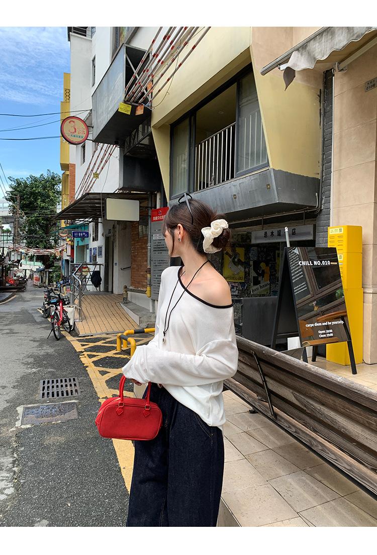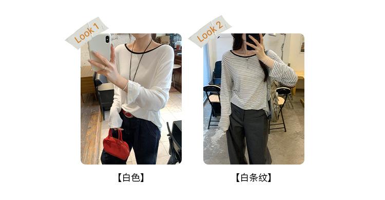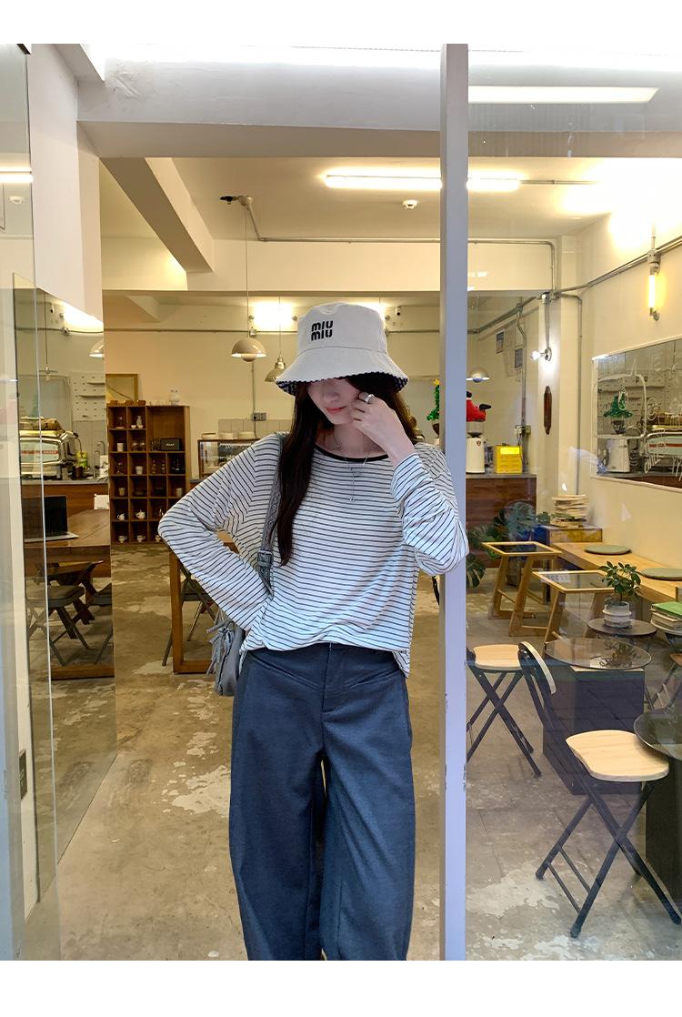 Camiseta de diseño con bloques de color patchwork de cuello redondo y manga larga para mujer, estilo coreano, otoño 2025, nueva, holgada, adelgazante, top de moda