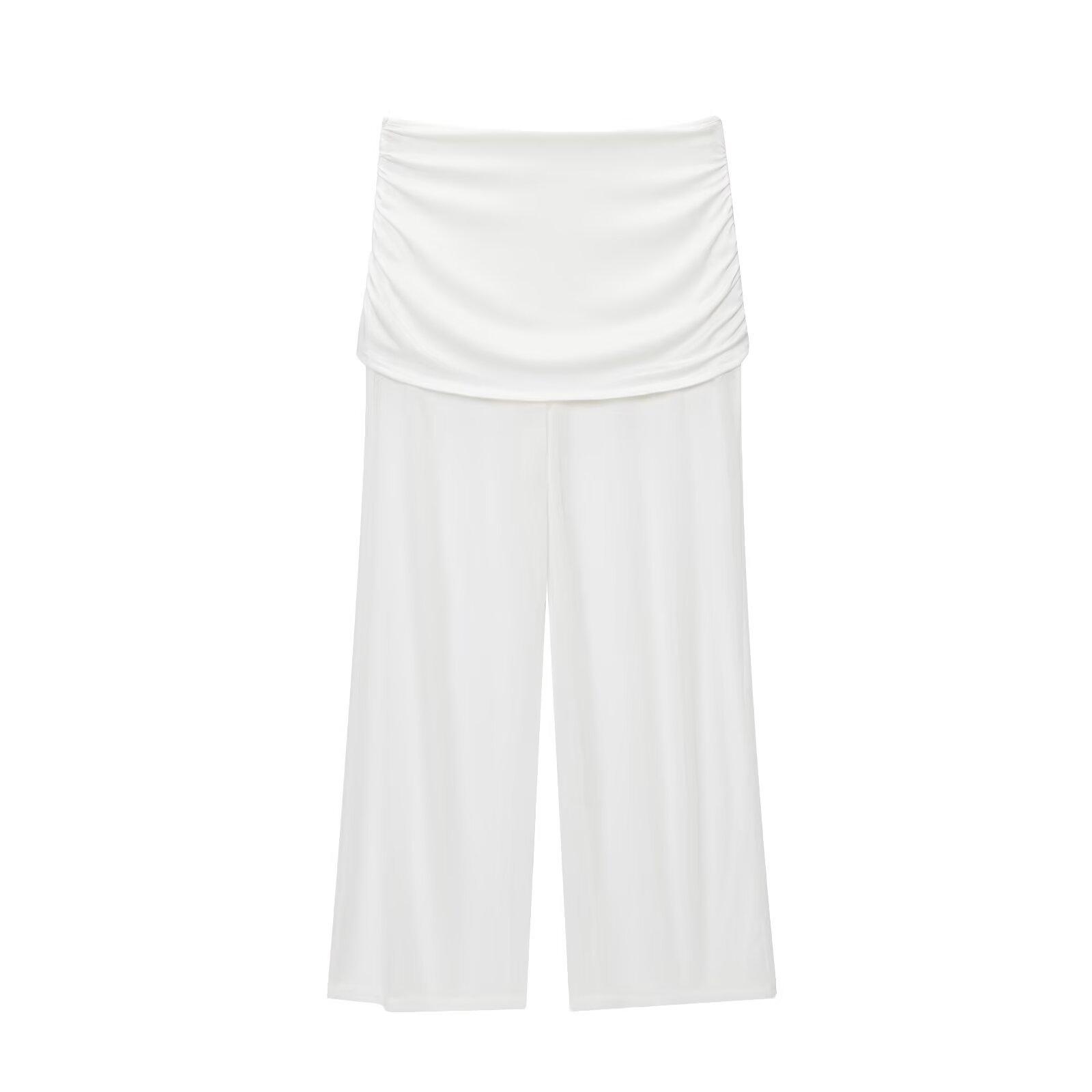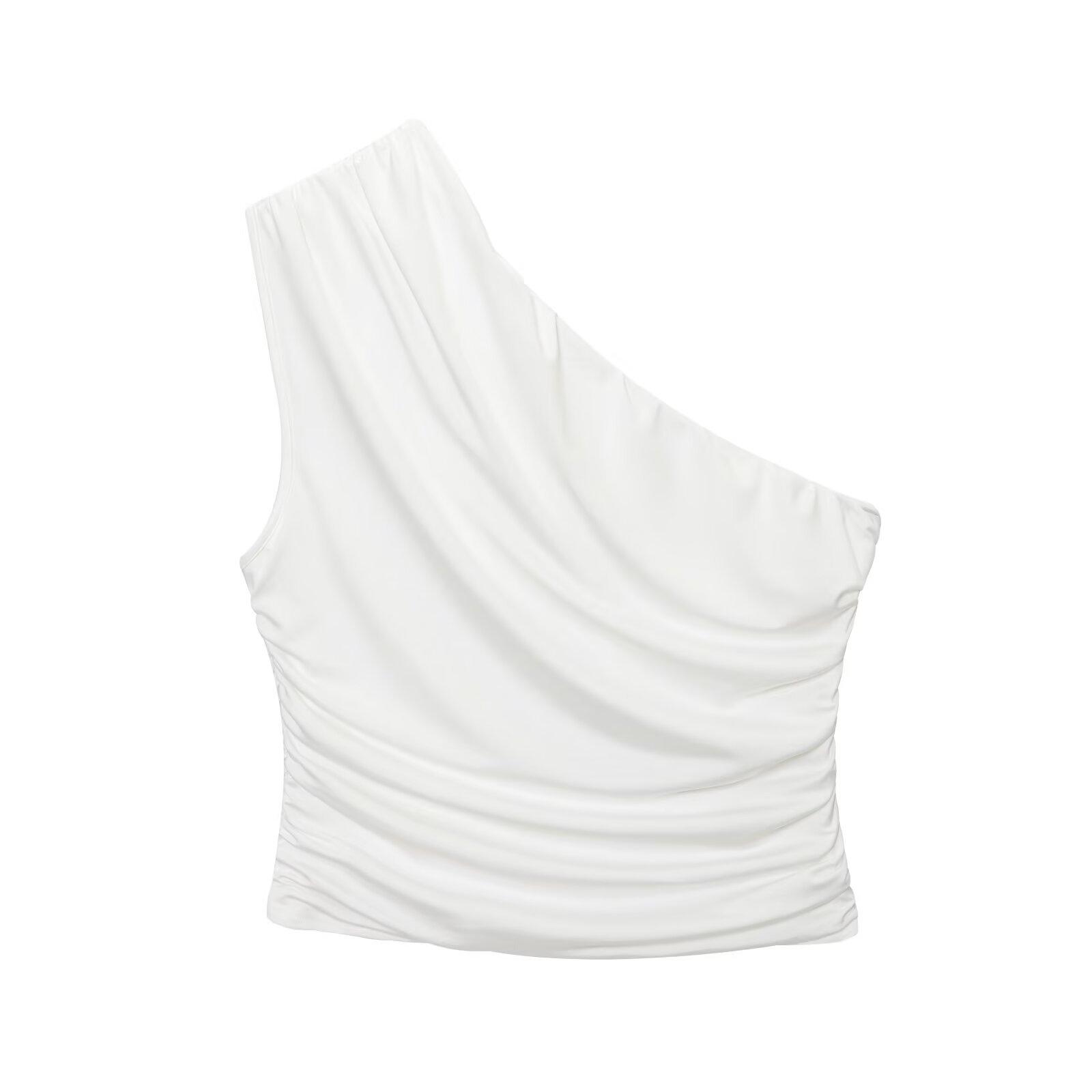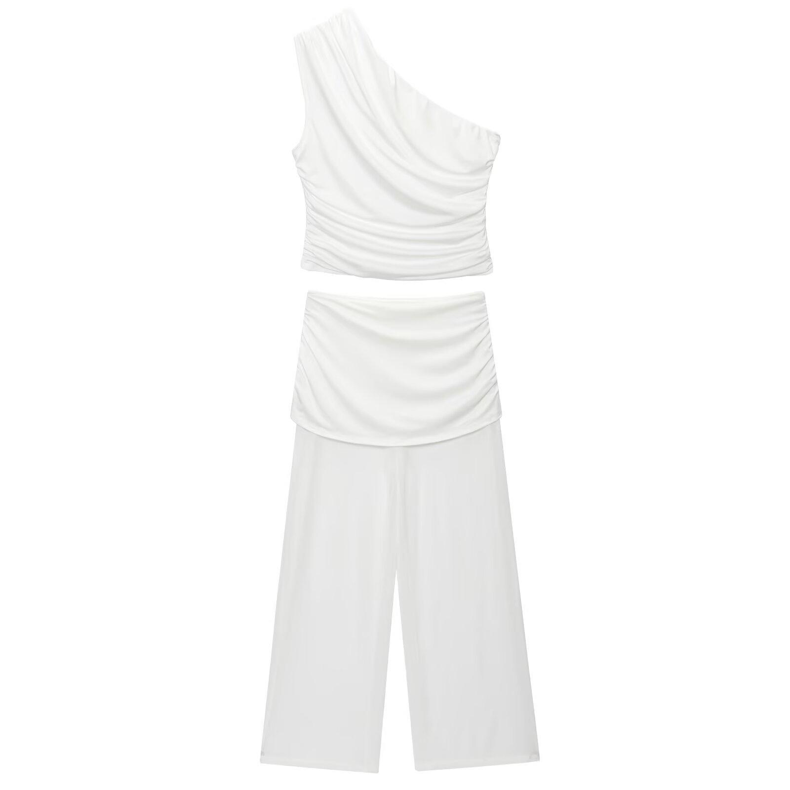 Z Moda Transfronteriza de Estilo Europeo y Americano 2025 Verano Nuevo Elegante Color Puro Top de Un Hombro Empalmado Traje de Pantalón Holgado