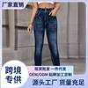Pantalones casuales nuevos para mujer, estación independiente transfronteriza de Amazon europea y americana, cintura alta, lavado, elásticos, jeans para ir al trabajo, ropa de mujer
