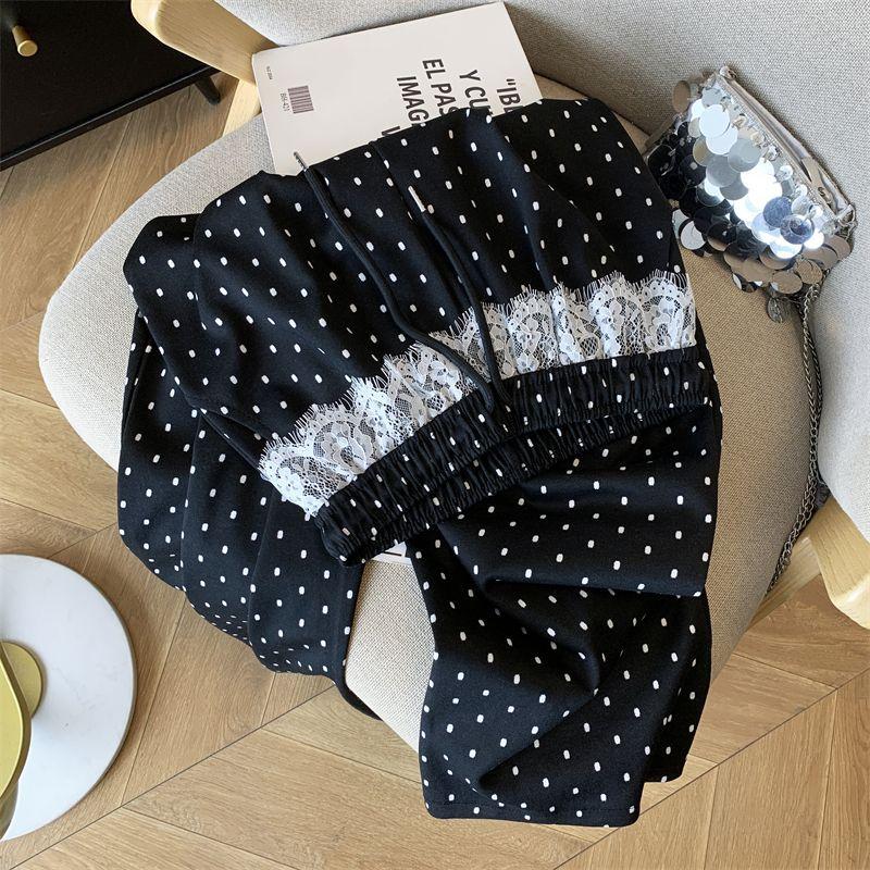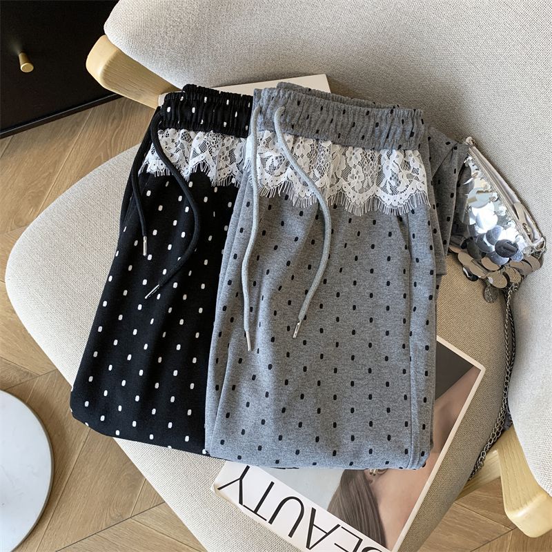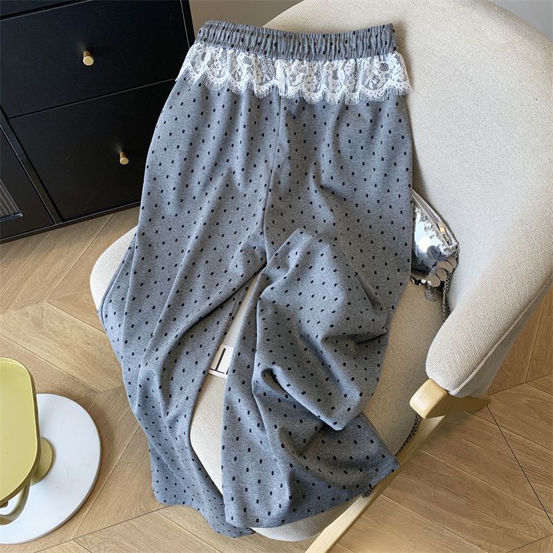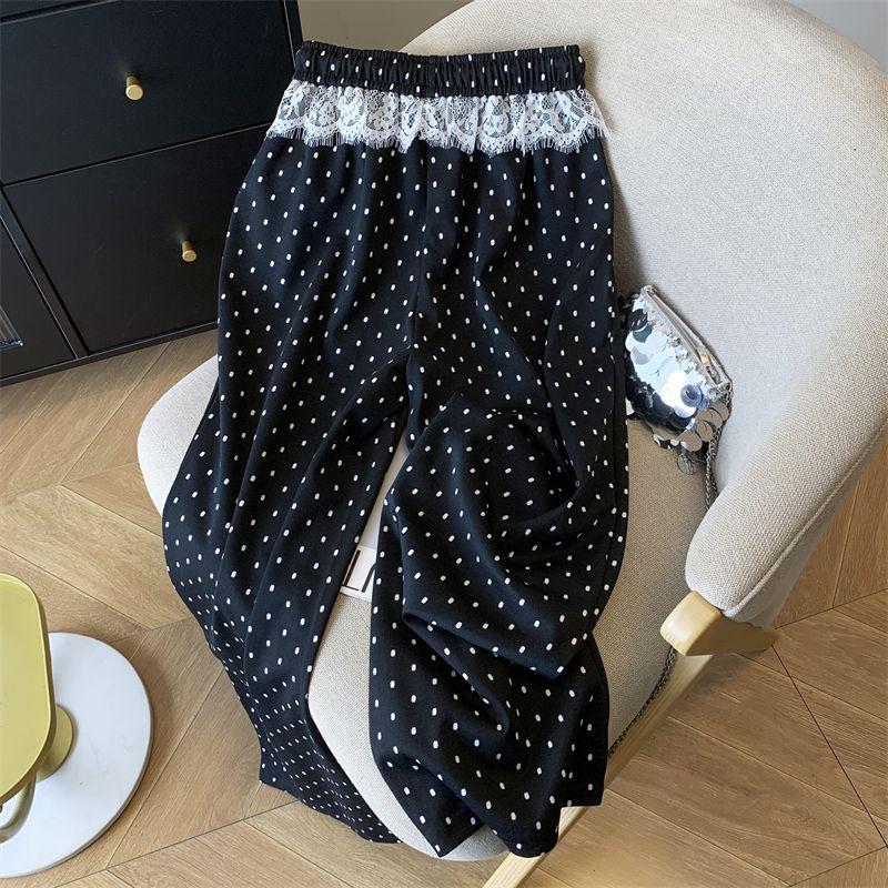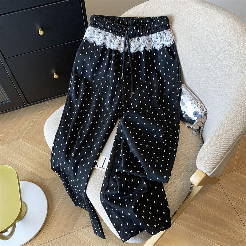 Compra Pantalones Casuales de Pierna Recta con Adorno de Encaje y Lunares para Mujer, Primavera y Otoño, Nuevo Estilo Relajado, Cintura Alta Adelgazantes, Sueltos de Pierna Ancha al por mayor en Joom.pro