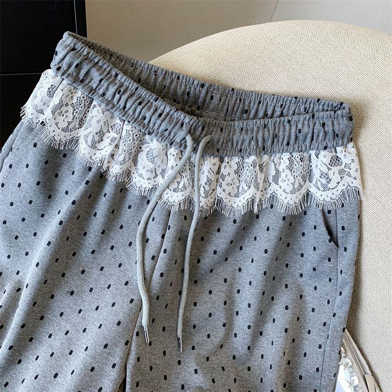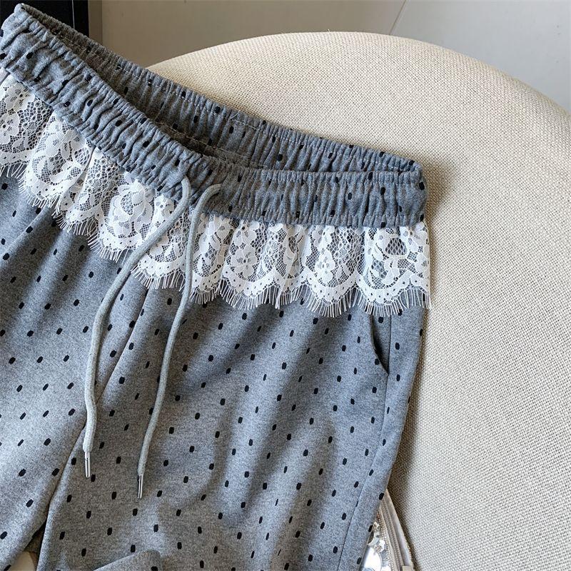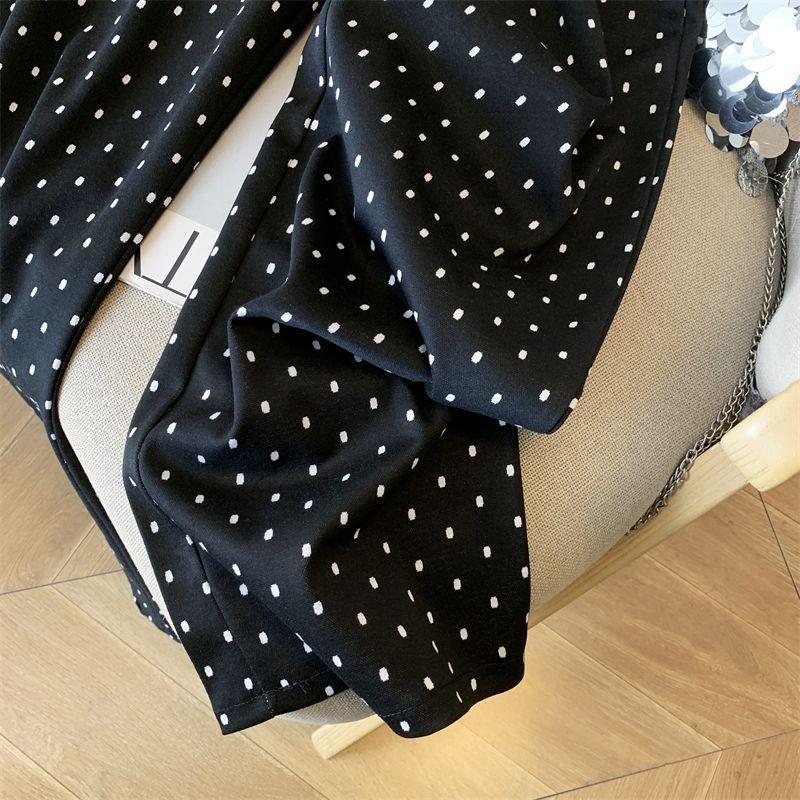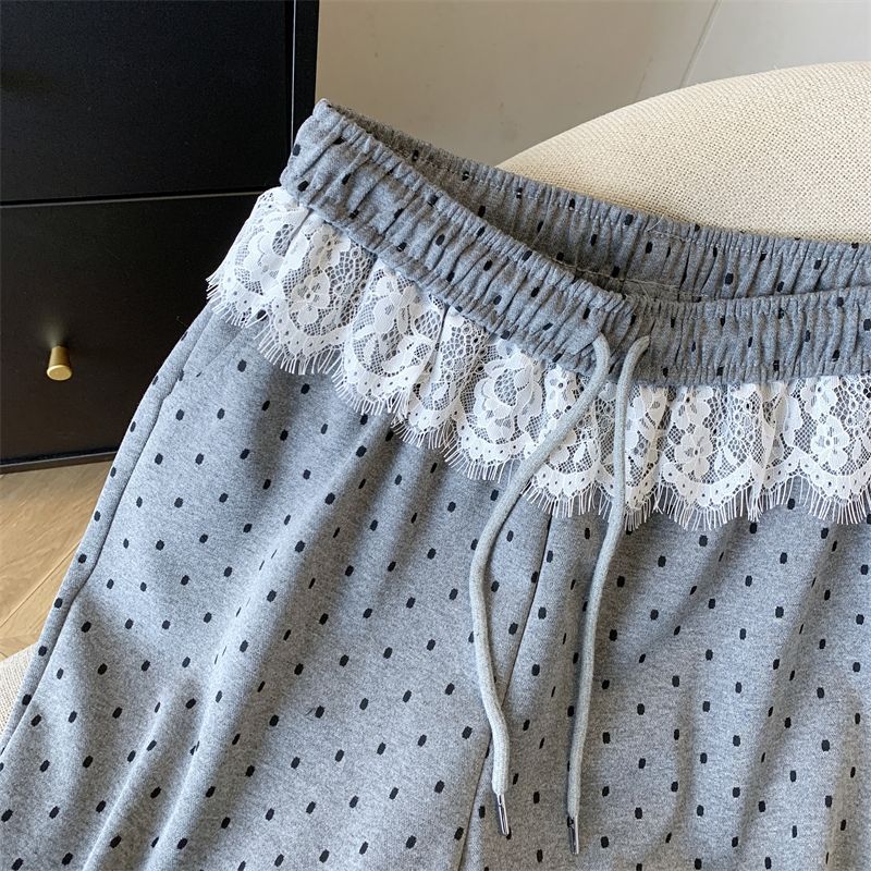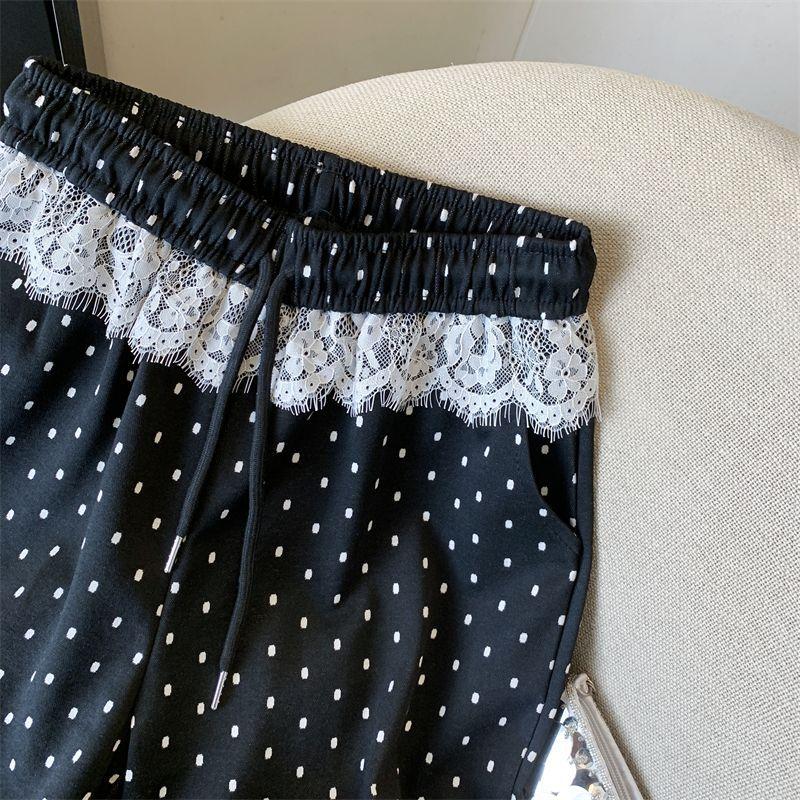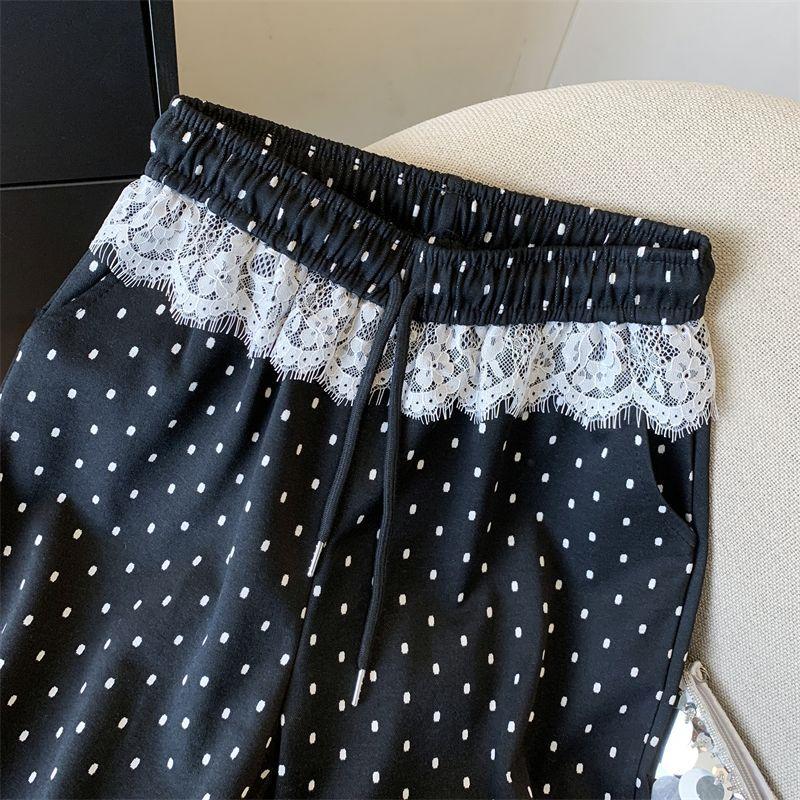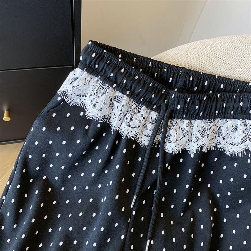 Pantalones Casuales de Pierna Recta con Adorno de Encaje y Lunares para Mujer, Primavera y Otoño, Nuevo Estilo Relajado, Cintura Alta Adelgazantes, Sueltos de Pierna Ancha
