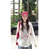 Camiseta de Manga Larga con Cuello Redondo Estampada para Mujer Cárdigan Holgado Protector Solar Blanco Top Delgado