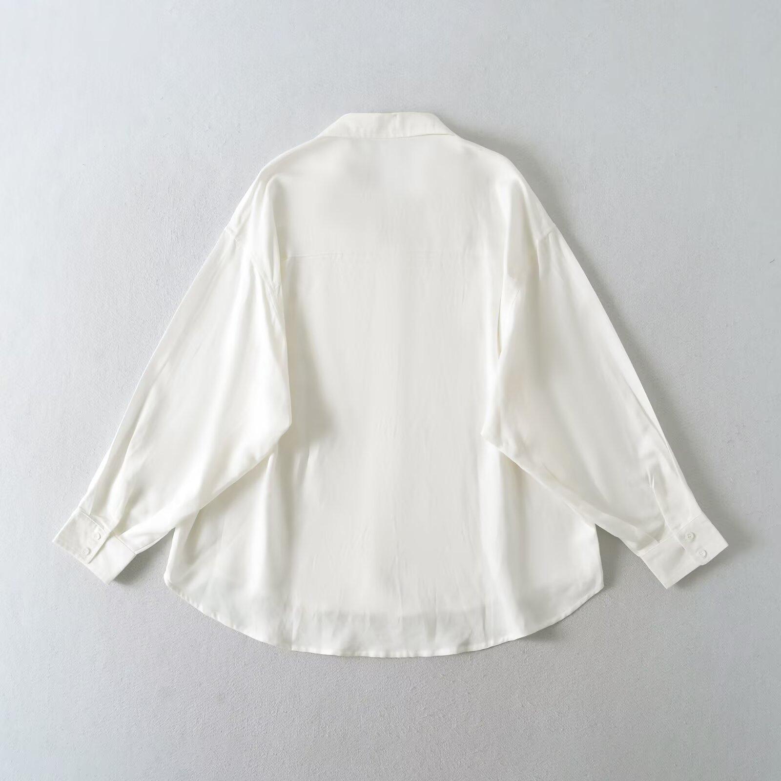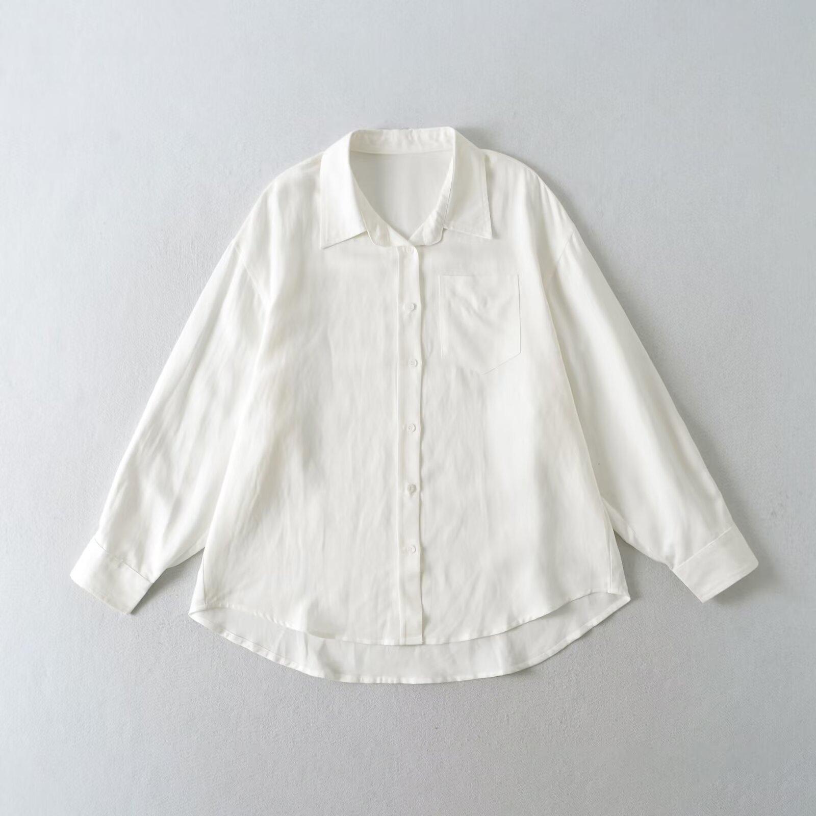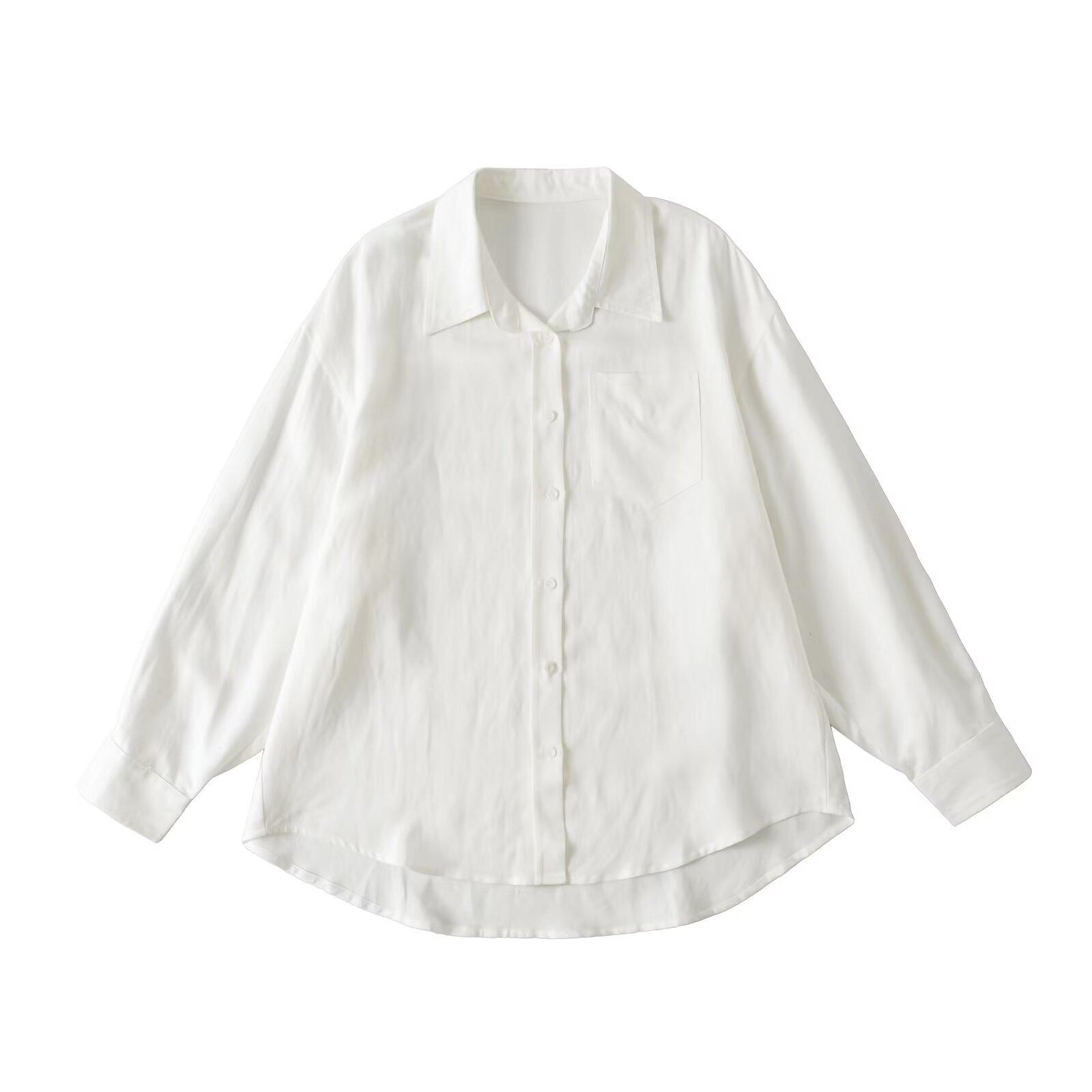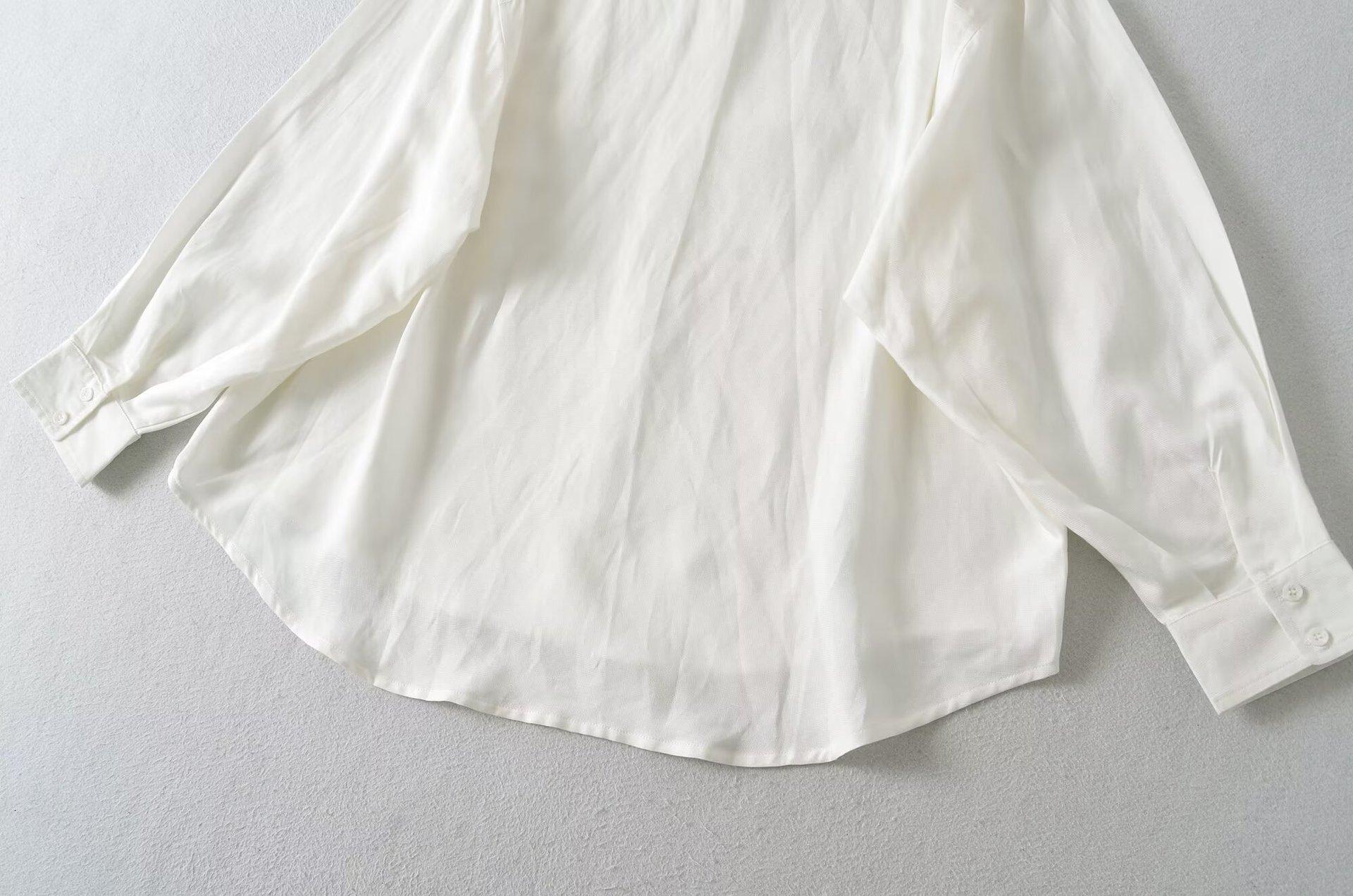 Ropa de mujer de comercio exterior transfronterizo 2025 otoño estilo europeo y americano solapa manga larga color sólido blusa holgada para mujer Z425110F