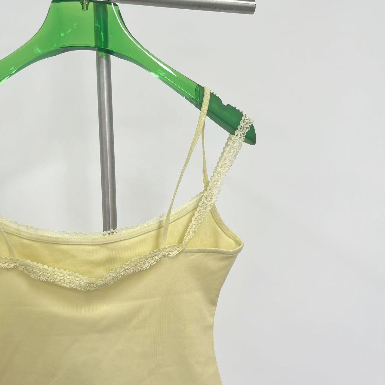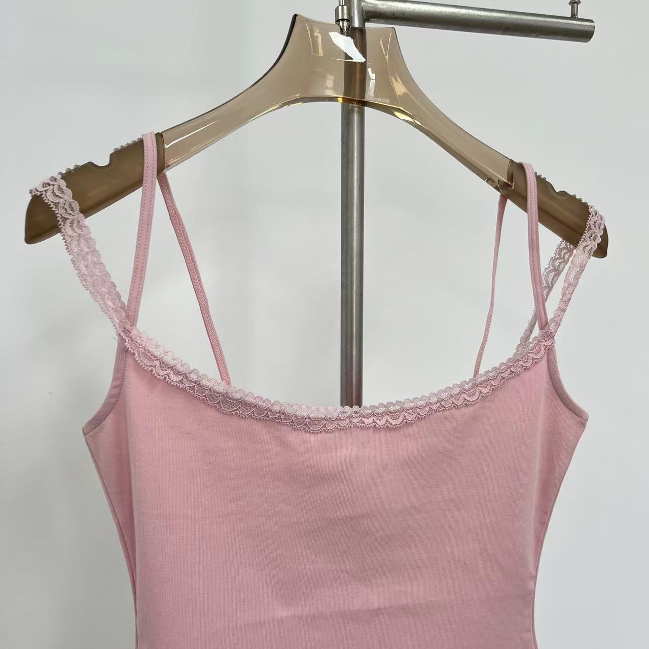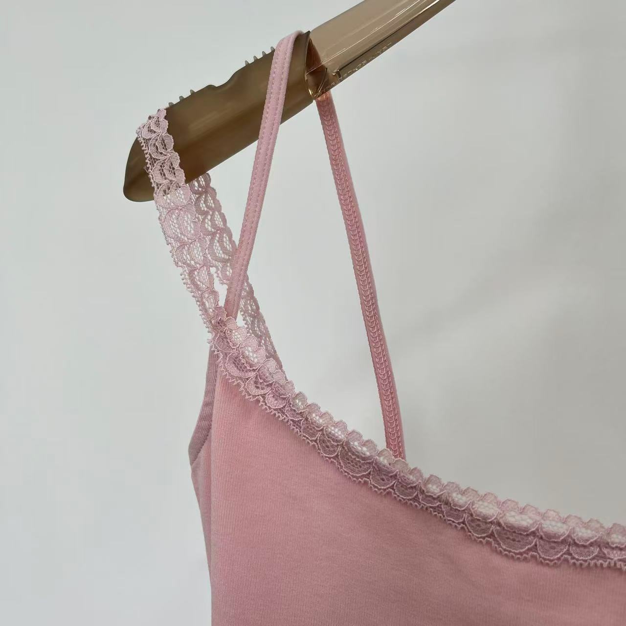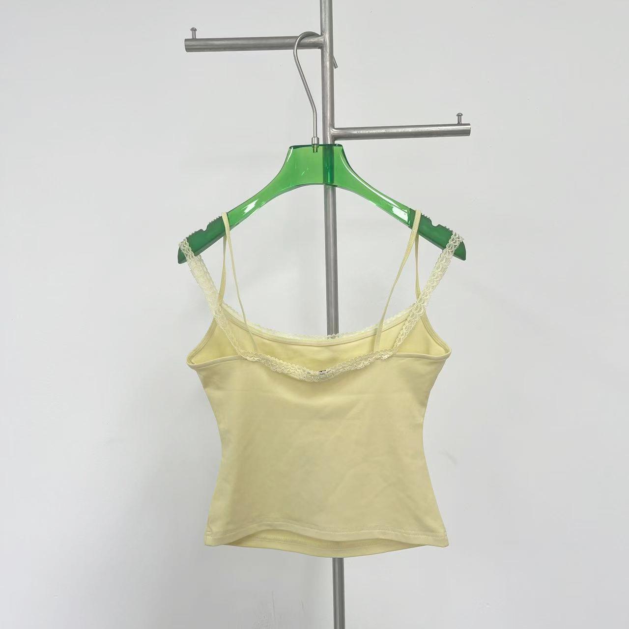 Camisola elástica ajustada con encaje en rosa claro/amarillo claro/negro