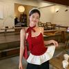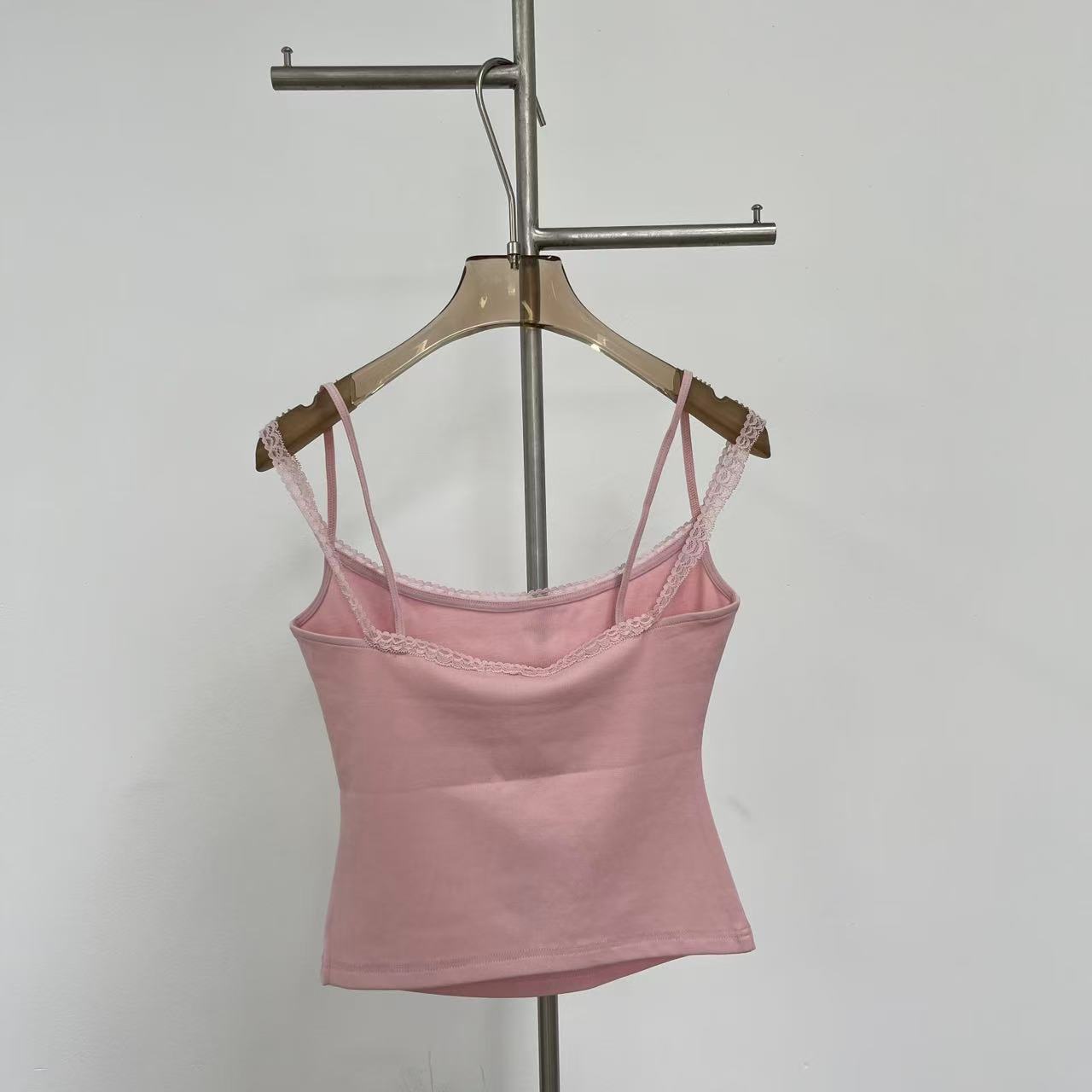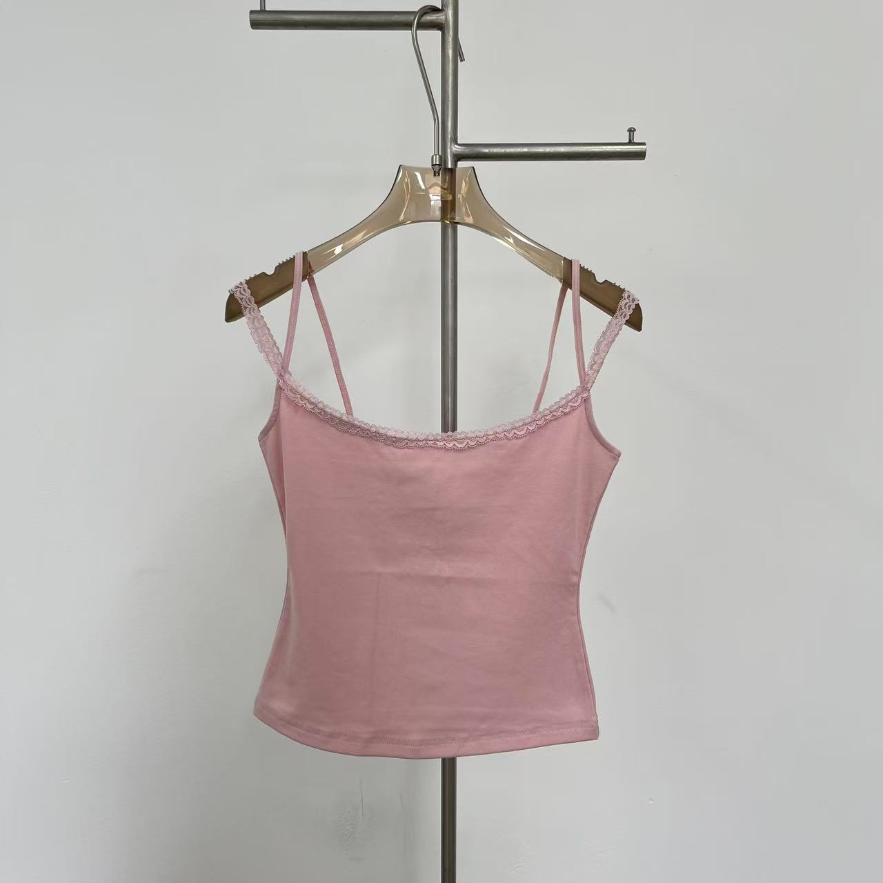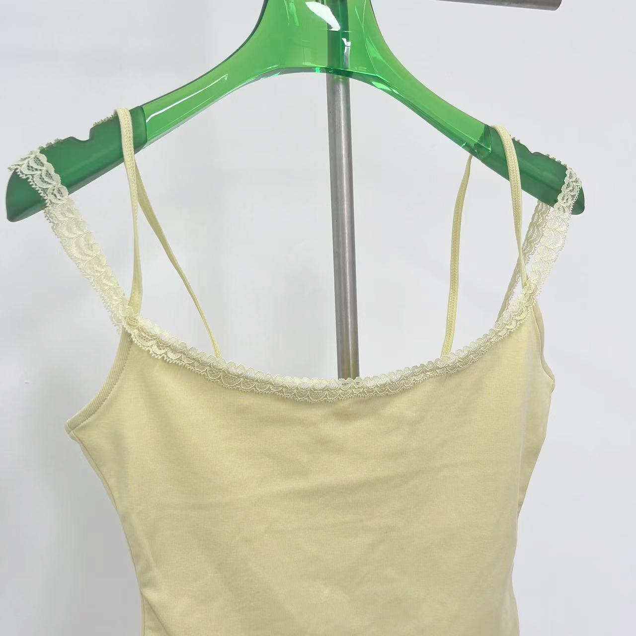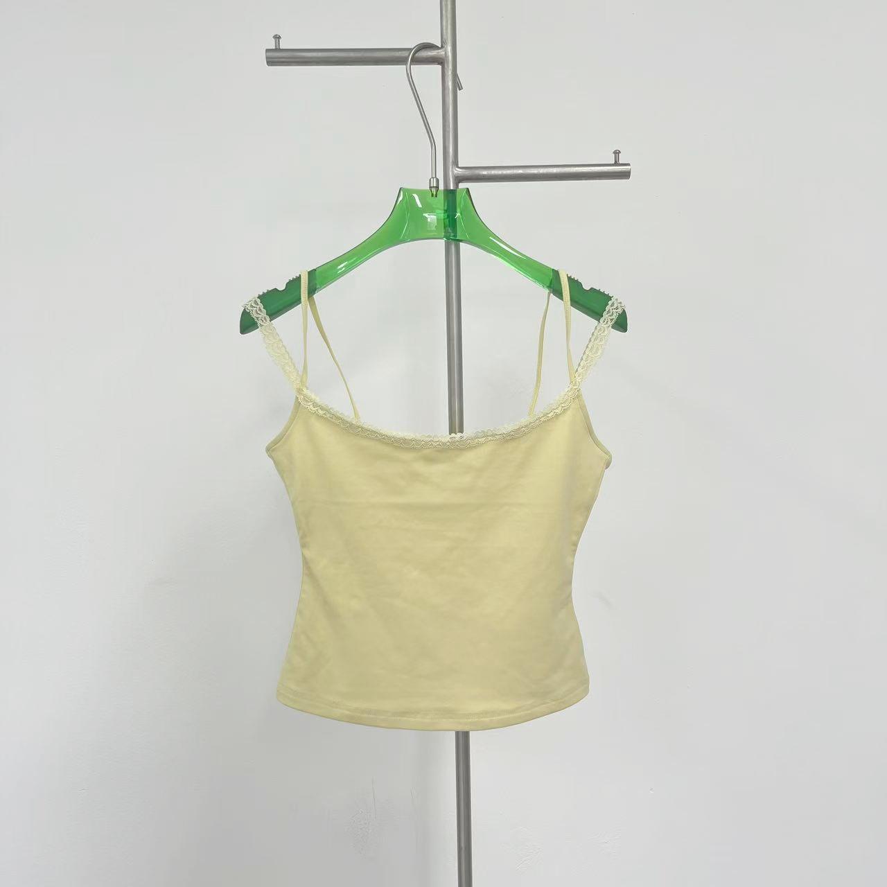 Camisola elástica ajustada con encaje en rosa claro/amarillo claro/negro