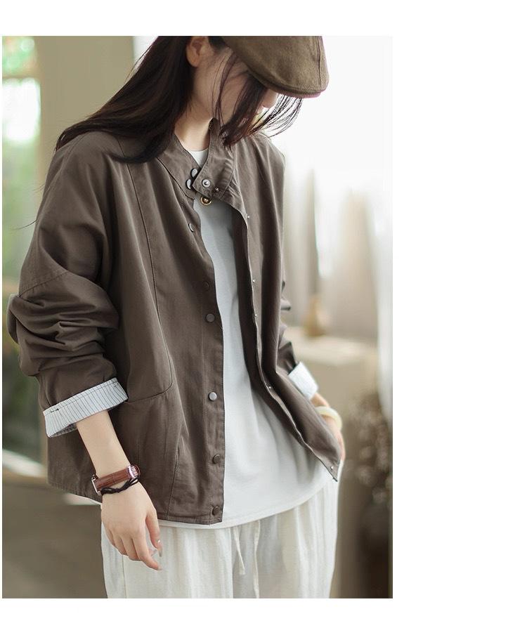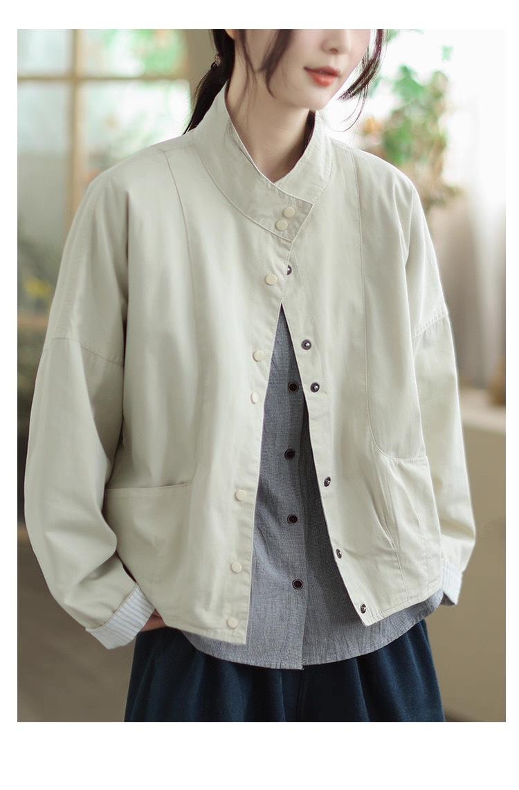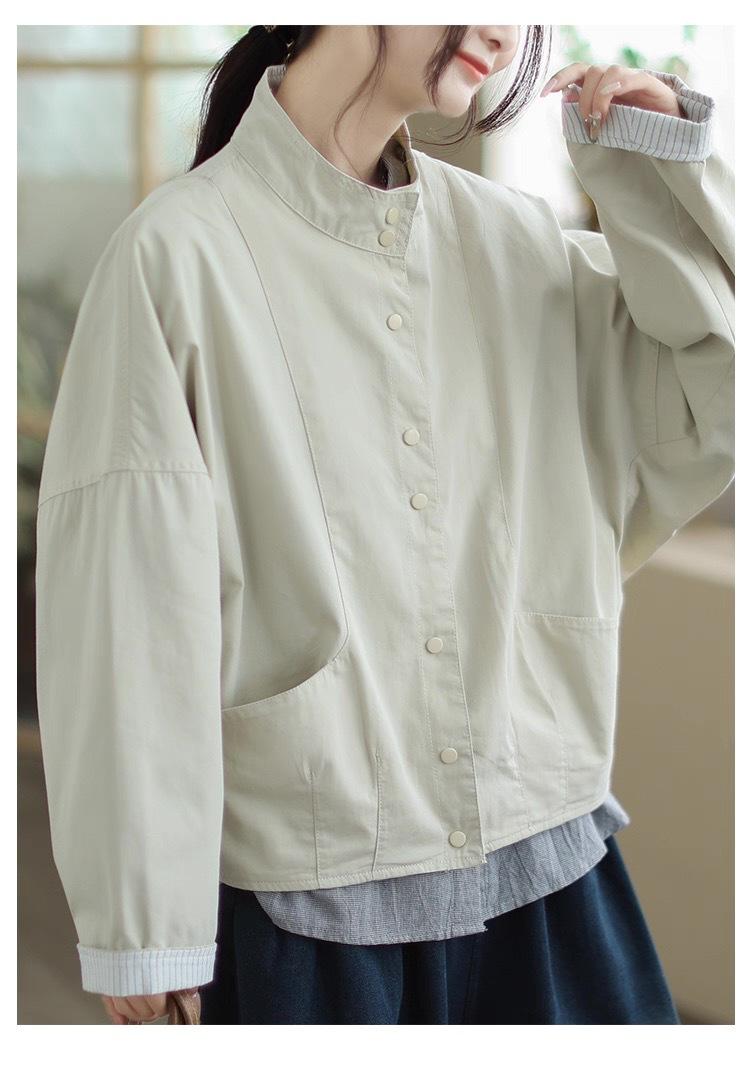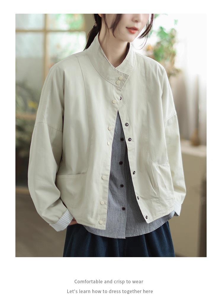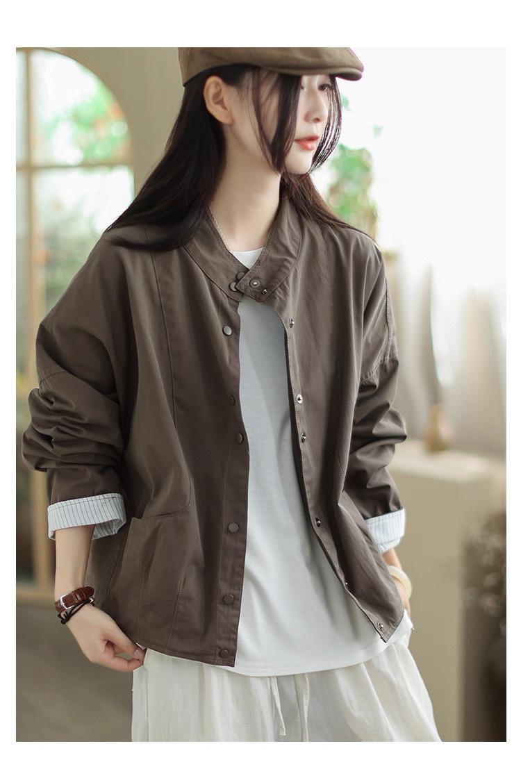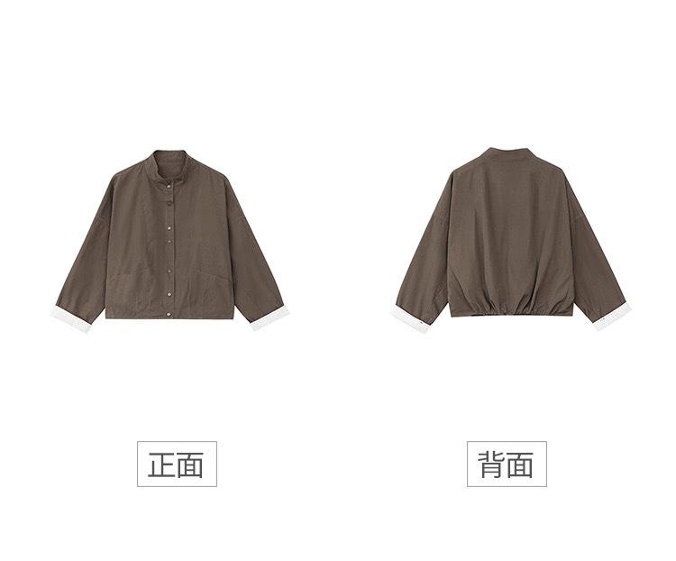 Compra 2025 Puños Empalmados Chaqueta Abrigo Rayado Principios de Otoño Nueva Casual Chaqueta Corta Cuello Alto Camisa Temperamento Mujer al por mayor en Joom.pro