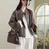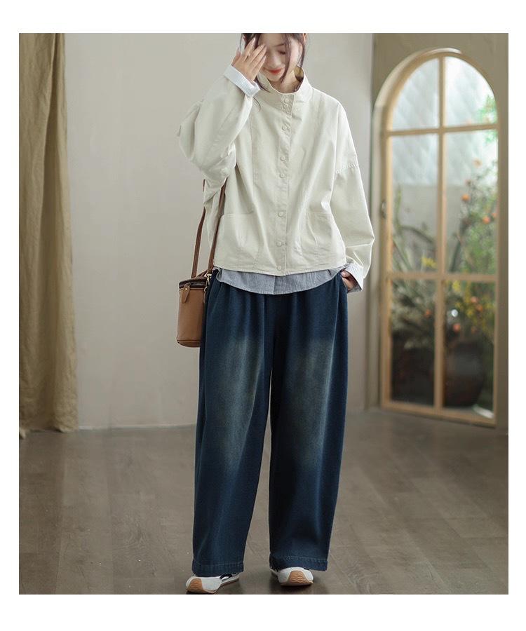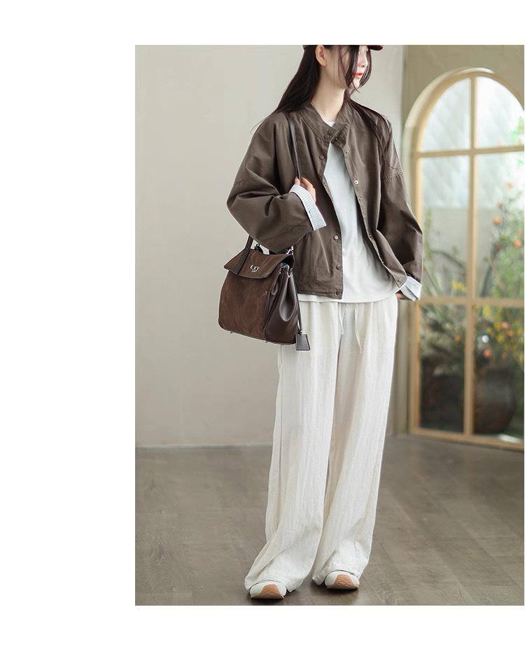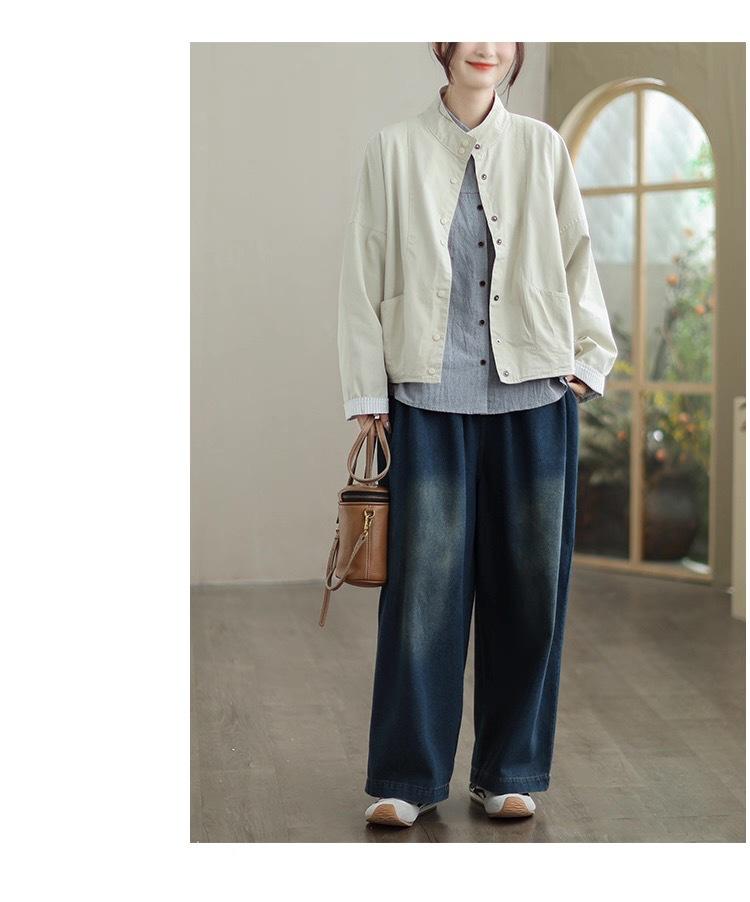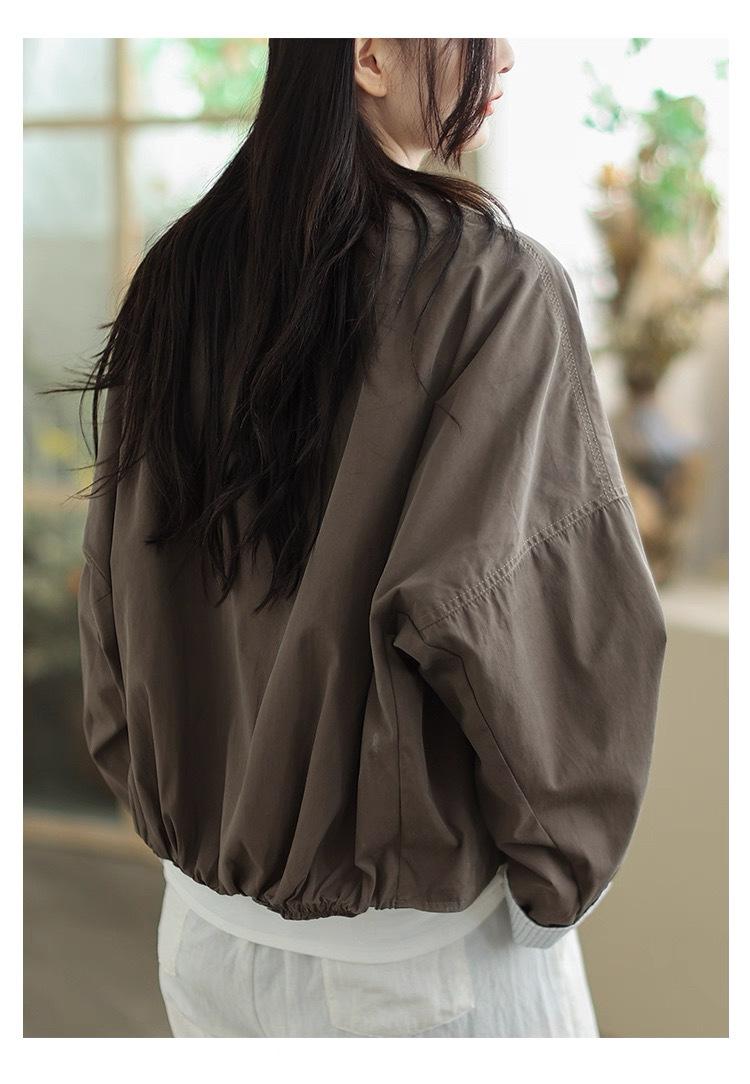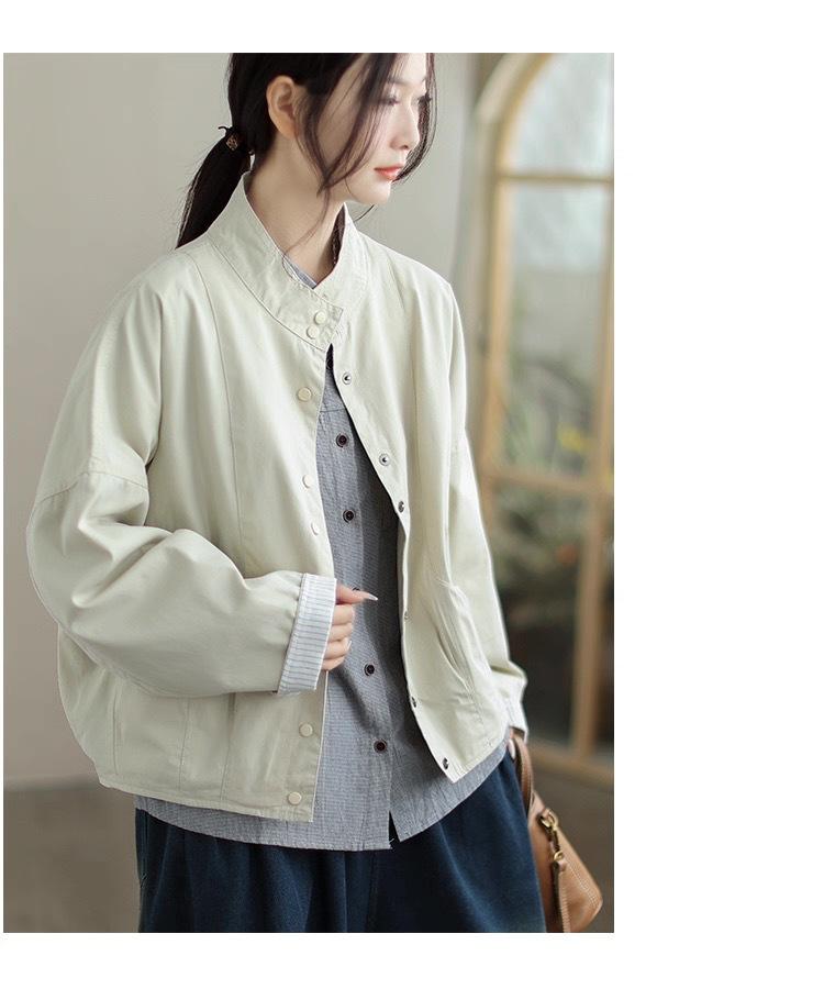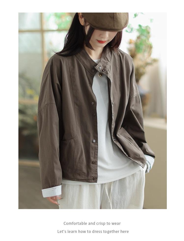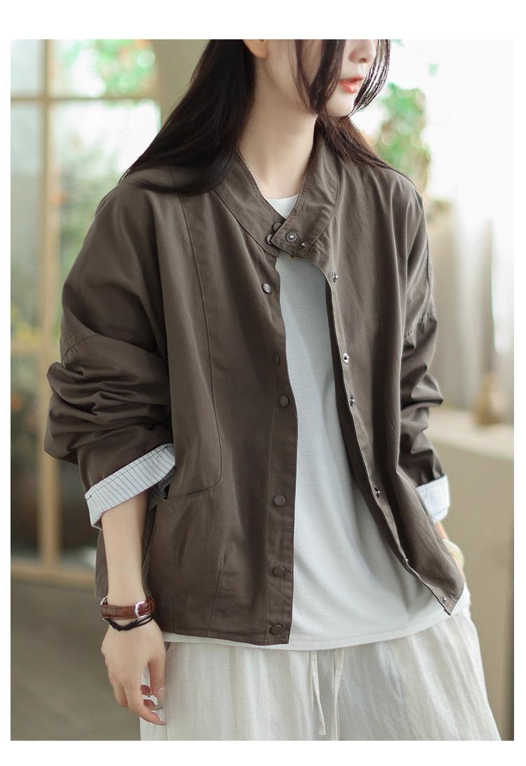 Compra 2025 Puños Empalmados Chaqueta Abrigo Rayado Principios de Otoño Nueva Casual Chaqueta Corta Cuello Alto Camisa Temperamento Mujer al por mayor en Joom.pro