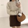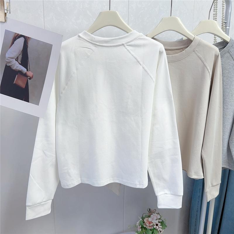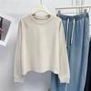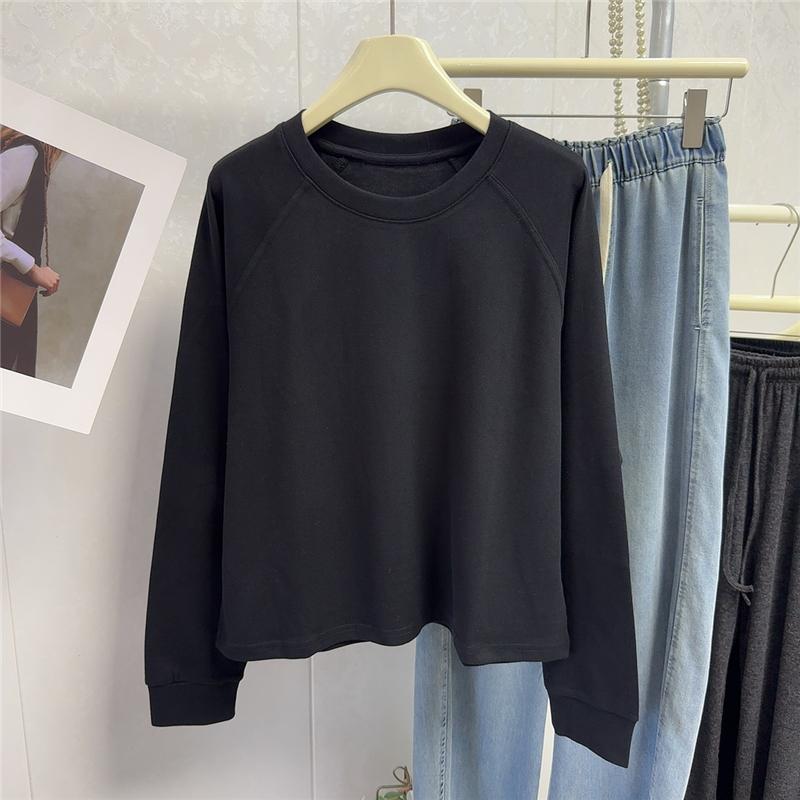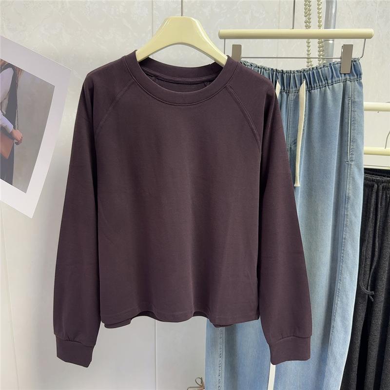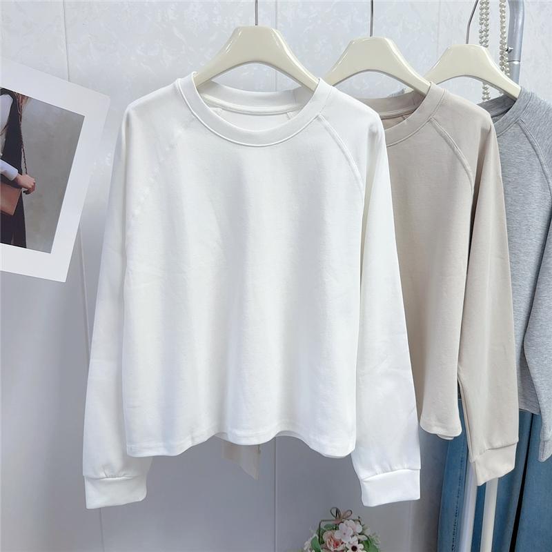 Sudadera Corta de Punto de Manga Raglán de Color Sólido con Cuello Redondo para Mujer Otoño Nuevo Costuras Manga Larga Casual Holgada Versátil Top
