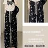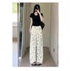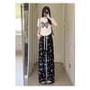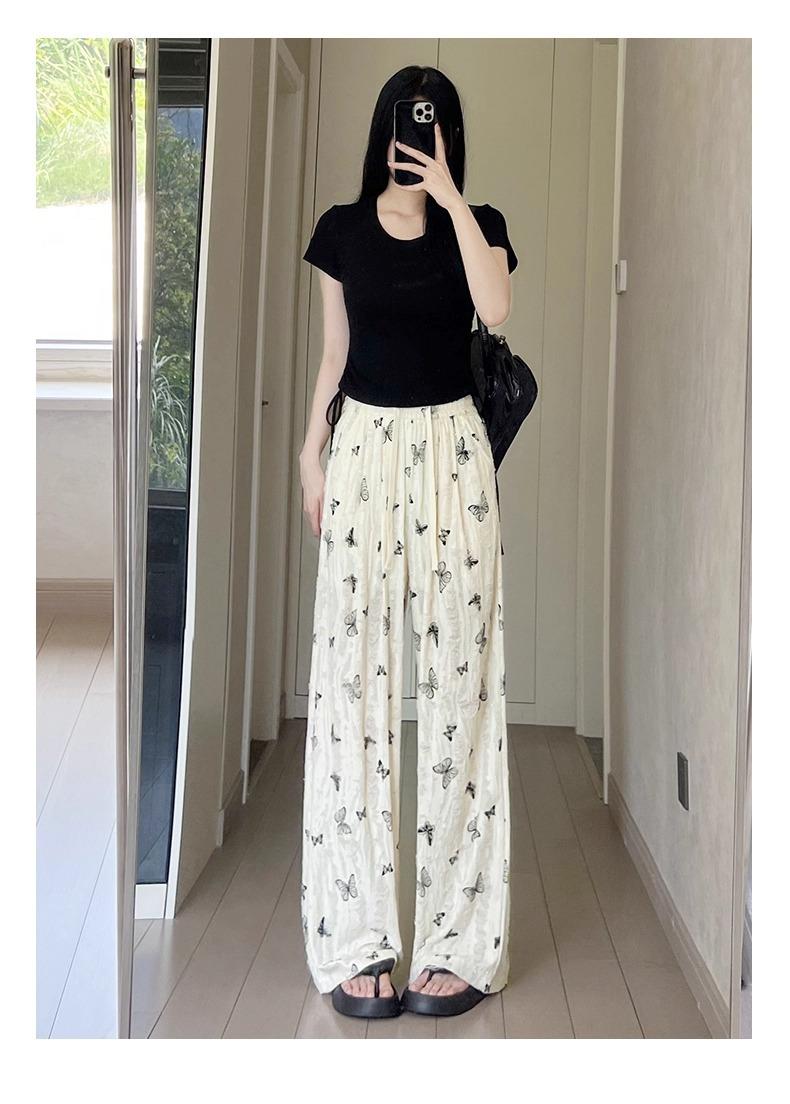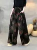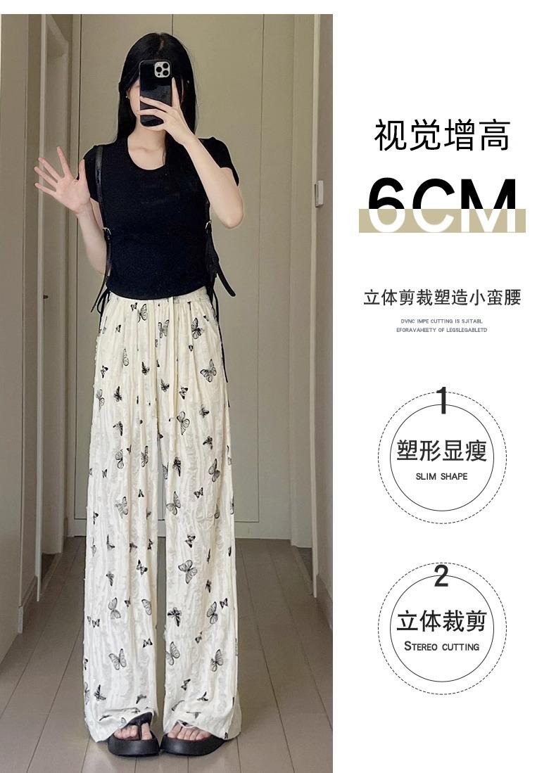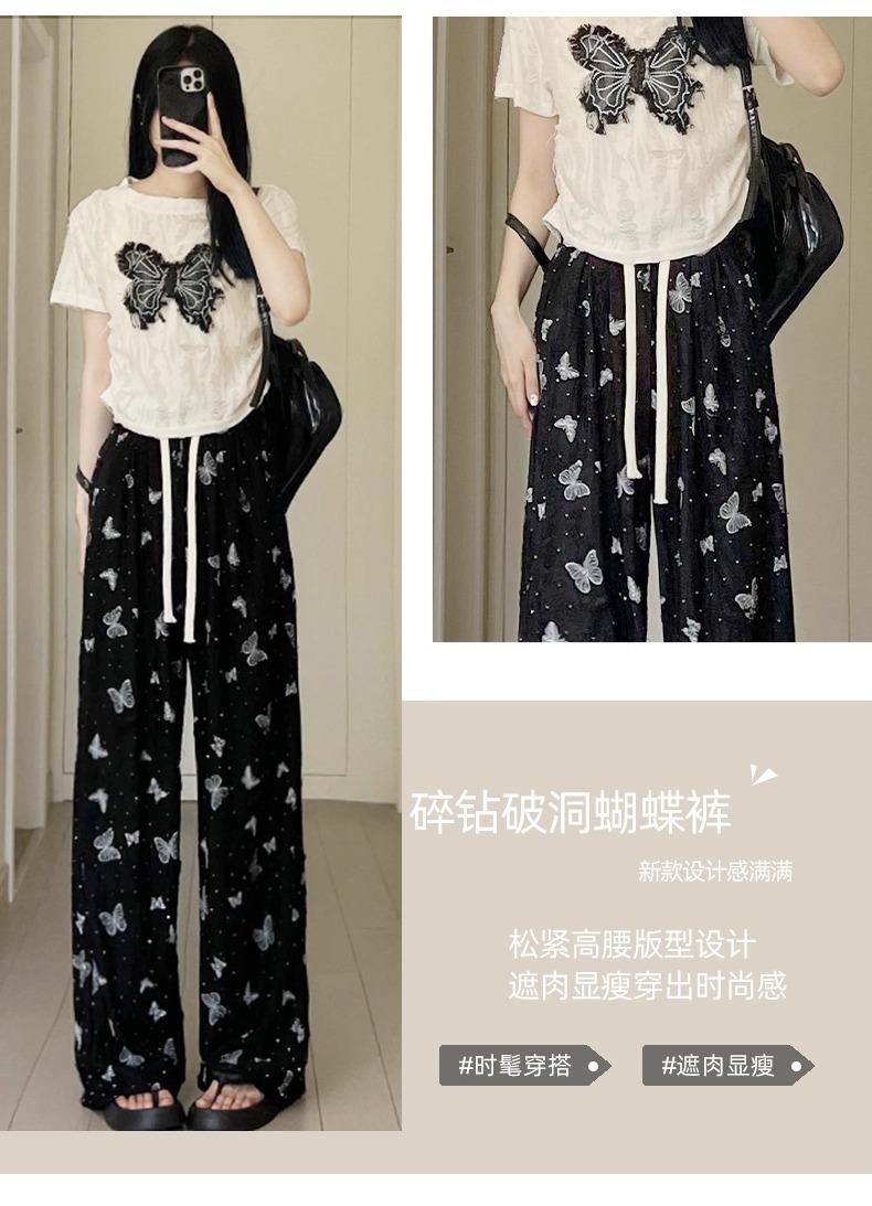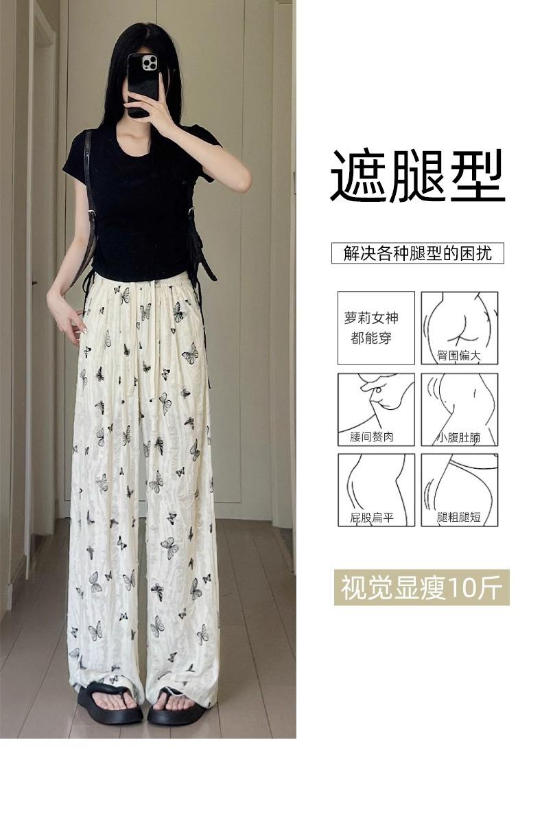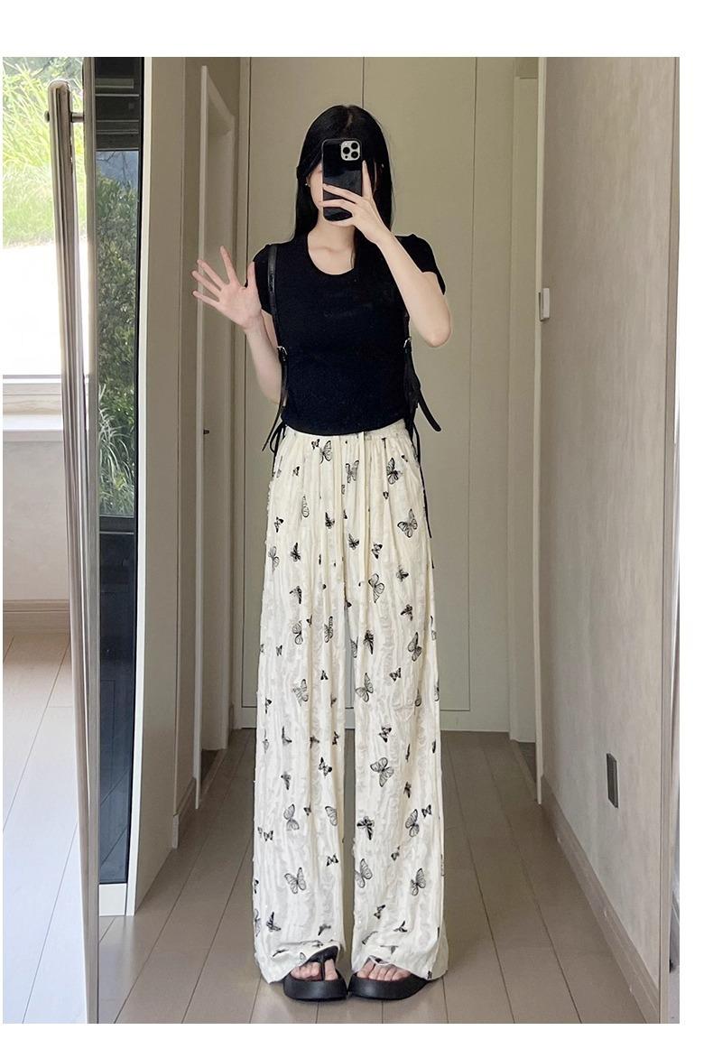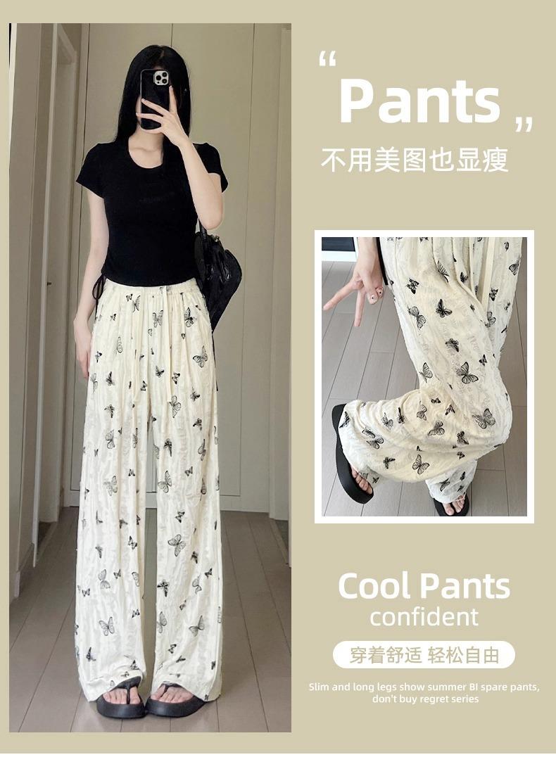 Pantalones anchos rasgados con estampado de mariposas de talla grande 300 jin grasa mm para mujer verano delgados sueltos de pierna recta casuales de seda helada