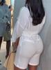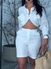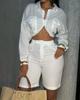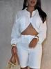 Ropa de Mujer Transfronteriza Europea y Americana 2025 Camisa Cómoda Casual Suelta de Manga Larga a la Cintura Shorts de Cintura Alta Traje de Color Sólido