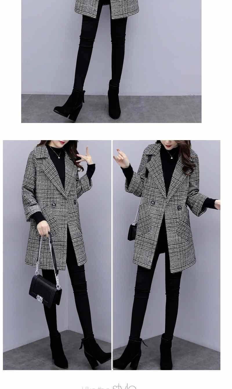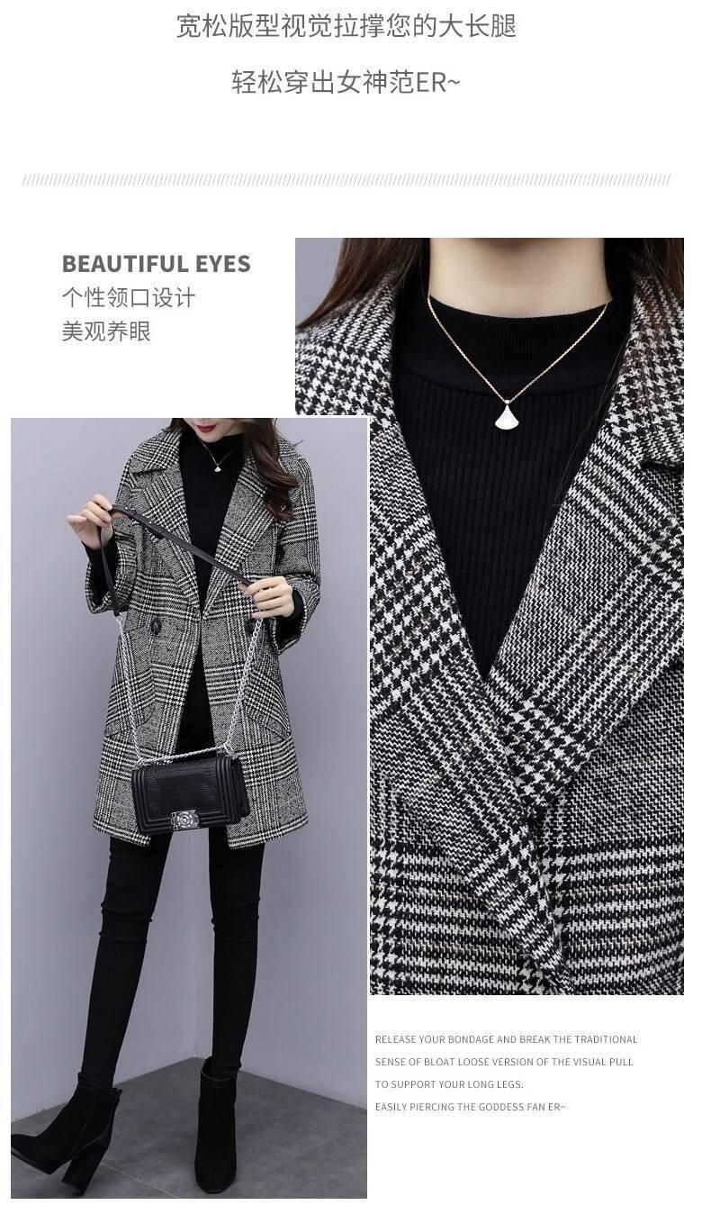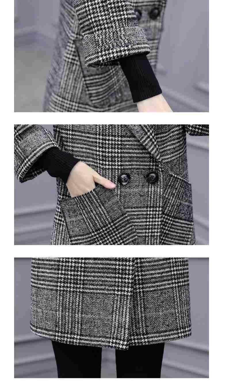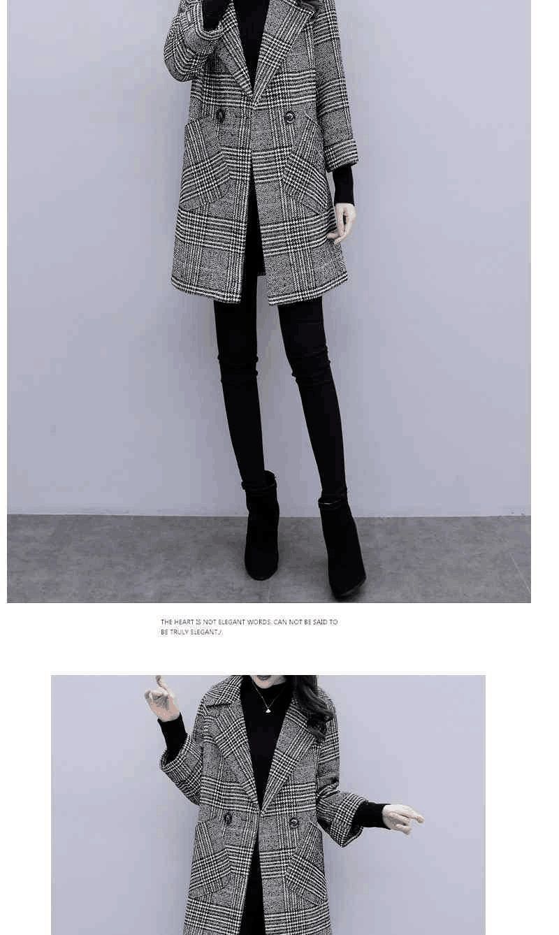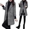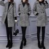 Abrigo de tweed a cuadros para mujer, largo medio, holgado, adelgazante, otoño e invierno 2025, nuevo abrigo de lana de temperamento de moda
