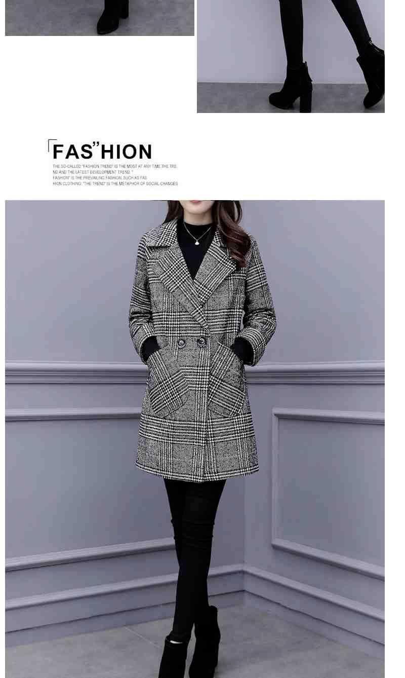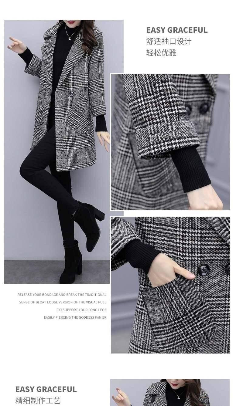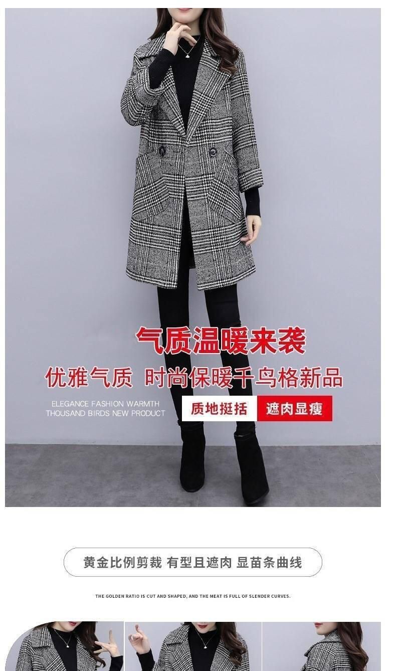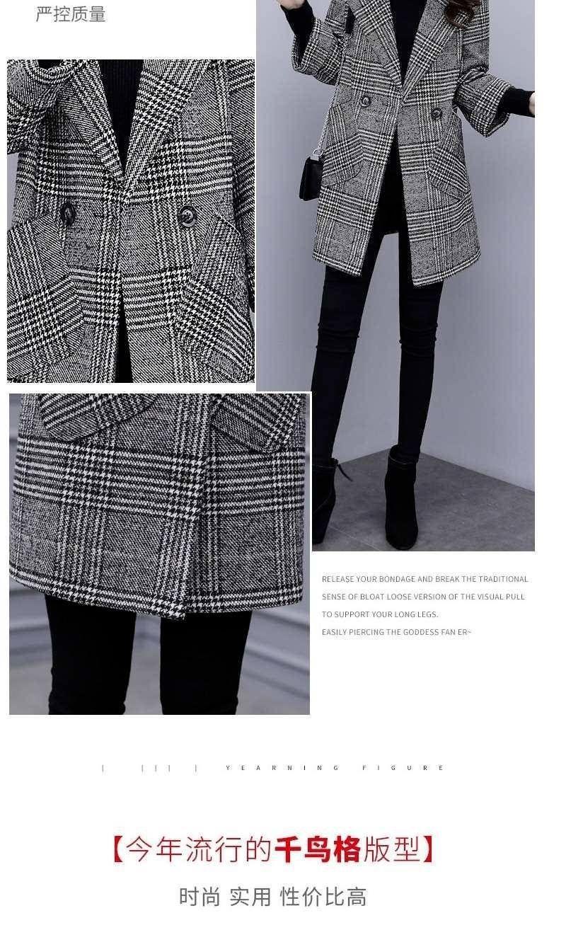 Abrigo de tweed a cuadros para mujer, largo medio, holgado, adelgazante, otoño e invierno 2025, nuevo abrigo de lana de temperamento de moda