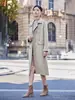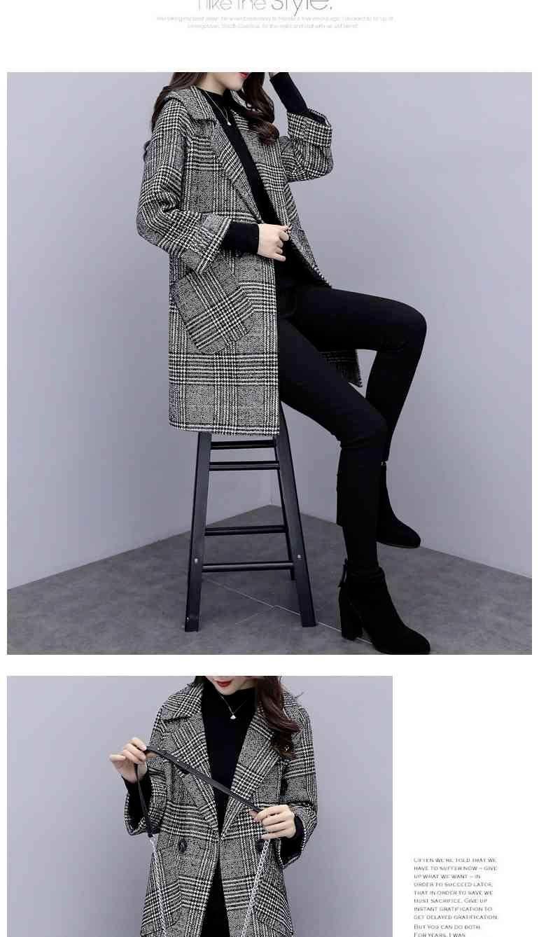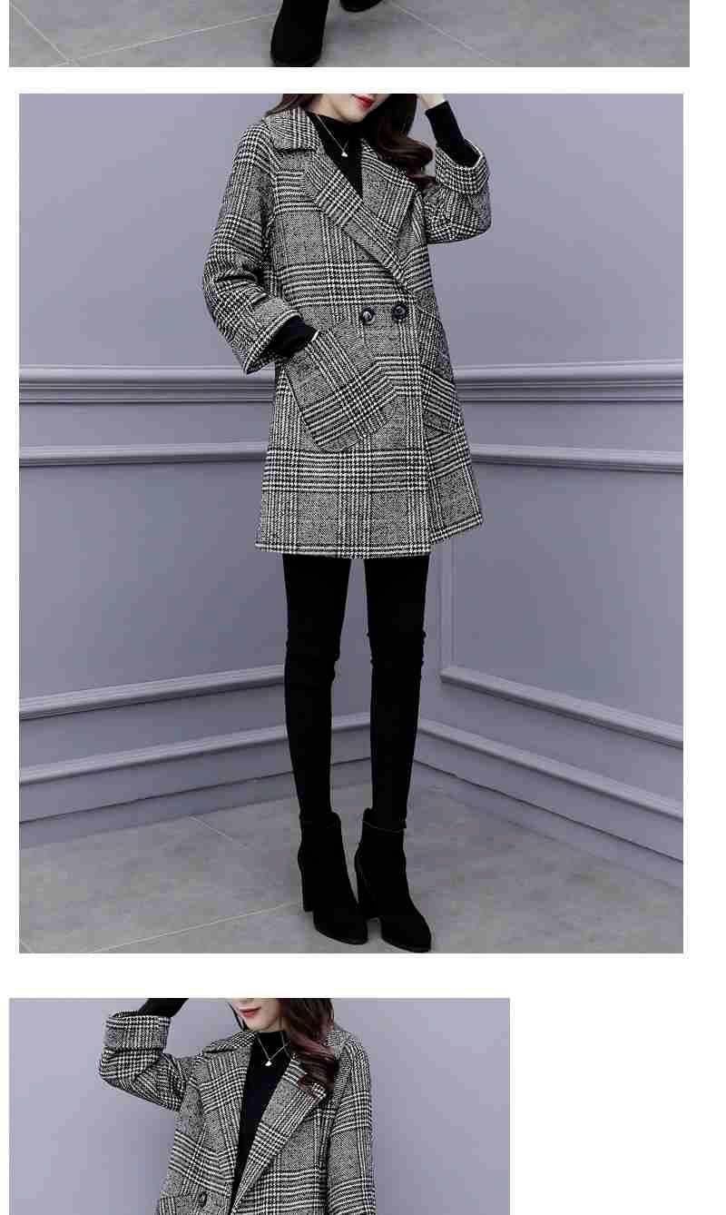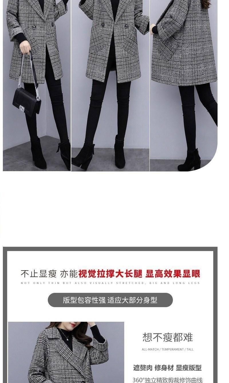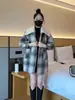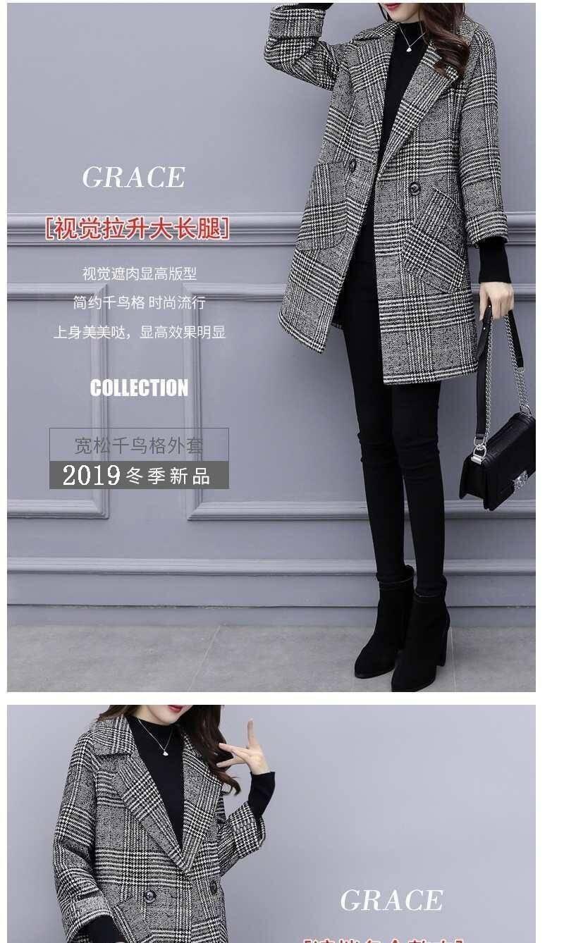 Abrigo de tweed a cuadros para mujer, largo medio, holgado, adelgazante, otoño e invierno 2025, nuevo abrigo de lana de temperamento de moda