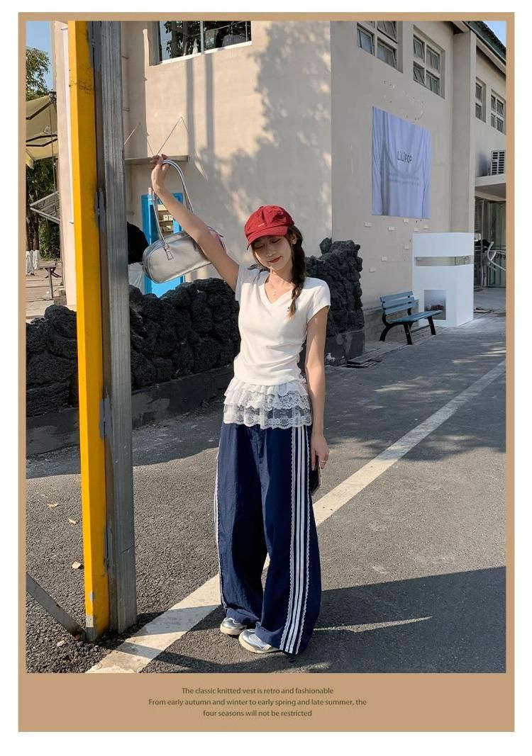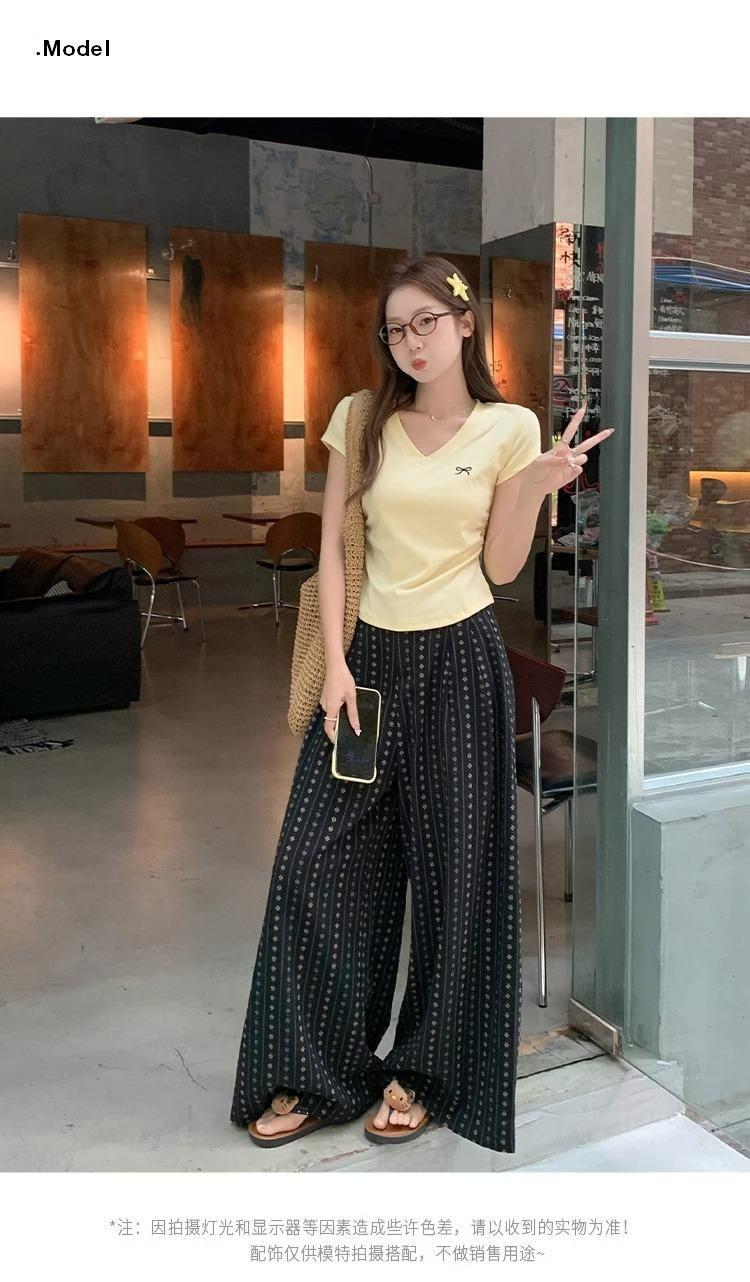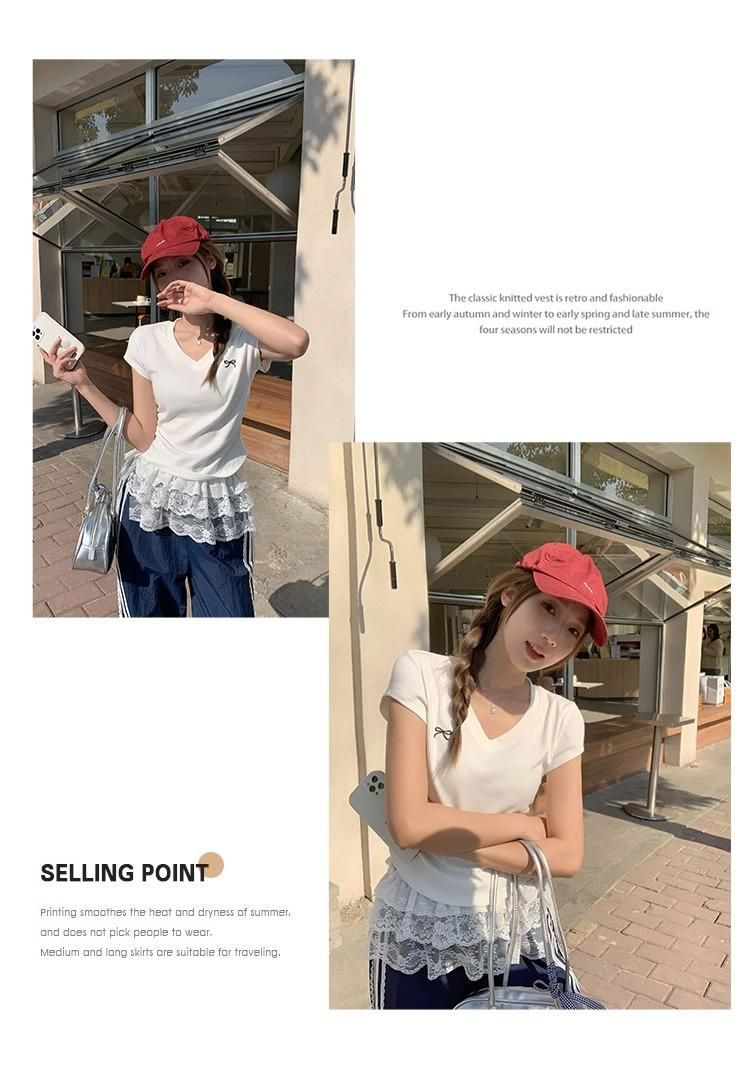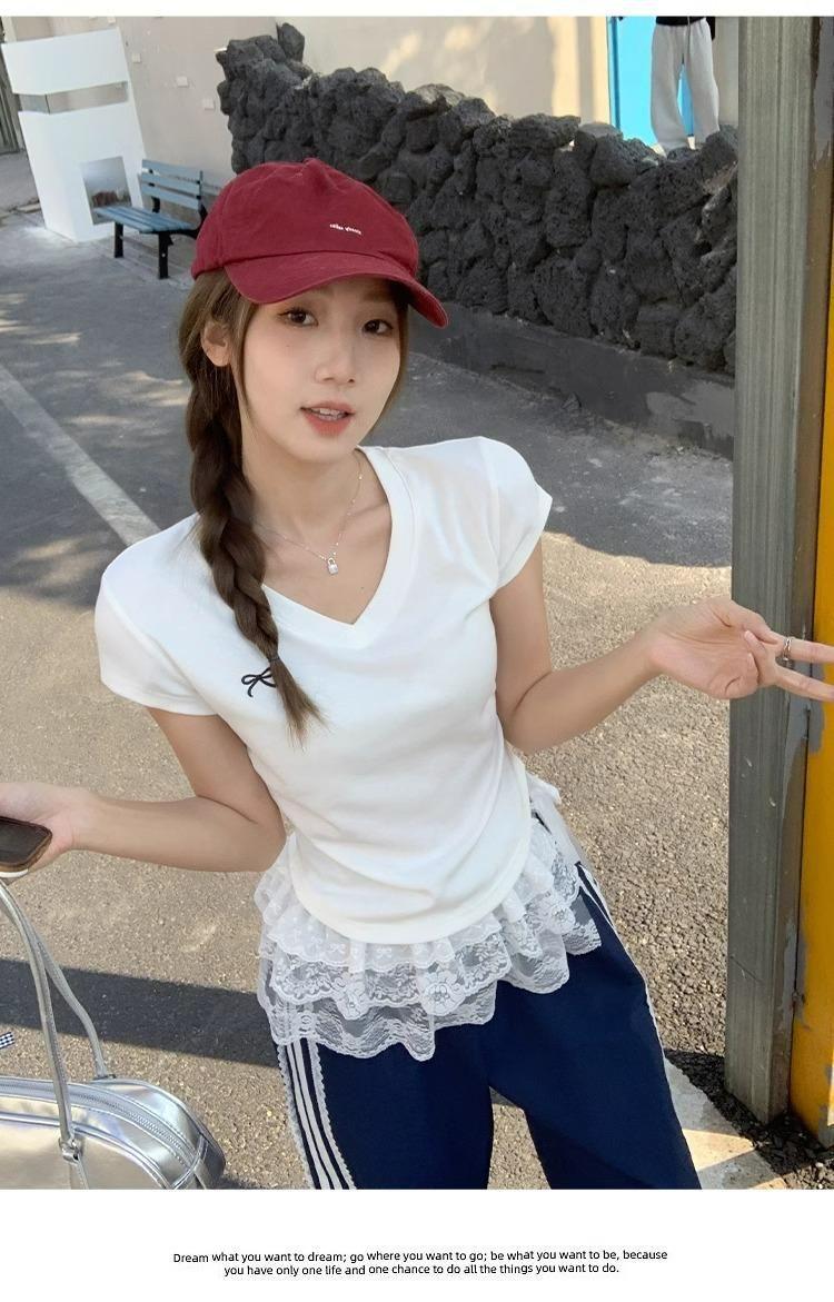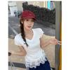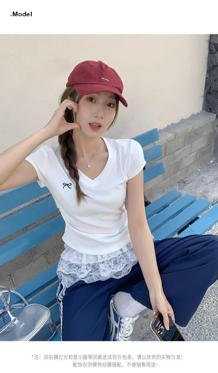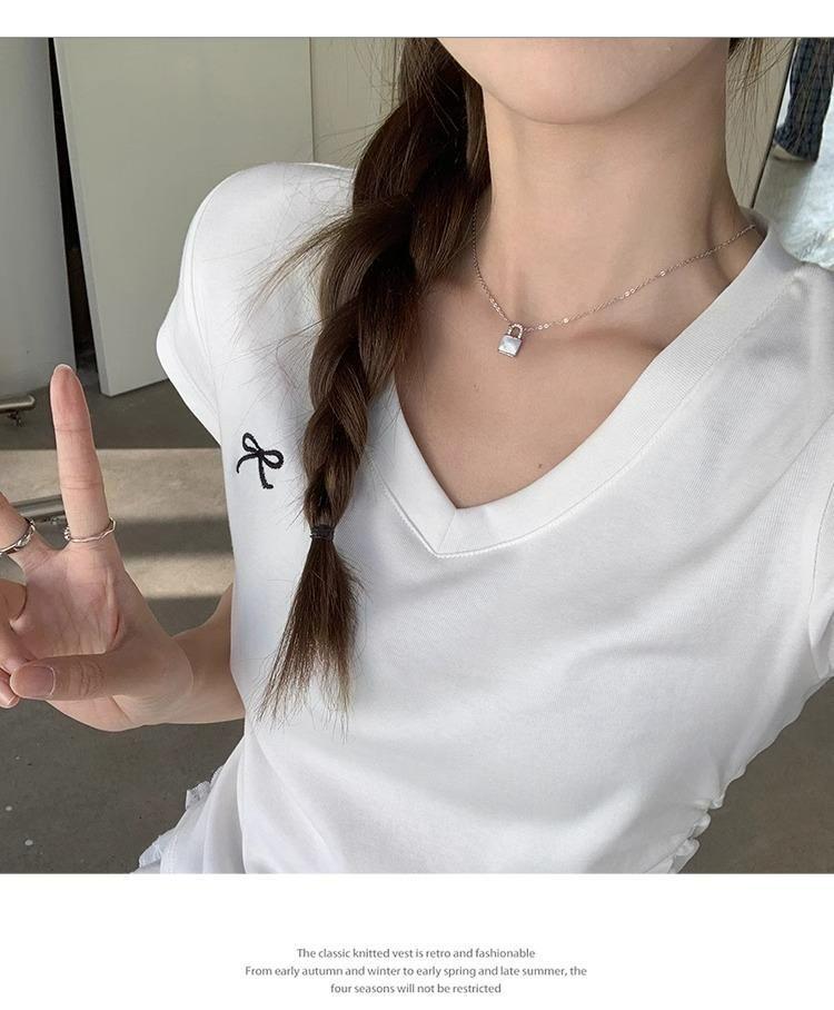 Compra Camiseta de Verano para Mujer con Cuello en V de Hombro Derecho, Manga Corta, Nuevo Estilo, Diseño de Cintura Plisada, Slim, Sexy, Corta, Top Bordado para Mujer al por mayor en Joom.pro