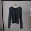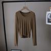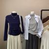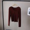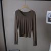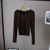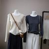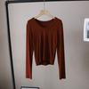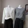 [Bi Zheng] Otoño/Invierno 2025 Nueva Ropa de Mujer Estilo Coreano Simple Cepillado Versátil Adelgazante Camiseta Interior de Manga Larga 5195