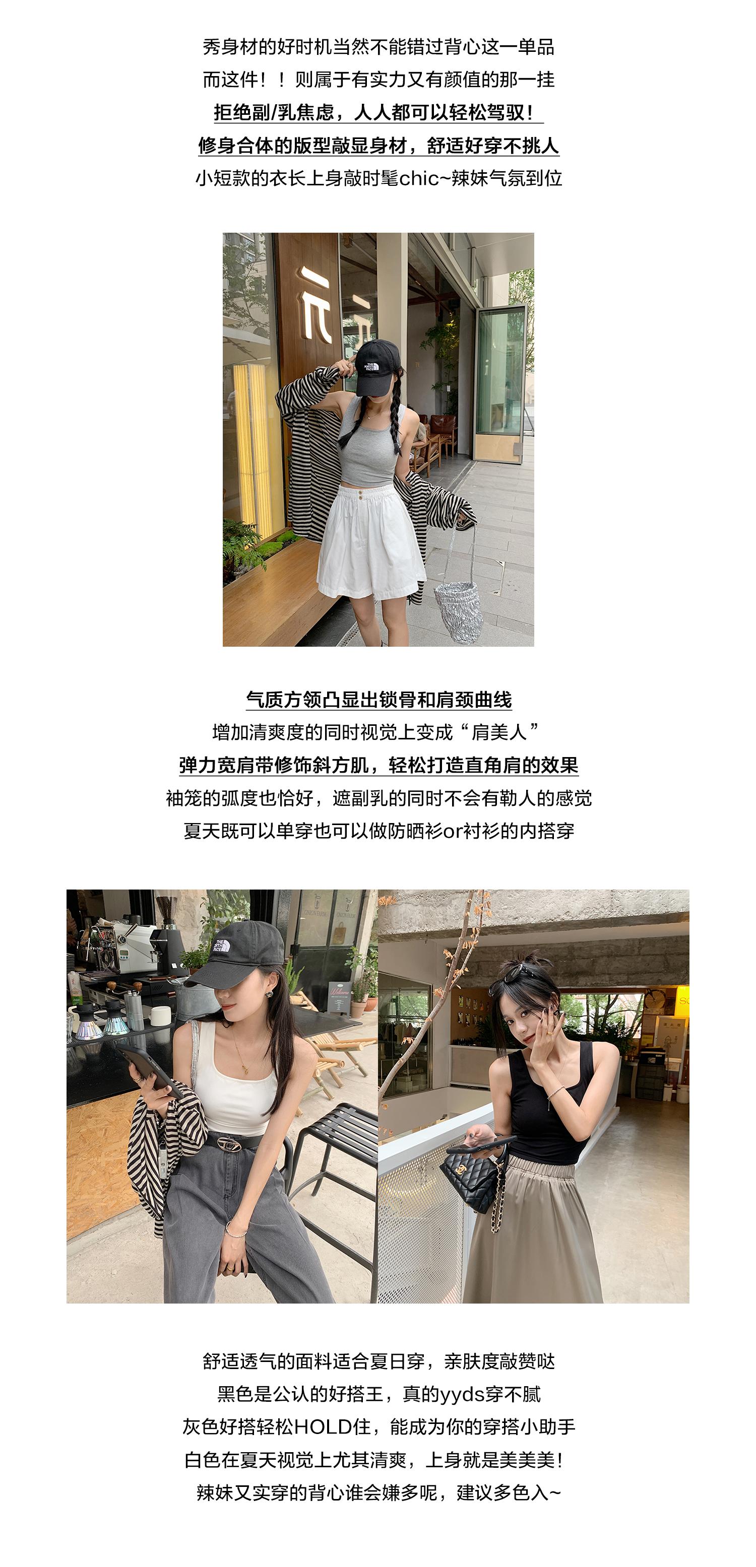 2024 Verano Camisola Pequeña en Forma de I para Mujer Cinturón Almohadilla para el Pecho Ropa Interior Ropa Exterior Corta Sin Mangas Chica Picante Top Base