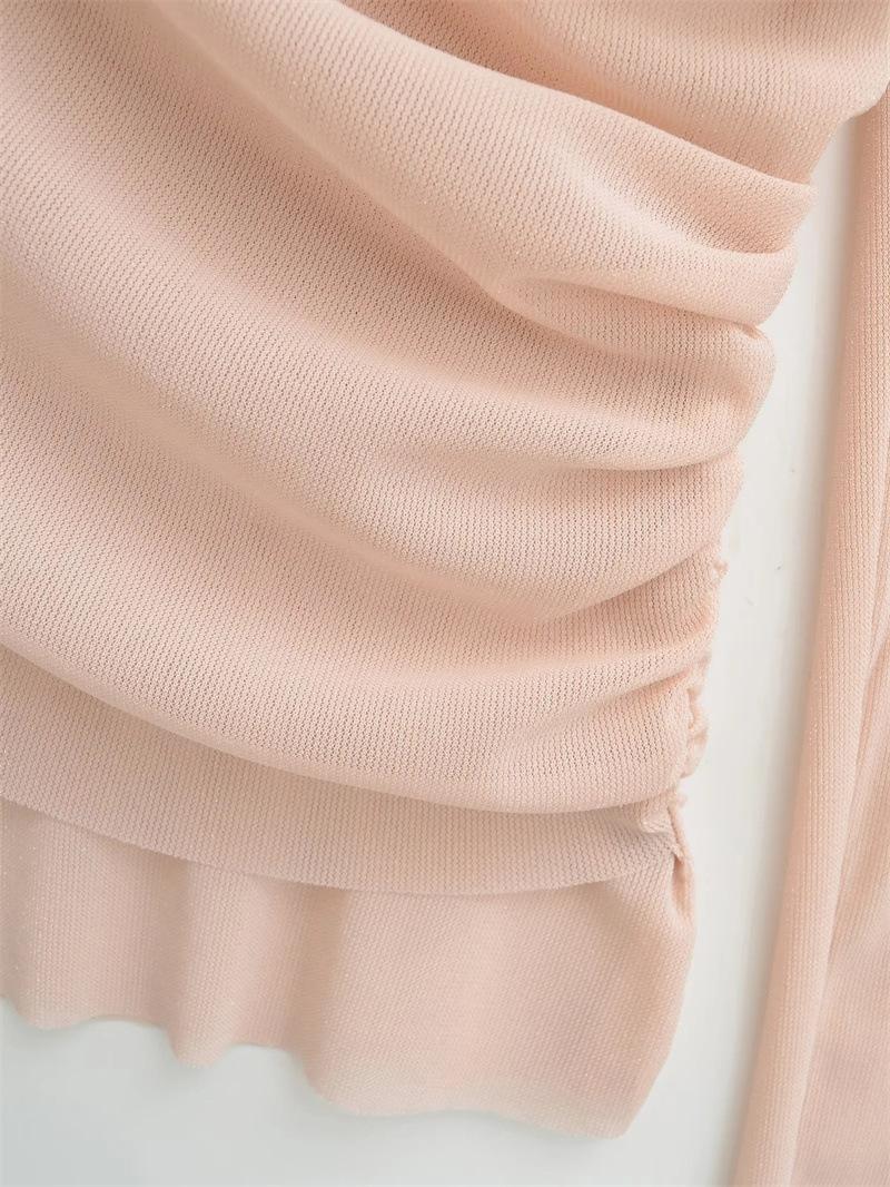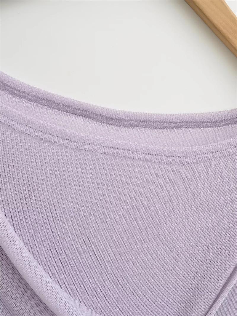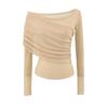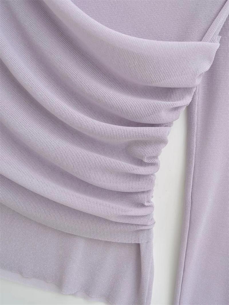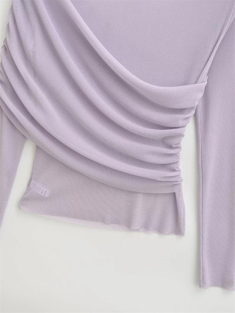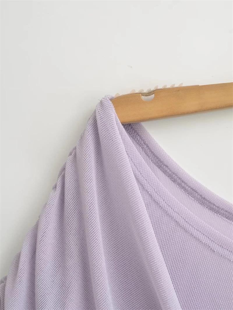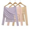 Playera de malla pura y sexy de un hombro y manga larga, nueva de otoño, estilo extranjero, corte ajustado, plisada, corta, top de chica caliente para mujer