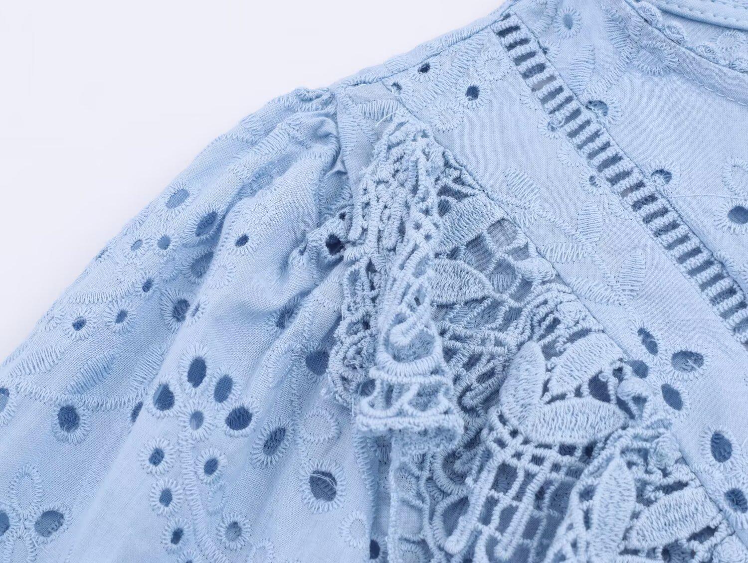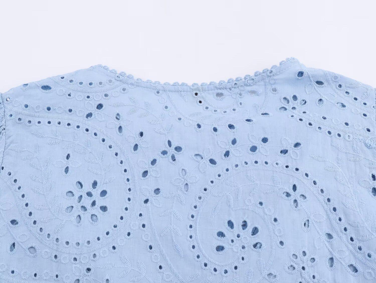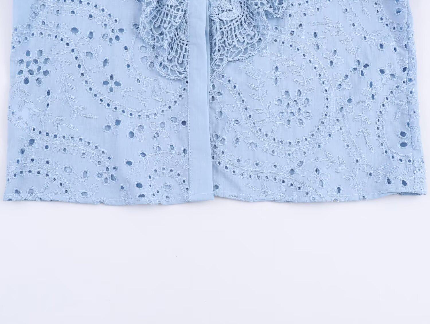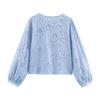 Ropa de mujer transfronteriza 2025 otoño nueva moda temperamento versátil cuello redondo manga larga camisa bordada calada 8741231