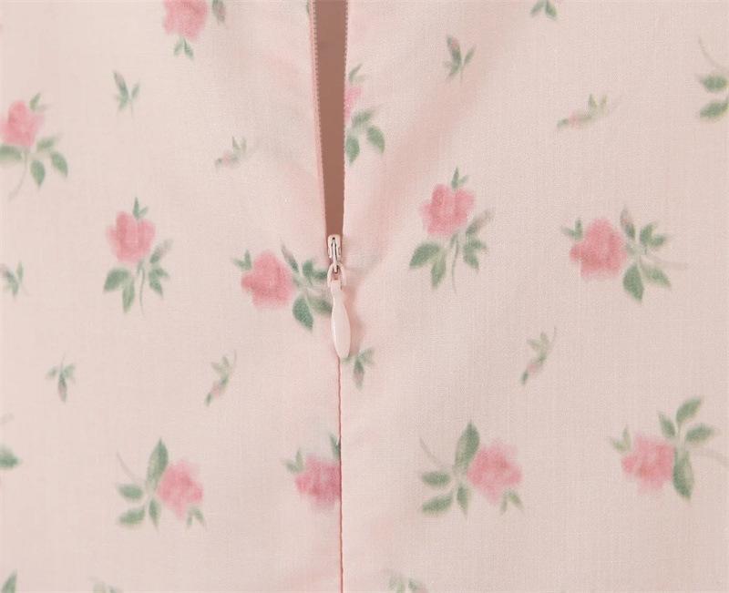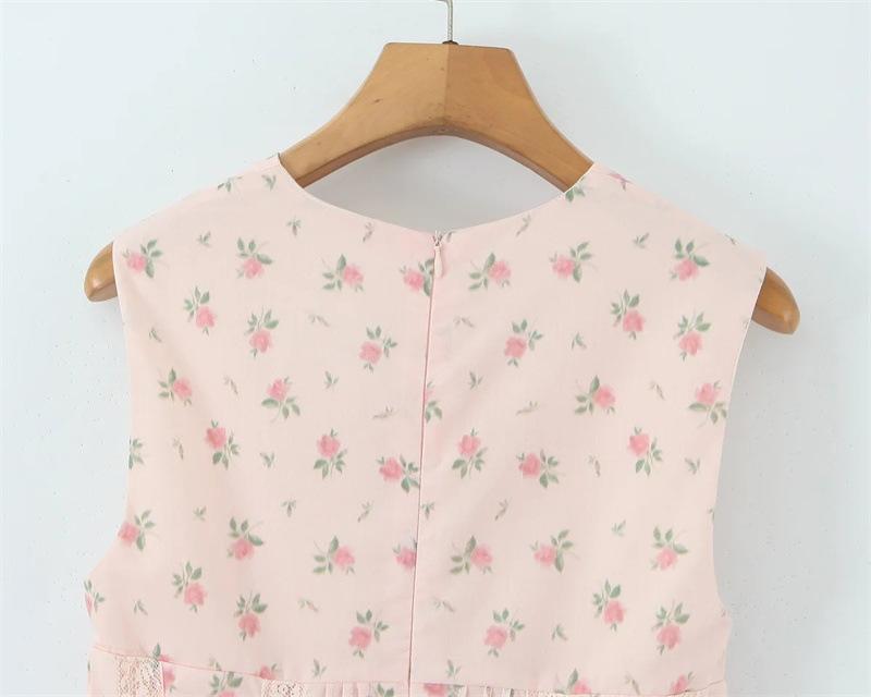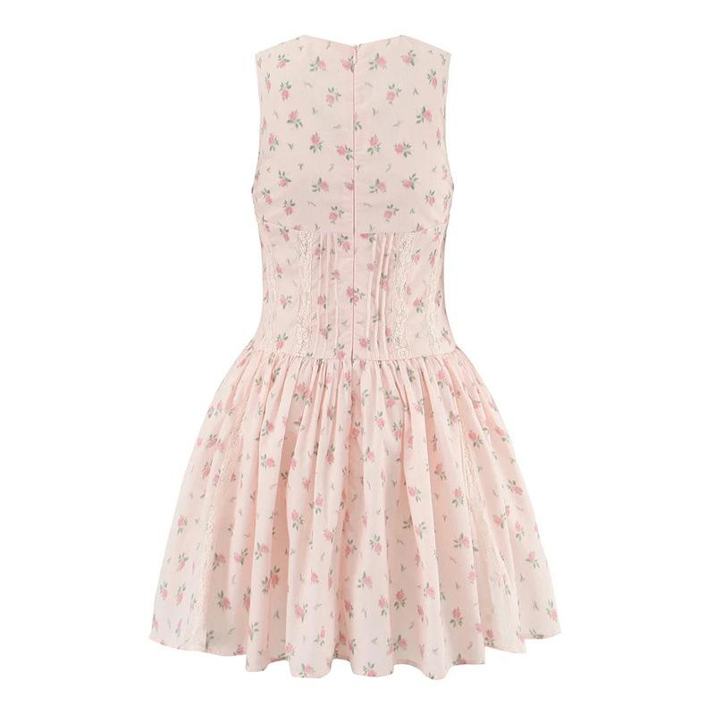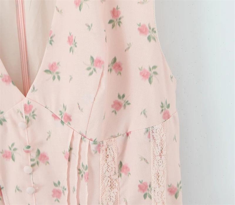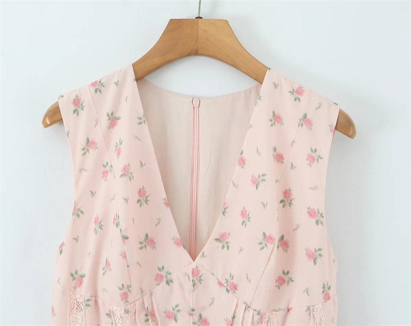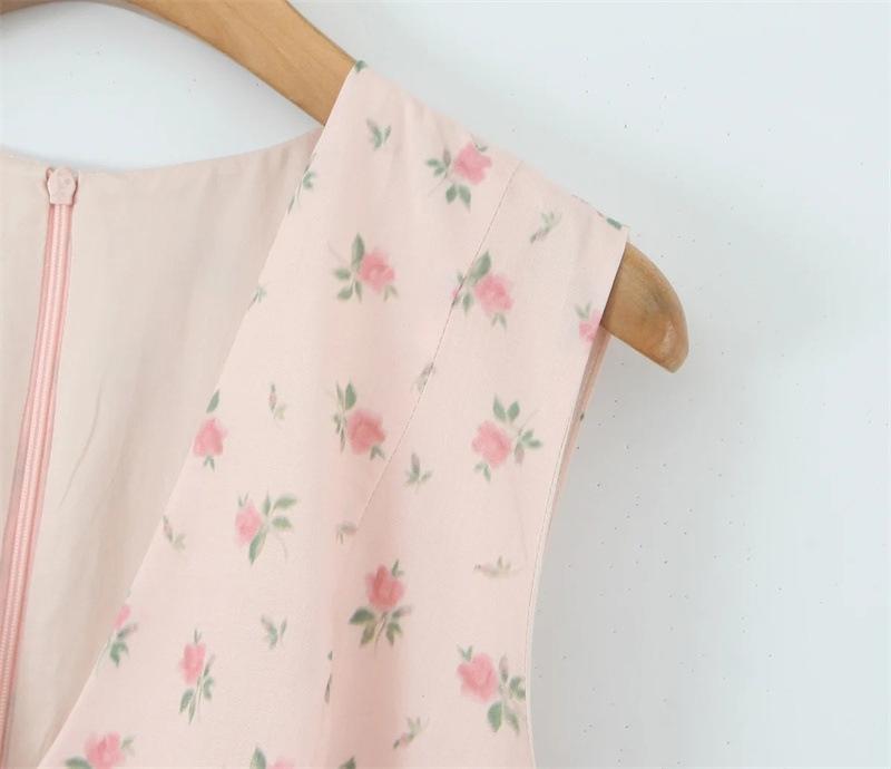Vestido Francés Dulce Floral Sexy Cuello en V Sin Mangas Verano Nuevo Aspecto Adelgazante de Cintura Falda Tutú Minifalda