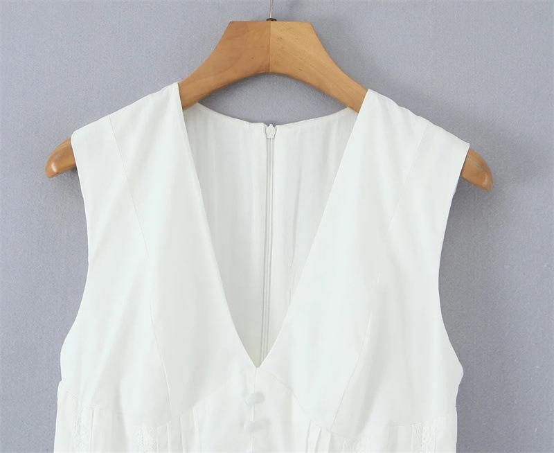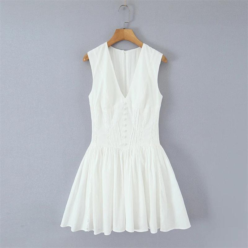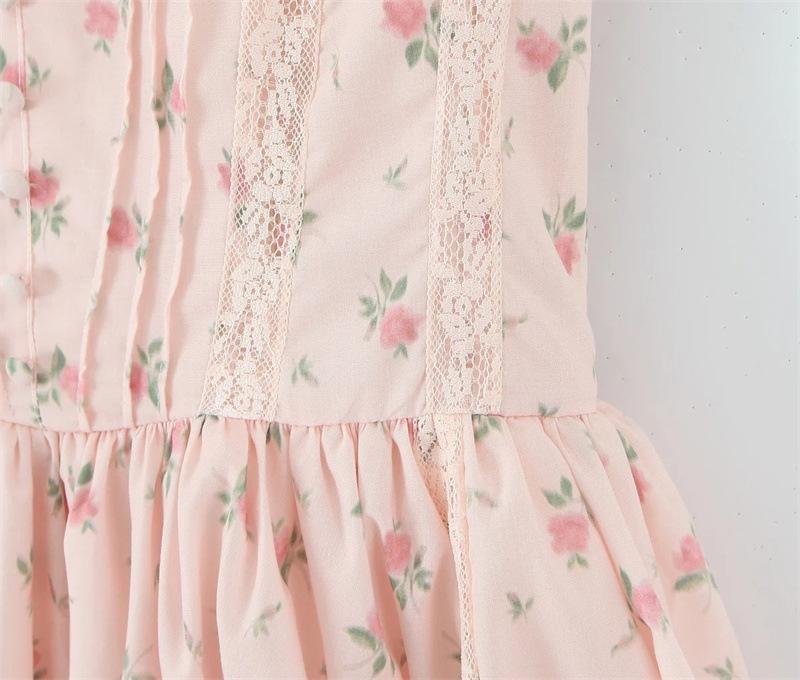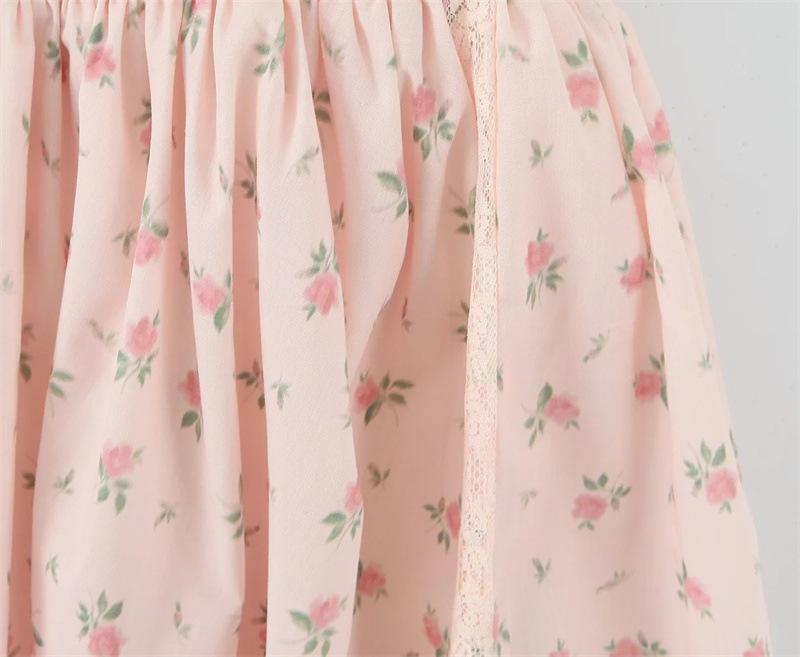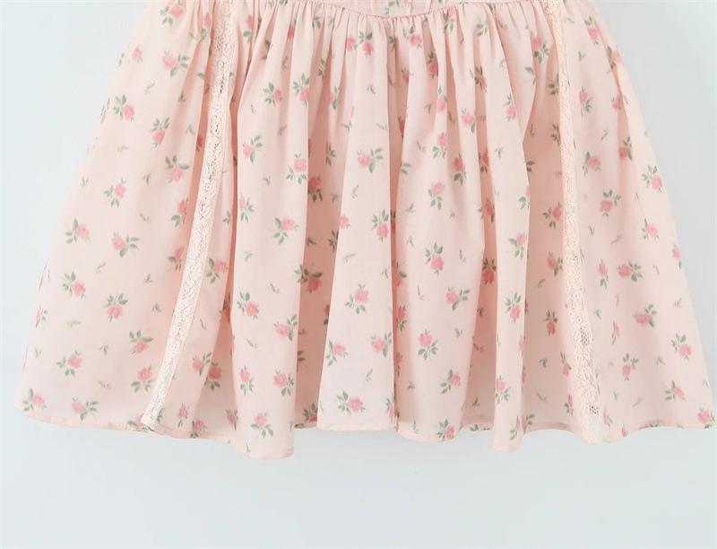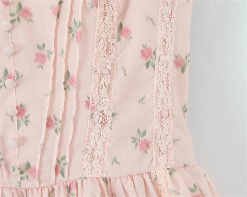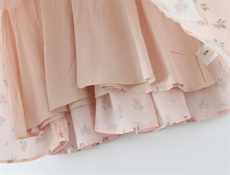 Vestido Francés Dulce Floral Sexy Cuello en V Sin Mangas Verano Nuevo Aspecto Adelgazante de Cintura Falda Tutú Minifalda
