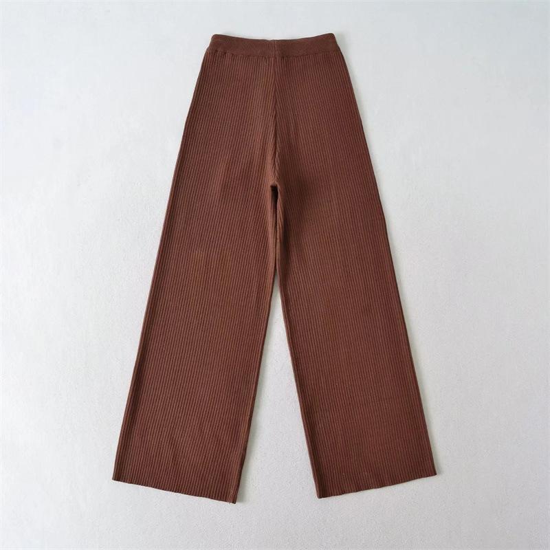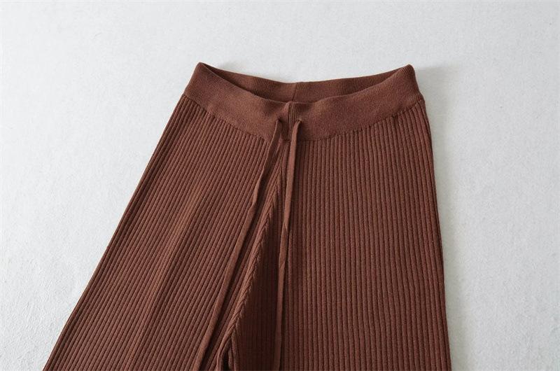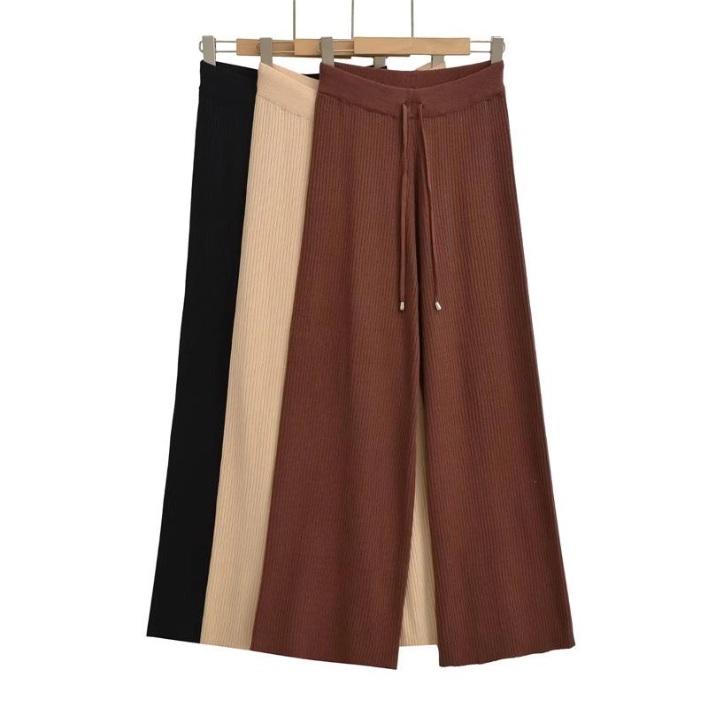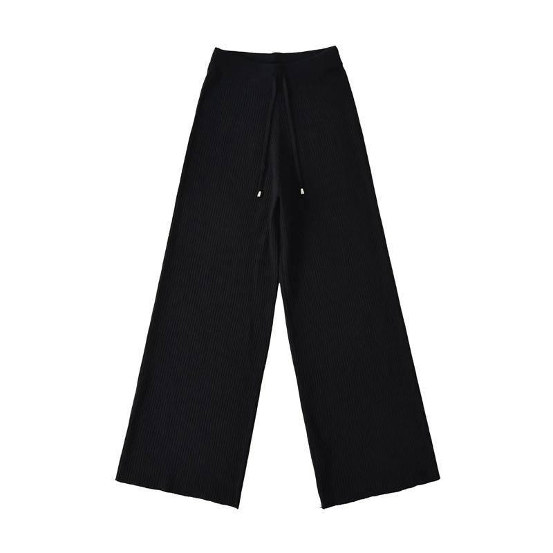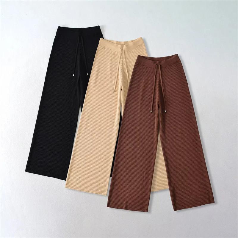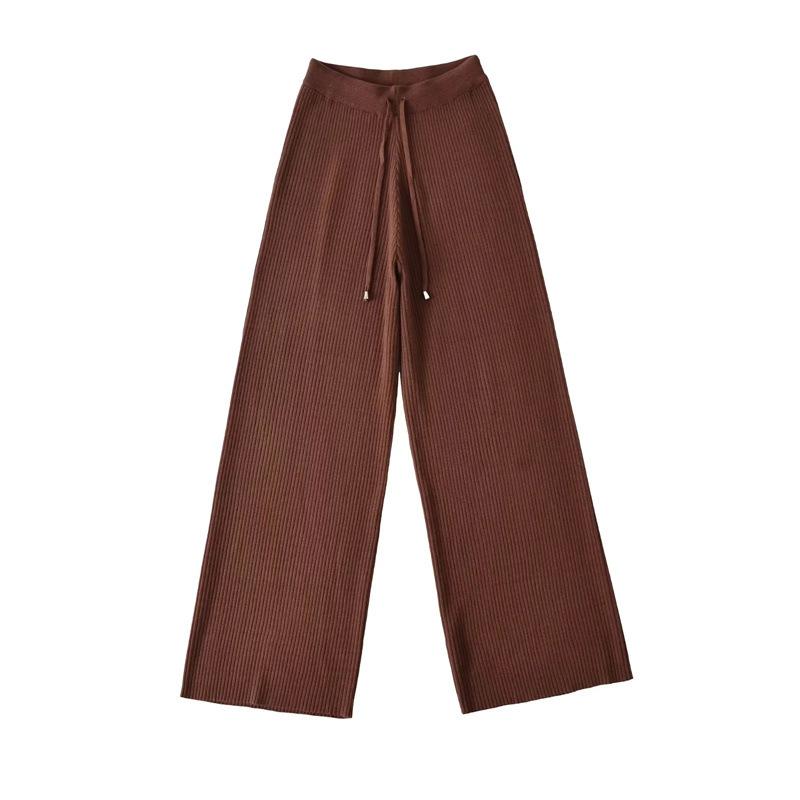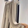 Pantalones de Punto Drapeados con Cordón en la Cintura Elástica Otoño Nueva Moda Versátil Holgados Adelgazantes Color Sólido Pierna Ancha Pantalones Largos