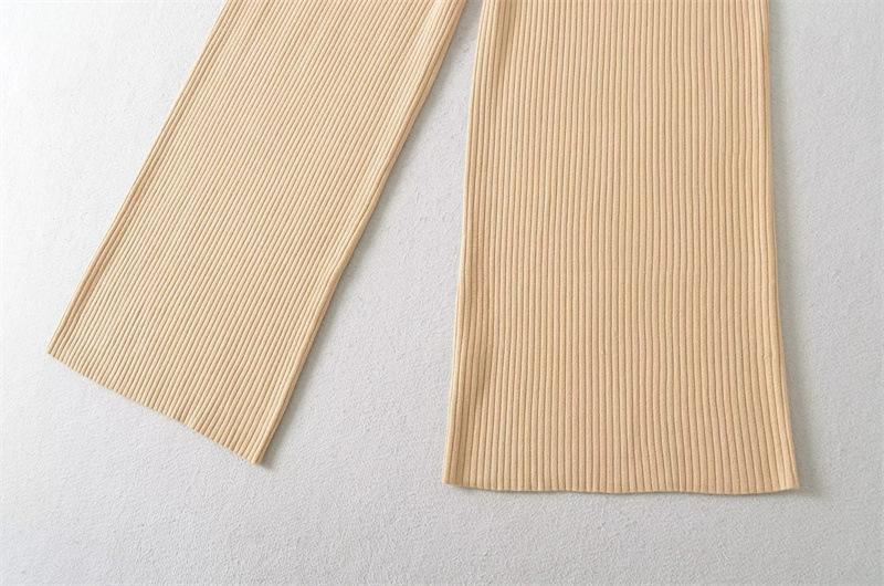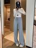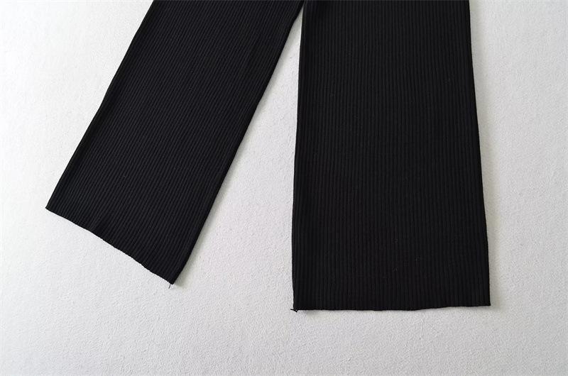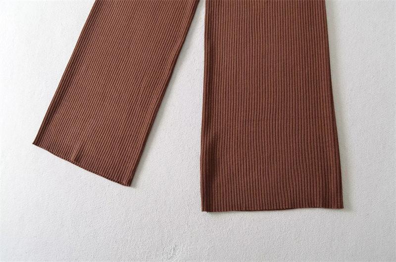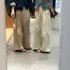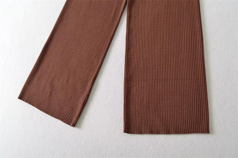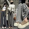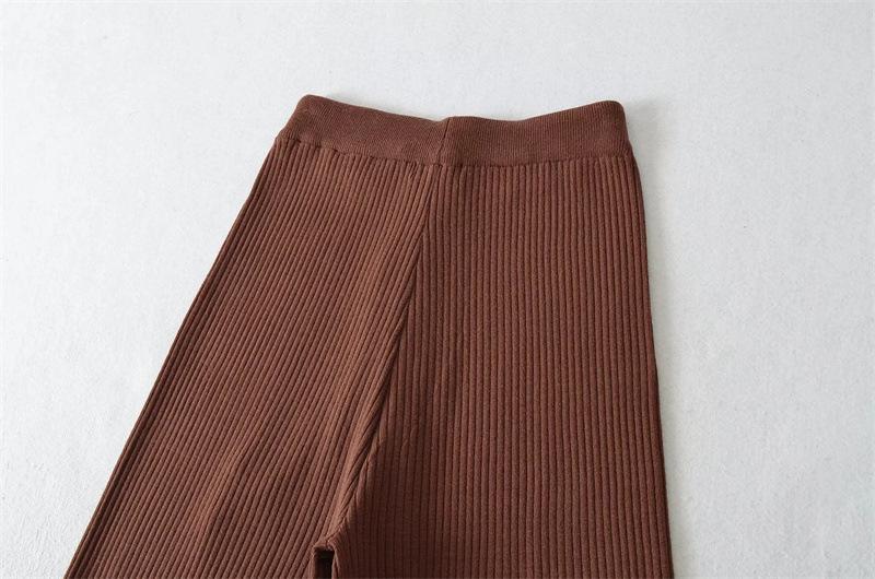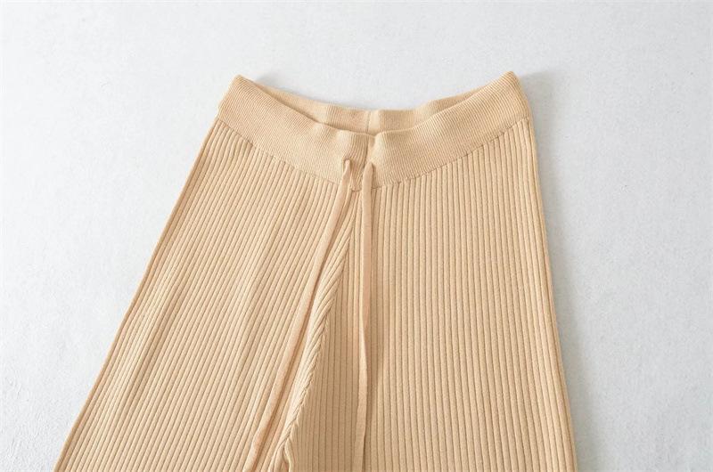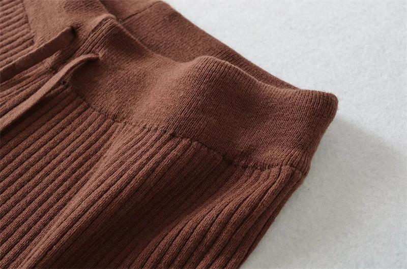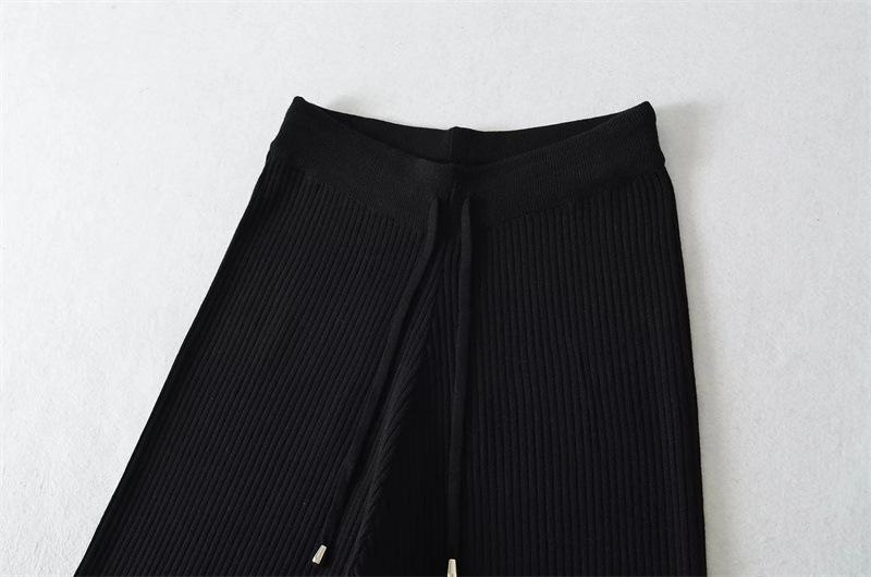 Pantalones de Punto Drapeados con Cordón en la Cintura Elástica Otoño Nueva Moda Versátil Holgados Adelgazantes Color Sólido Pierna Ancha Pantalones Largos