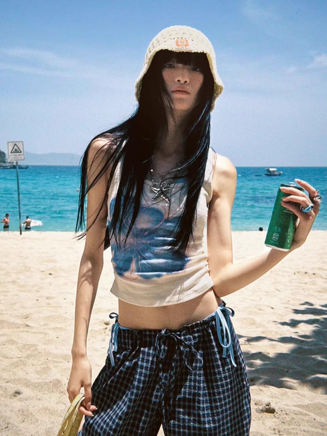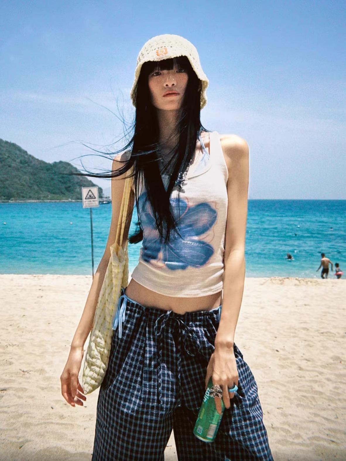Compra Verano 2025 Cuello U Estilo Chica Hot Chaleco para Mujer Slim Americano Retro Estampado Floral Top de Fondo Tirantes en I al por mayor en Joom.pro