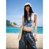 Verano 2025 Cuello U Estilo Chica Hot Chaleco para Mujer Slim Americano Retro Estampado Floral Top de Fondo Tirantes en I