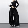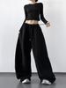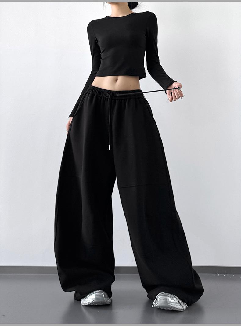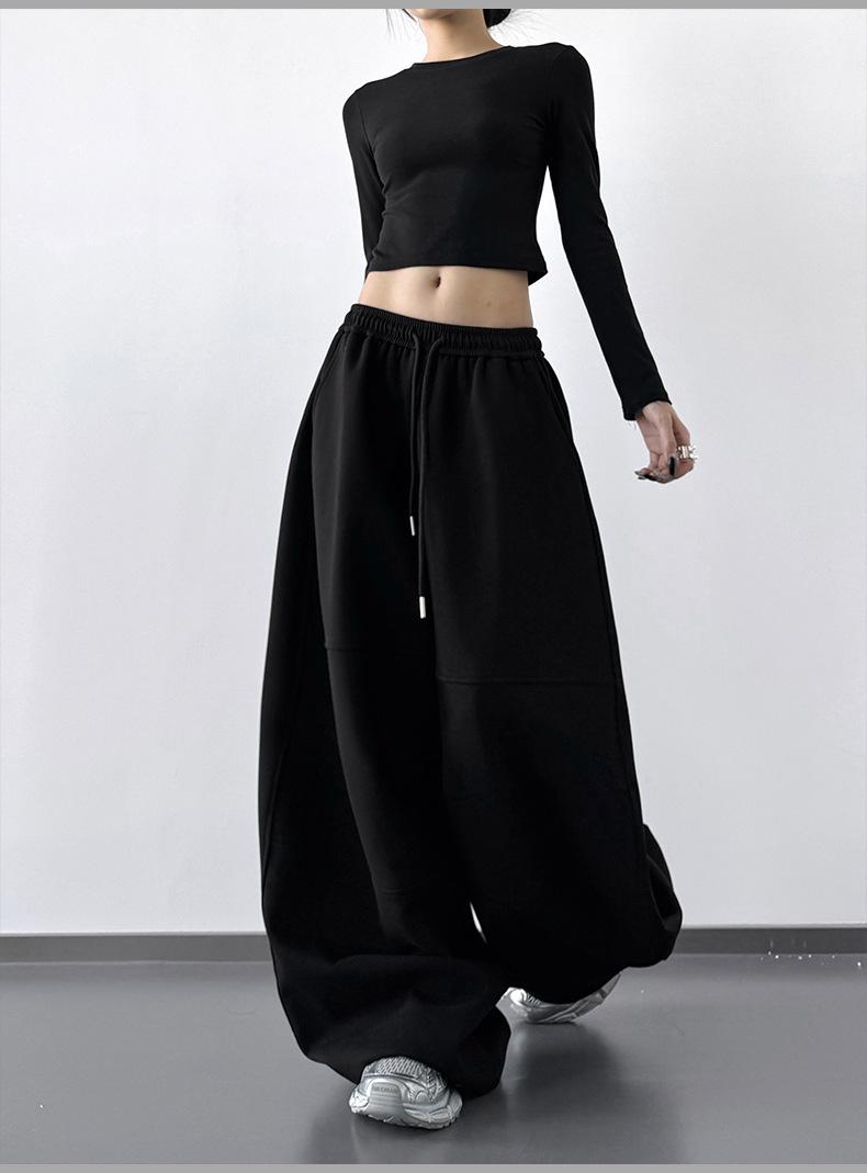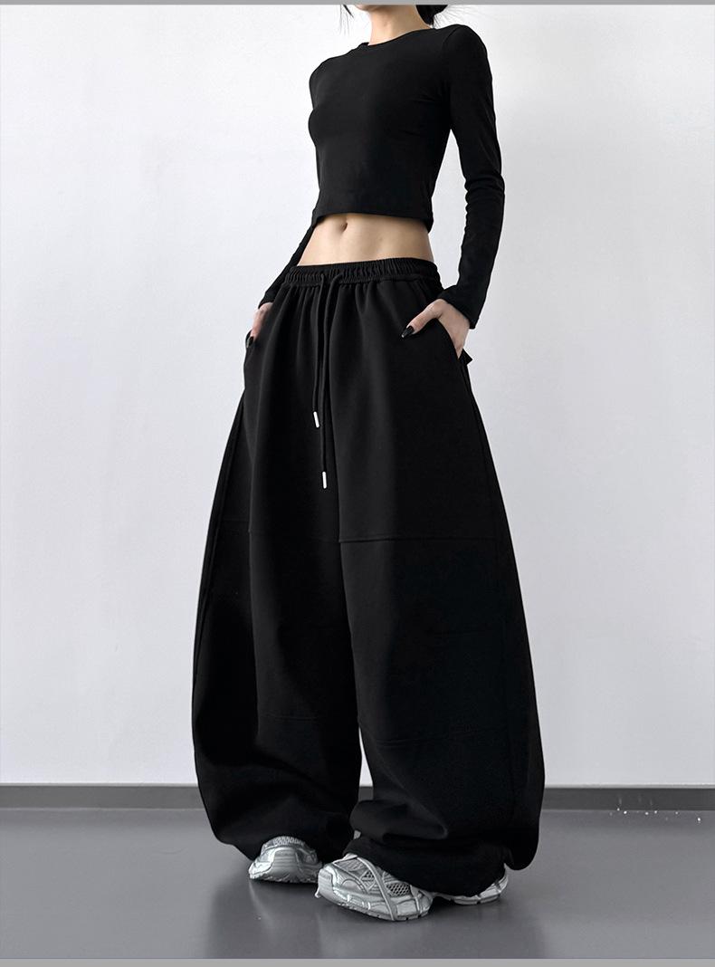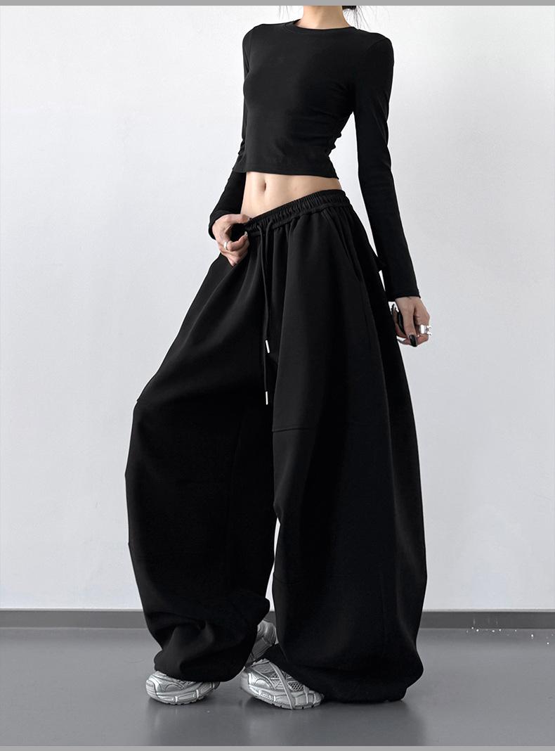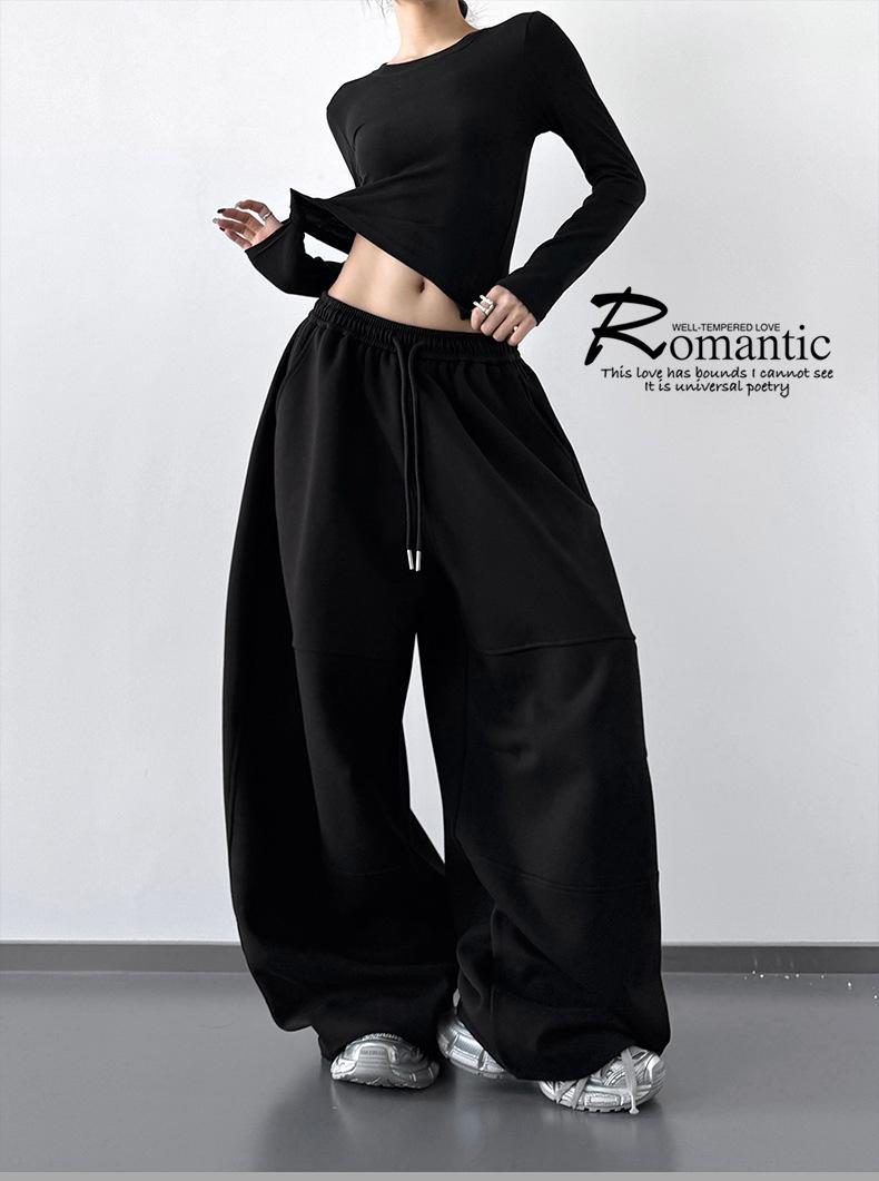 Pantalones Cargo Negros con Cordón y Pierna Ancha Primavera y Otoño 2025 Nuevo Estilo Perezoso Bolsillo Pantalones Deportivos Versátiles Sueltos Adelgazantes