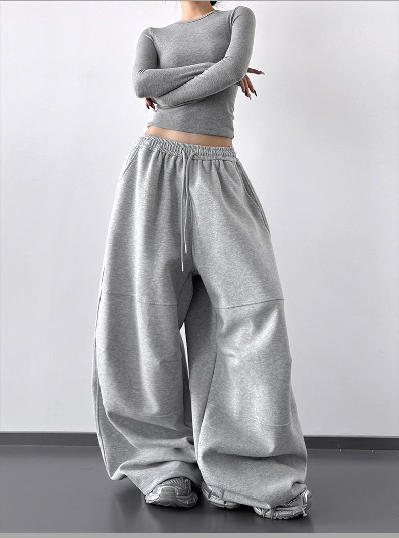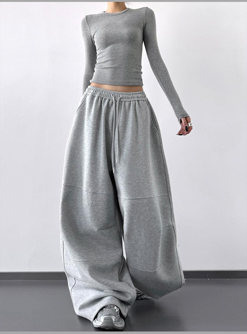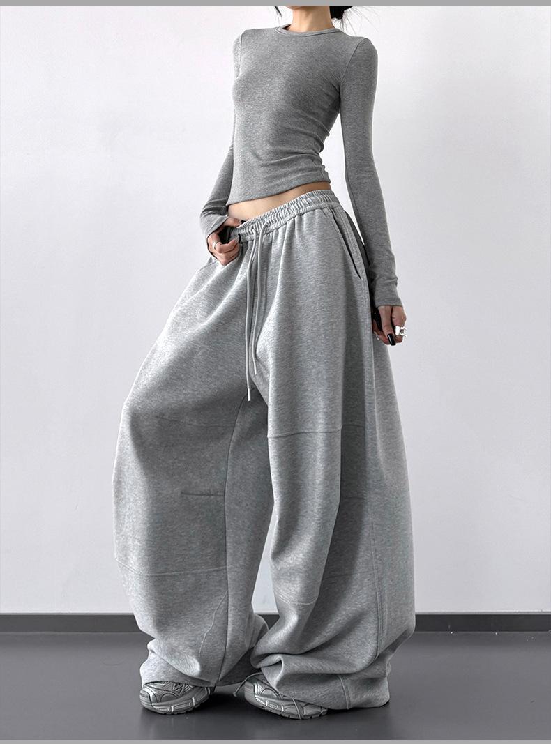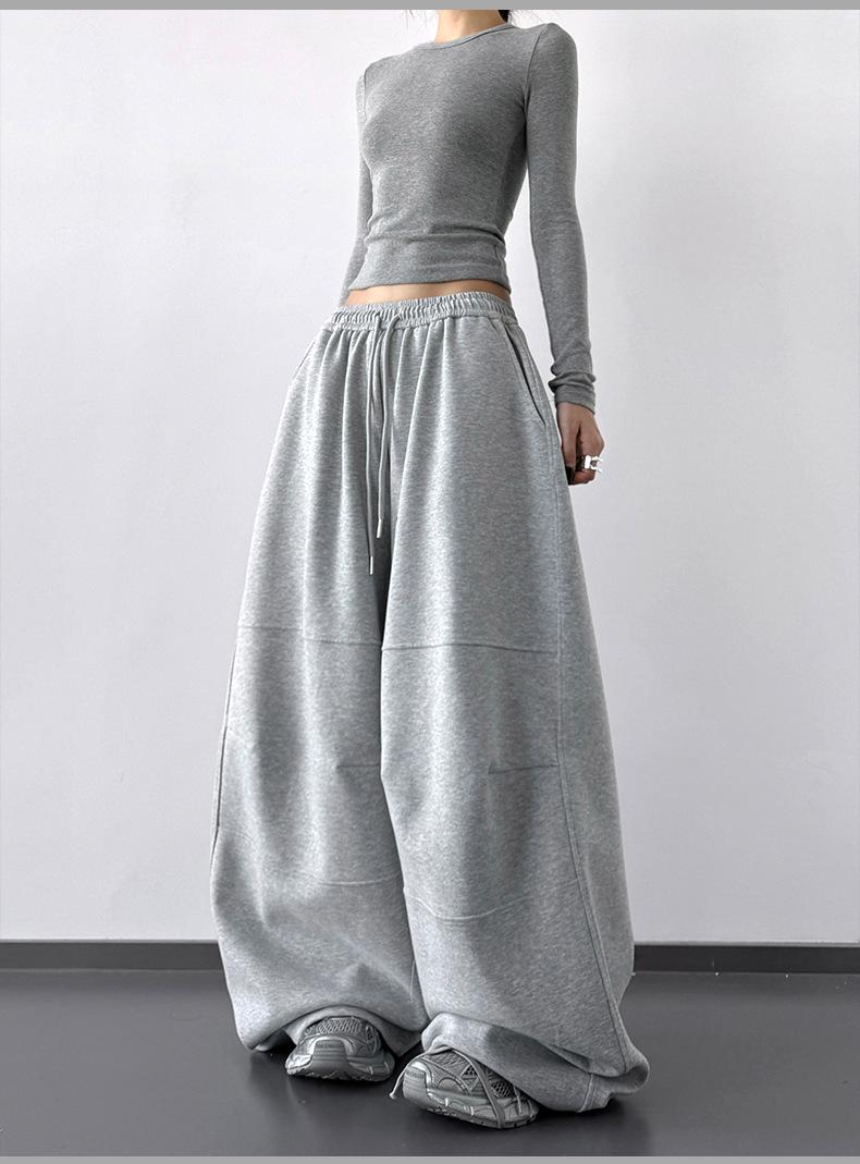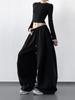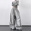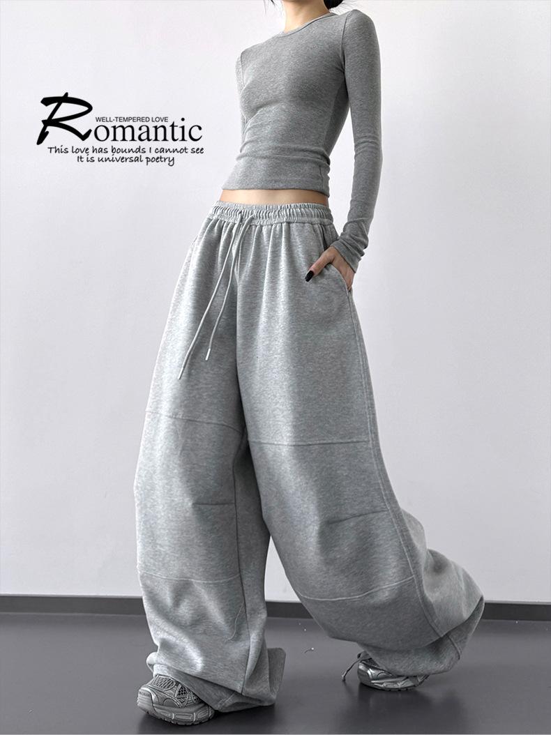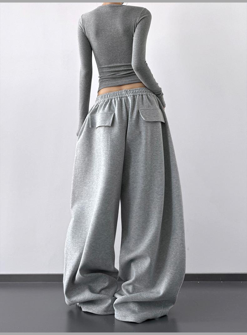 Pantalones Cargo Negros con Cordón y Pierna Ancha Primavera y Otoño 2025 Nuevo Estilo Perezoso Bolsillo Pantalones Deportivos Versátiles Sueltos Adelgazantes