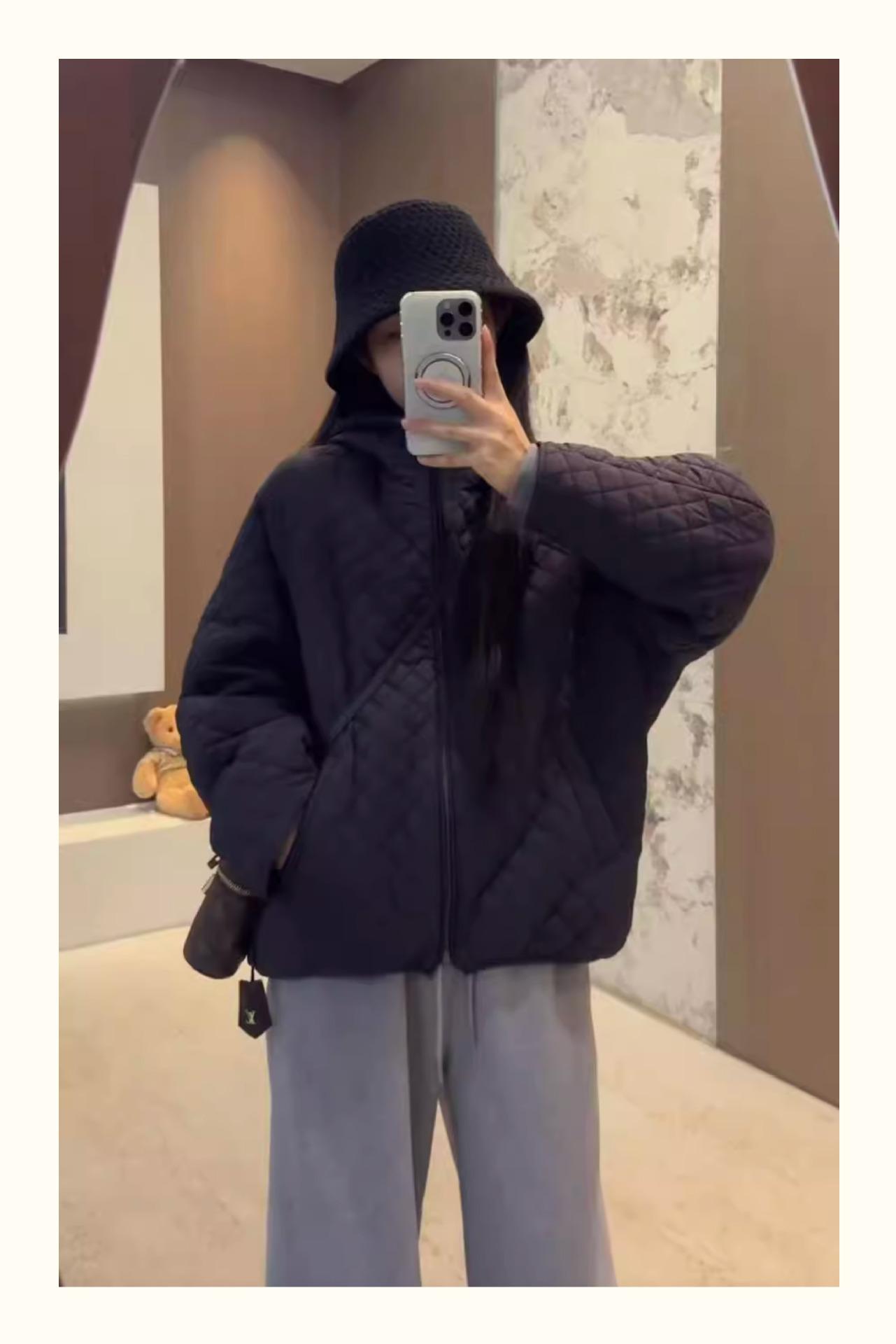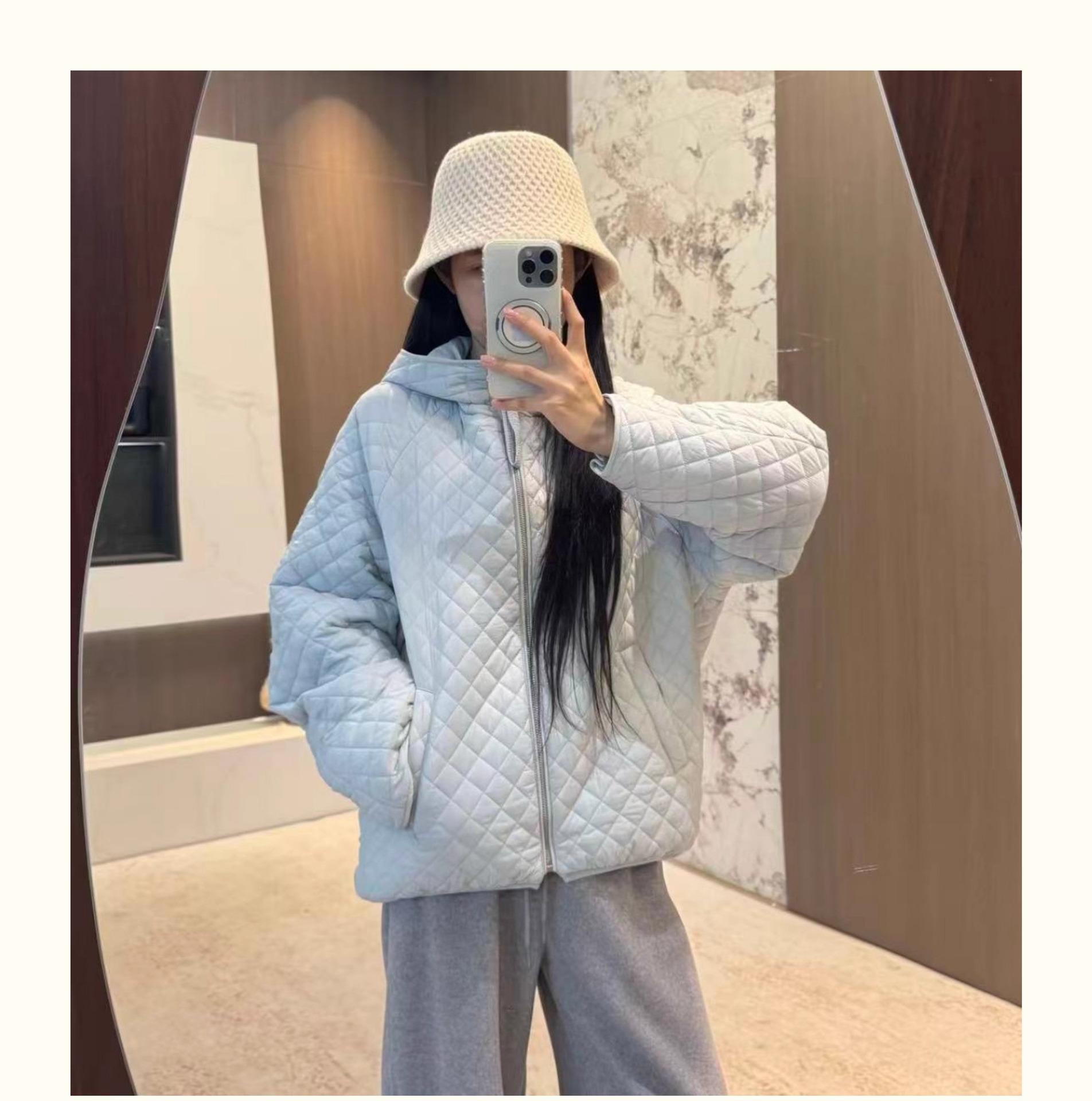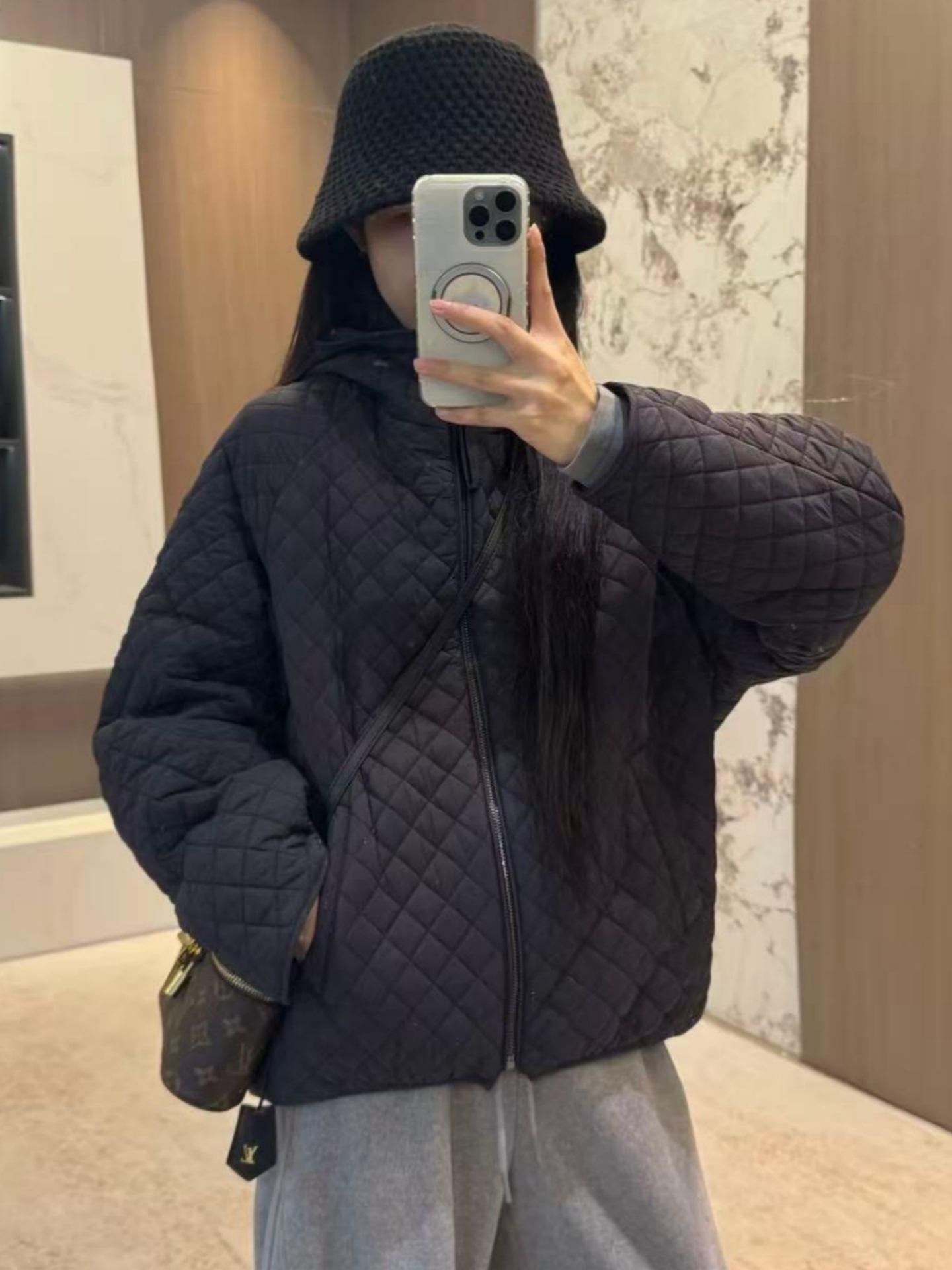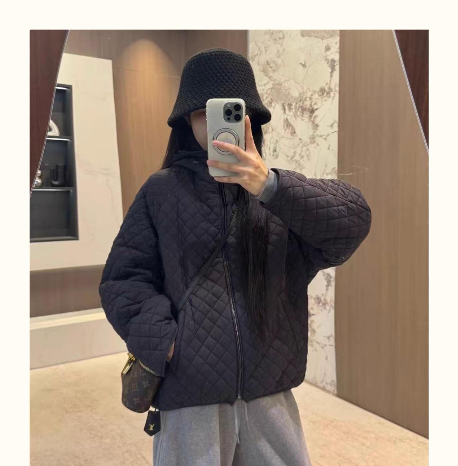 Chaqueta con capucha acolchada de algodón cálido para mujer, otoño e invierno, nueva, holgada, sencilla, a la moda, diseño casual, adelgazante, acolchada con rombos