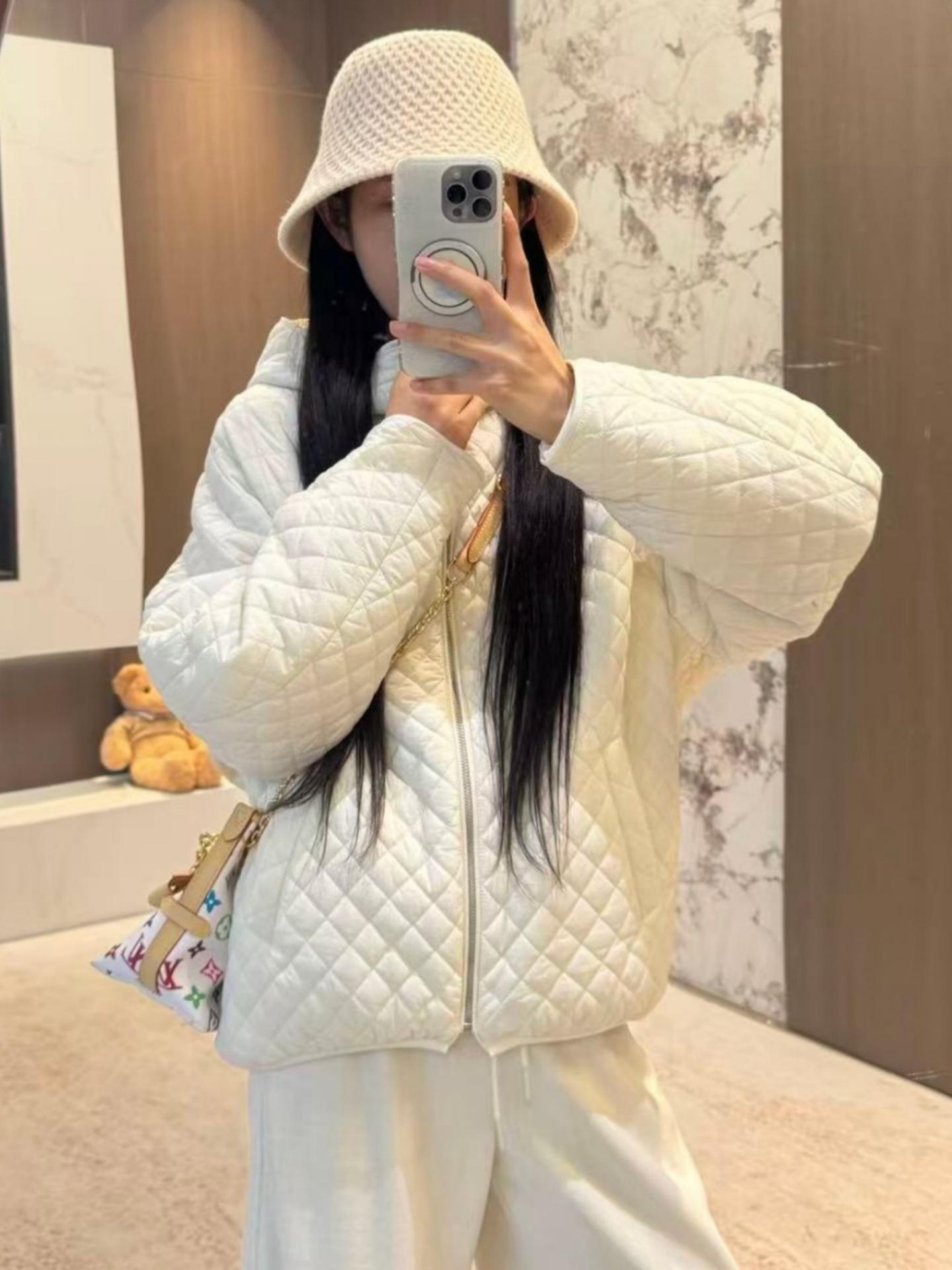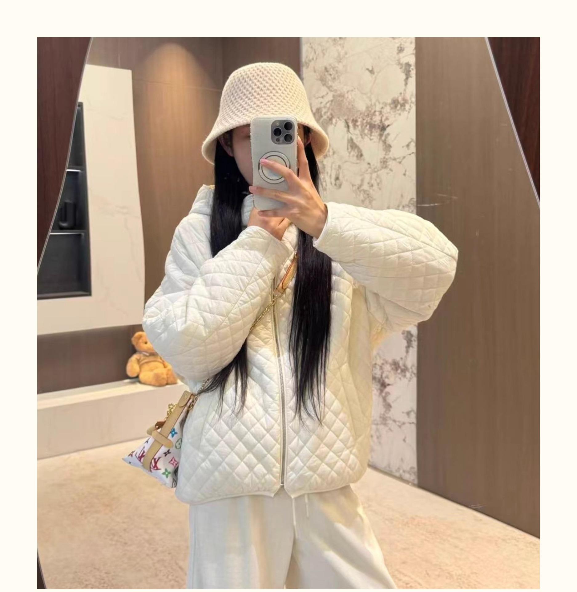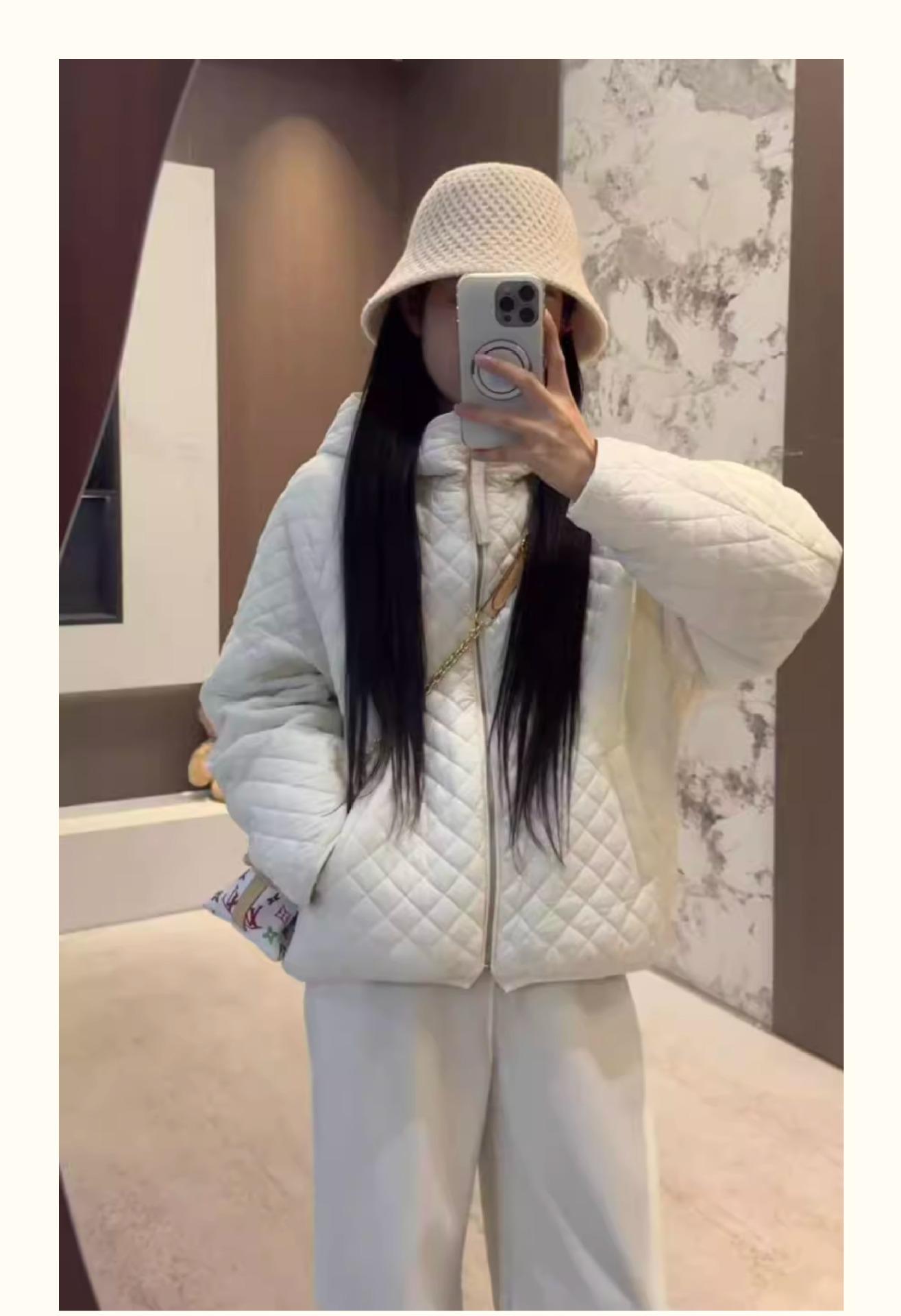 Chaqueta con capucha acolchada de algodón cálido para mujer, otoño e invierno, nueva, holgada, sencilla, a la moda, diseño casual, adelgazante, acolchada con rombos