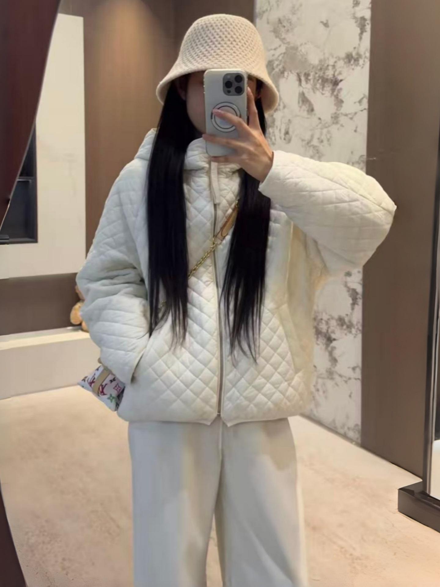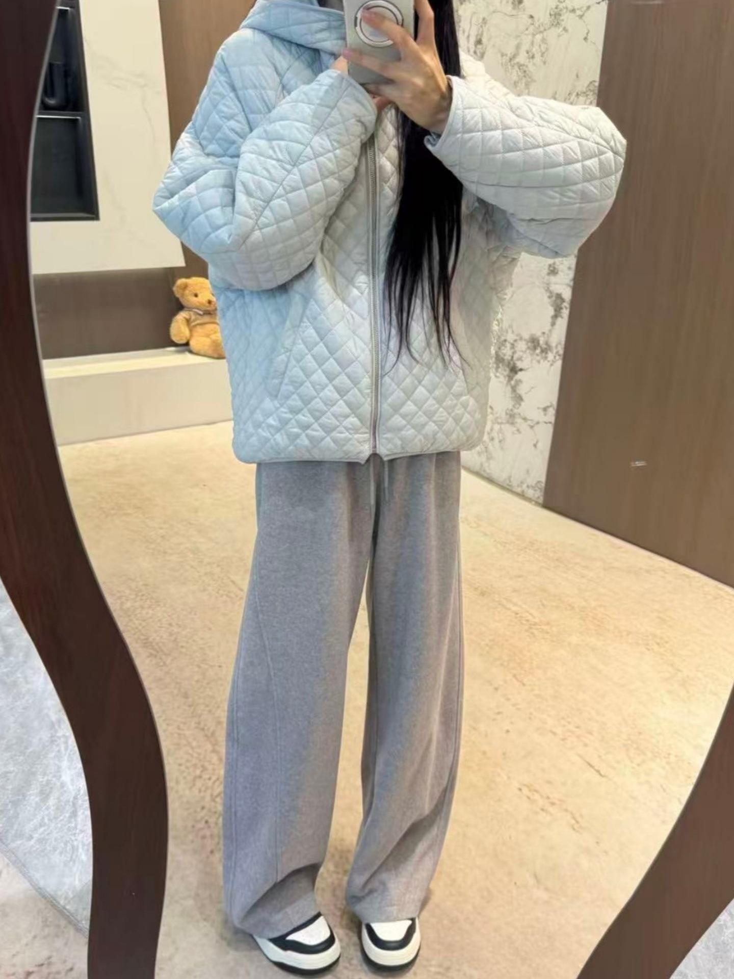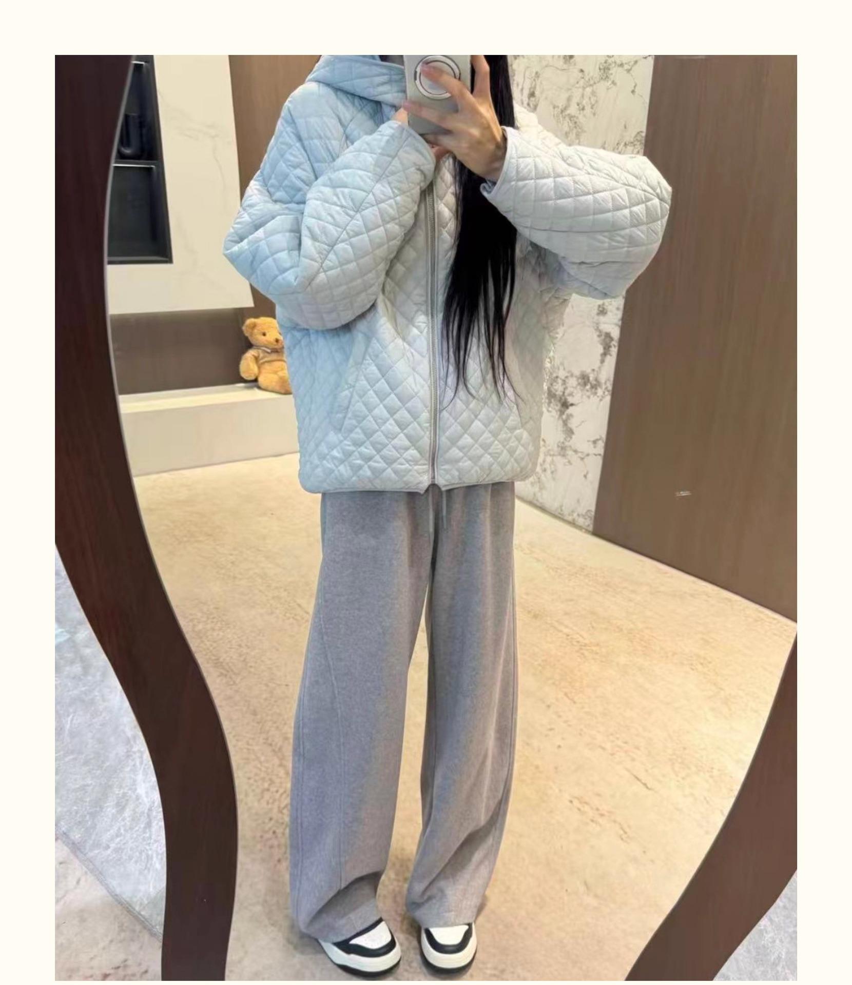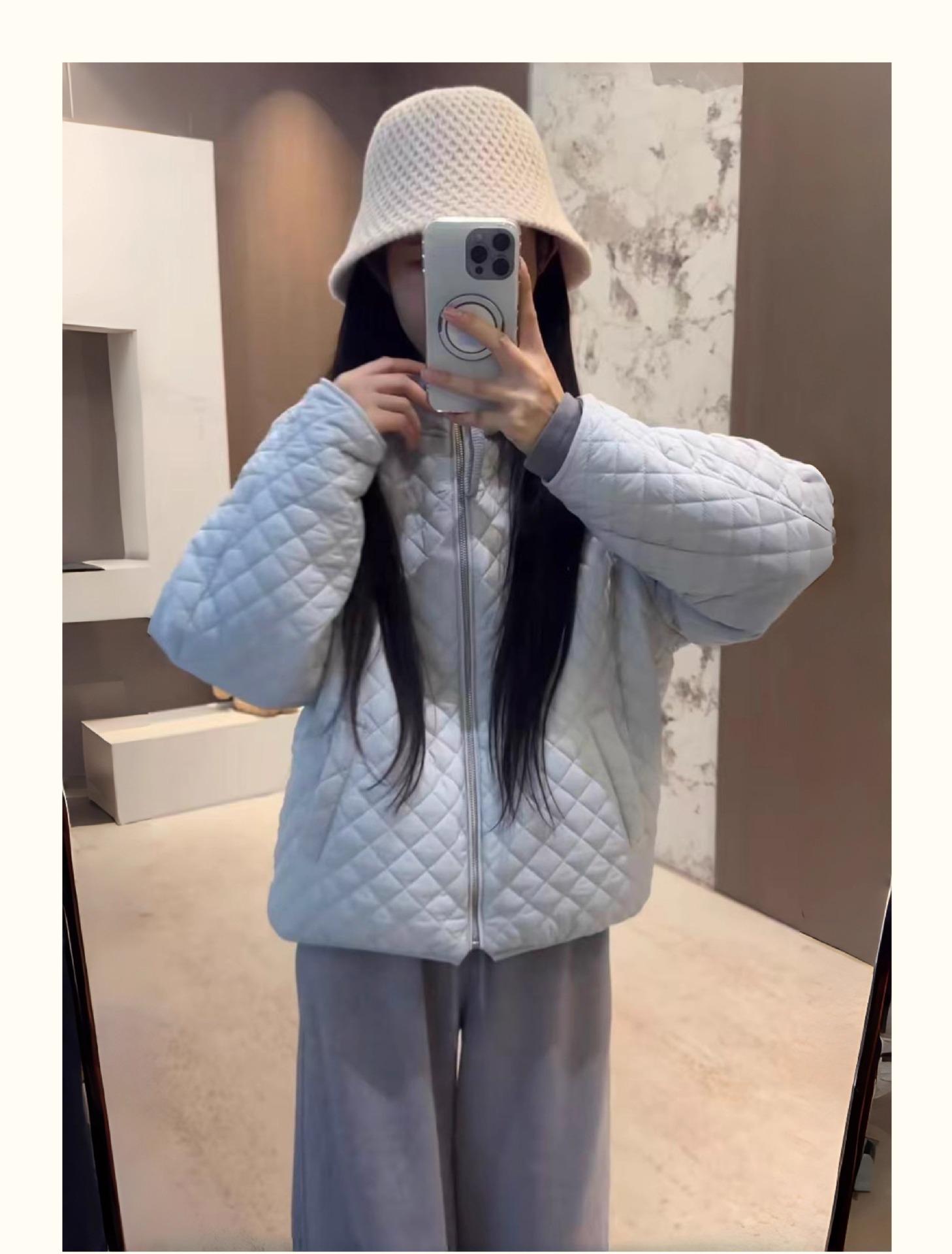 Chaqueta con capucha acolchada de algodón cálido para mujer, otoño e invierno, nueva, holgada, sencilla, a la moda, diseño casual, adelgazante, acolchada con rombos
