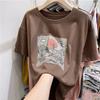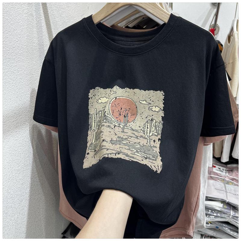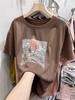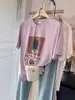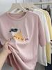 2025 Verano Fresco Dulce Bordado Cuello Redondo Manga Corta Camiseta Mujer Suelta Transpirable Estilo Princesa Jersey Cepillado