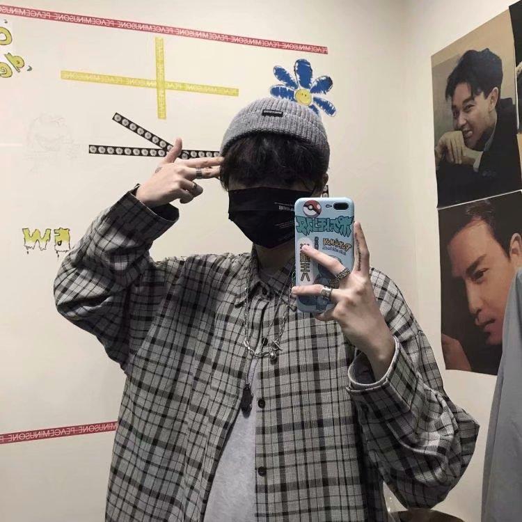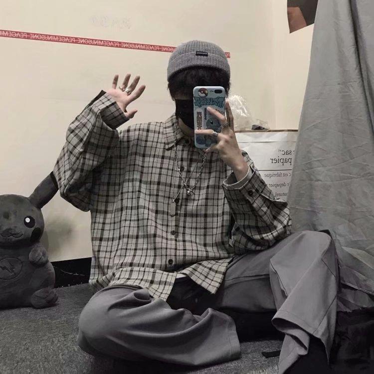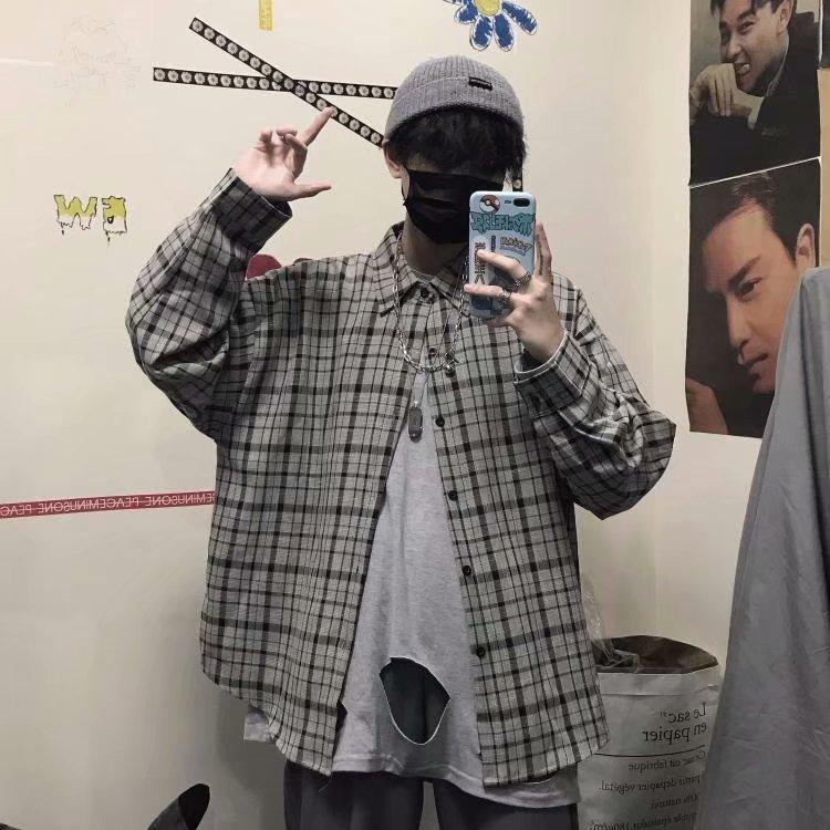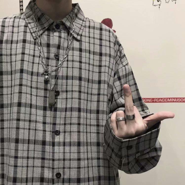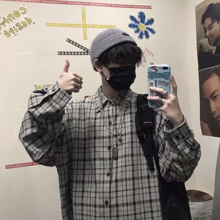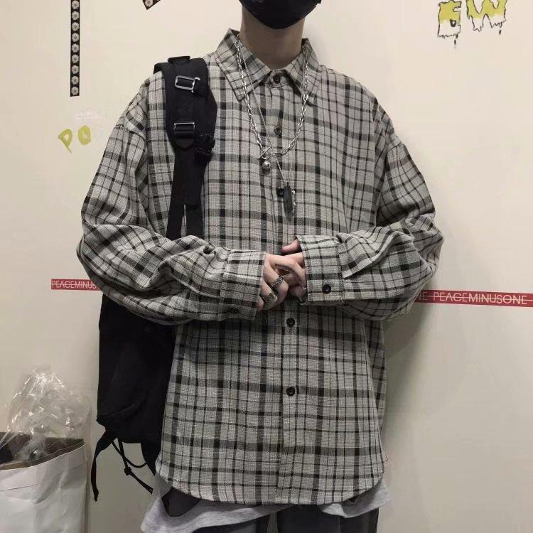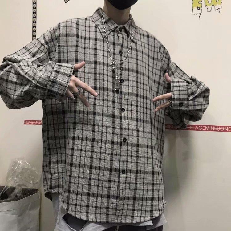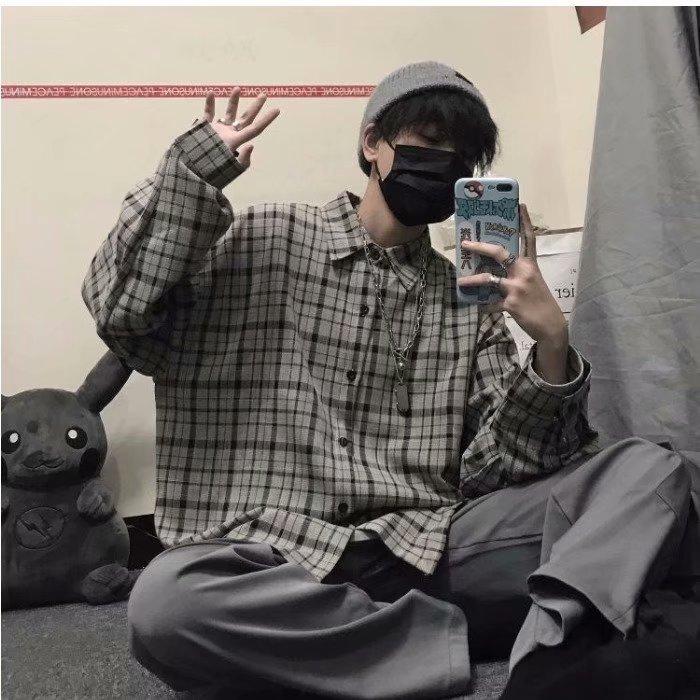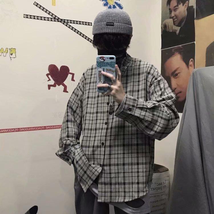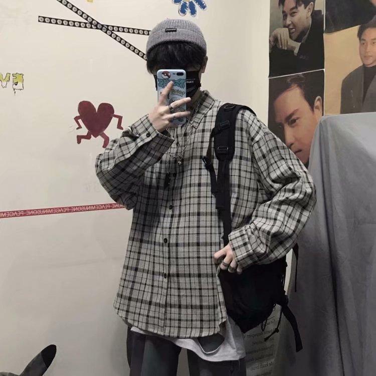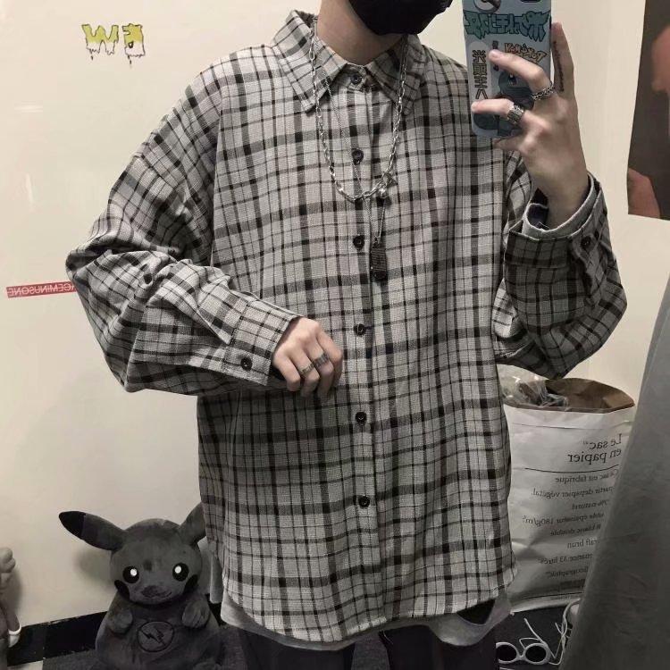 Camisa de Cuadros de Otoño para Hombre de Manga Larga Moda Coreana Holgada Casual Camisa para Pareja Chaqueta Guapa que Combina con Todo