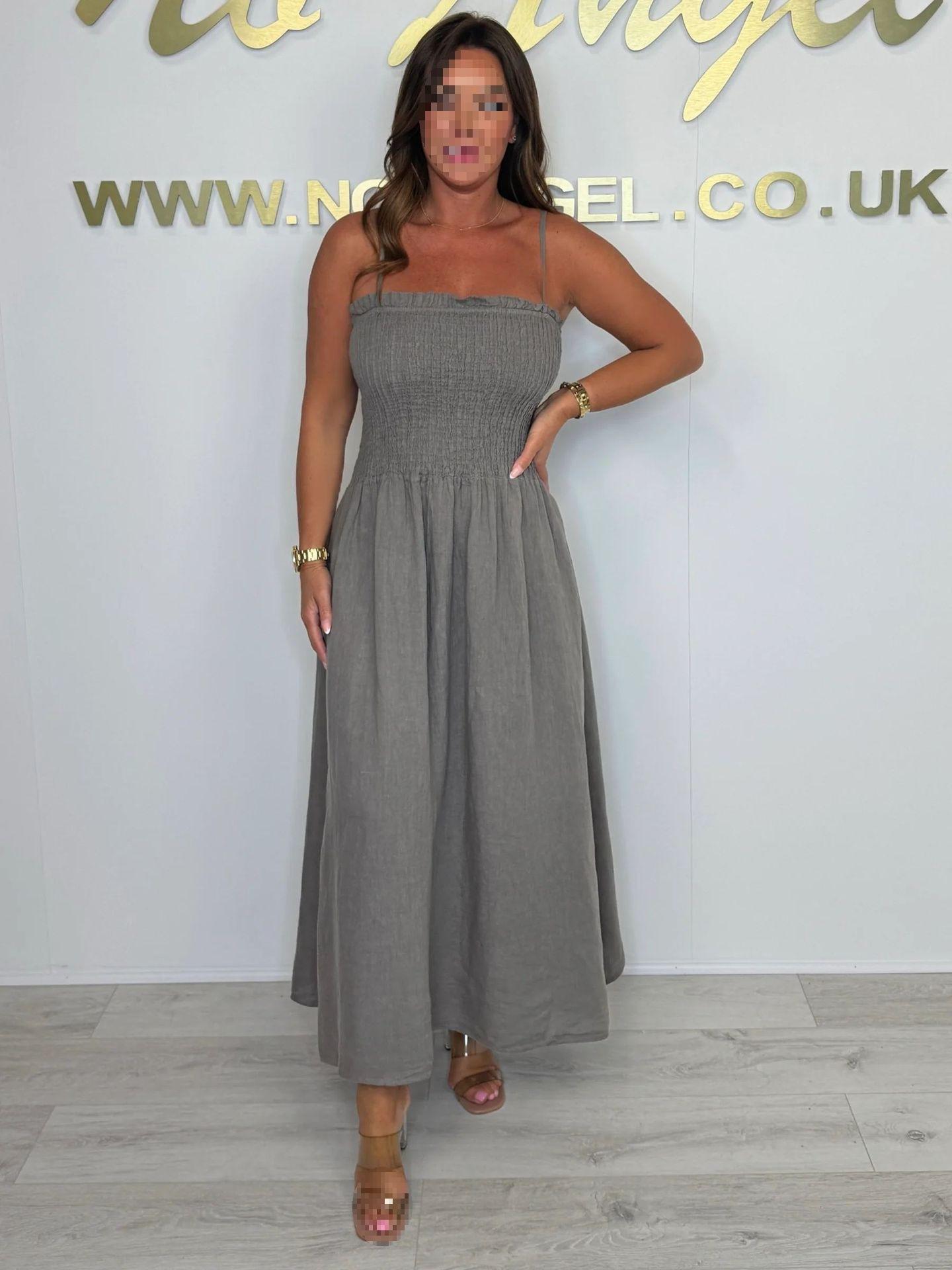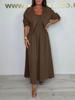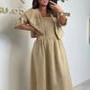 Verano 2025 Nuevo Europeo y Americano Transfronterizo - Amazon Vestido de Lino Flocado de Color Sólido con Chaqueta Conjunto de Dos Piezas