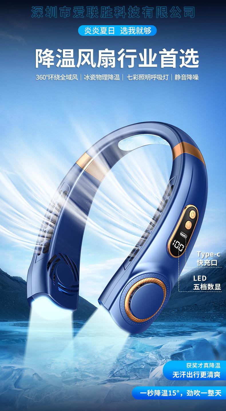 Nuevo ventilador de cuello portátil 2023 USB de mano silencioso multifuncional mini ventilador eléctrico pequeño sin aspas transfronterizo